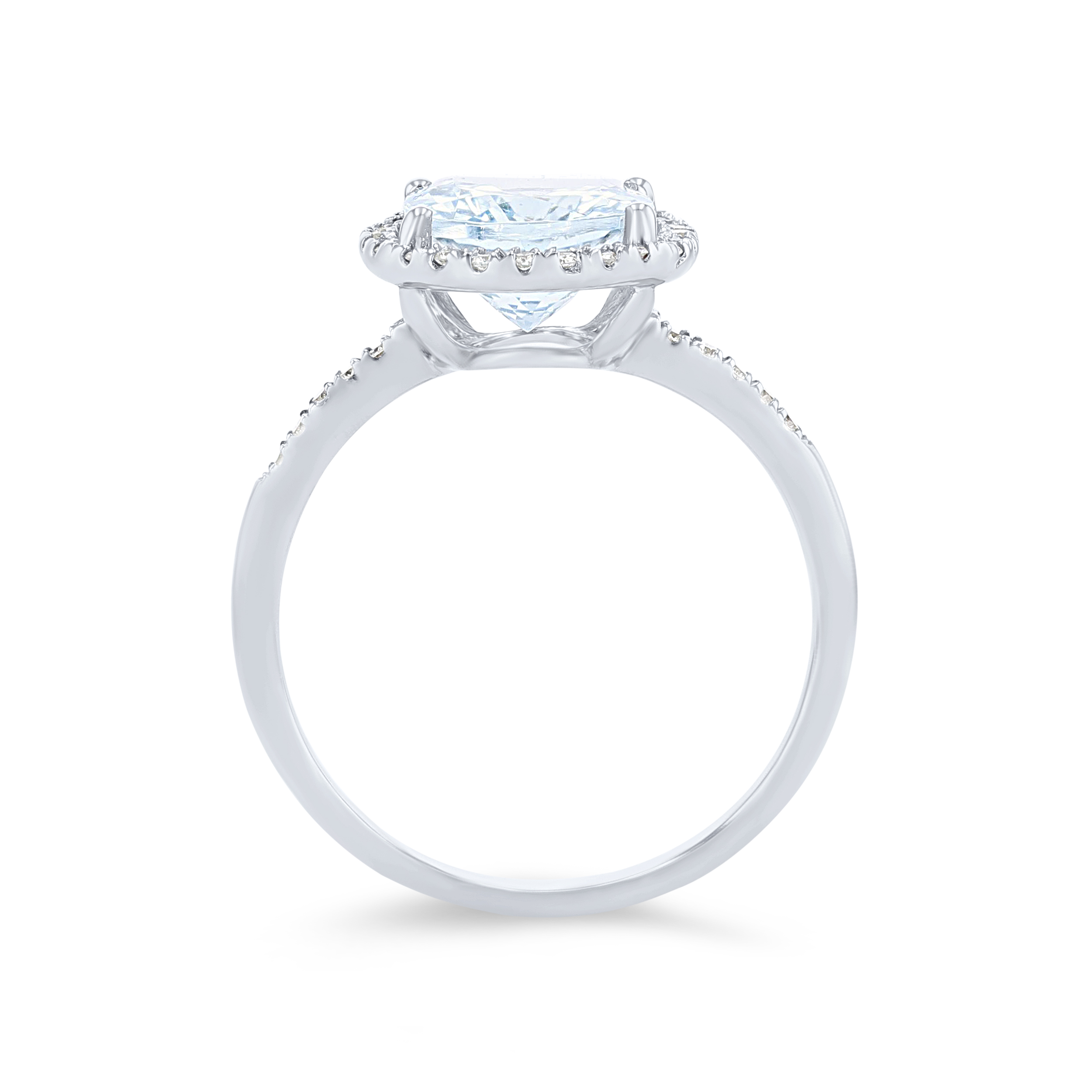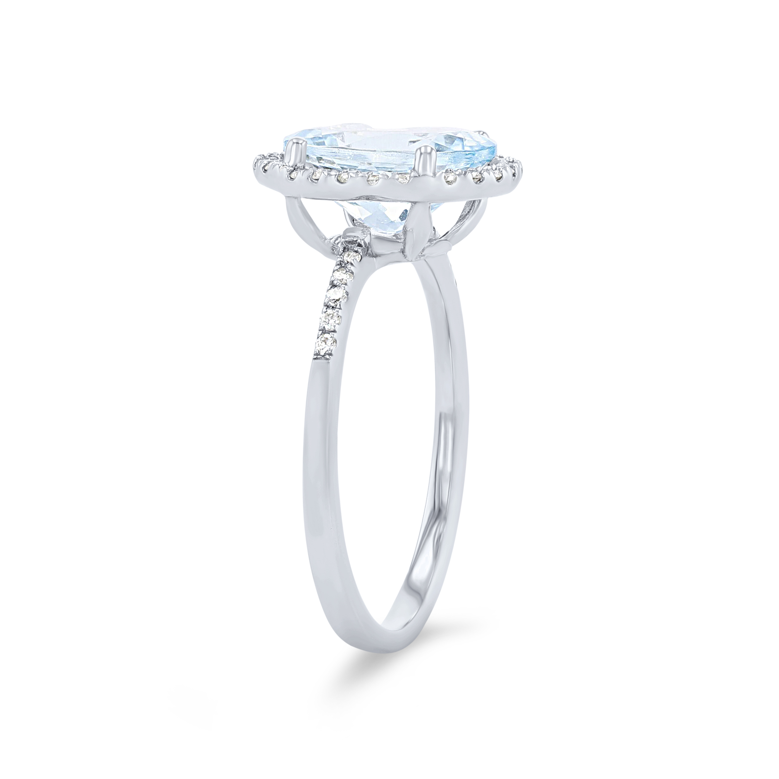 Product Description Sport a beautiful shade of blue with this ring, featuring an oval cut aquamarine weighing 2.00 carats surrounded by a halo of round brilliant cut diamonds totaling 0.21 carats. Other Details Metal Color: White Gold Total Setting Diamond Carat Weight: 0.21TW Disable Reason: None Women Wedding Band Type: Gemstone Total Gemstone Carat Weight: 2TW Gemstone Type: Aqua Style: Classic Type: Ring