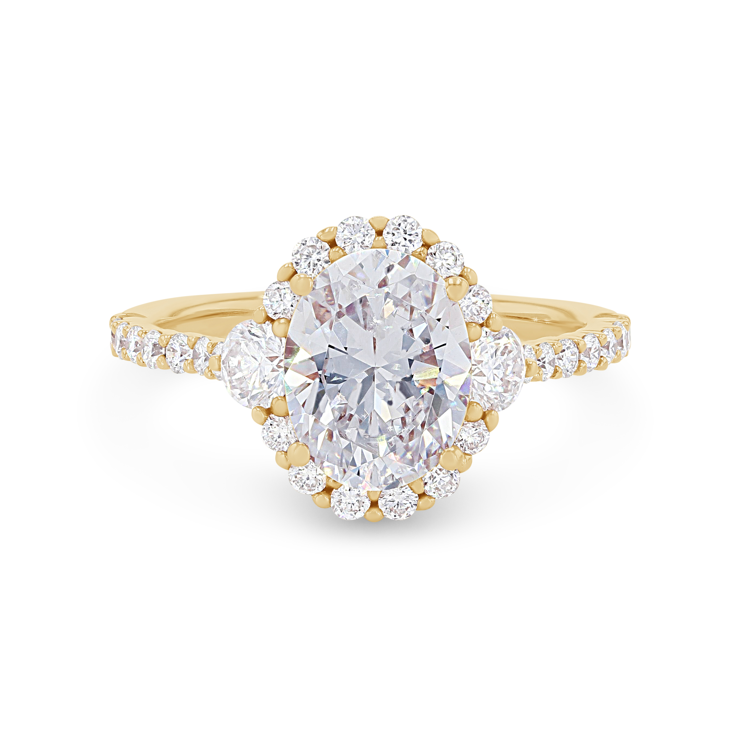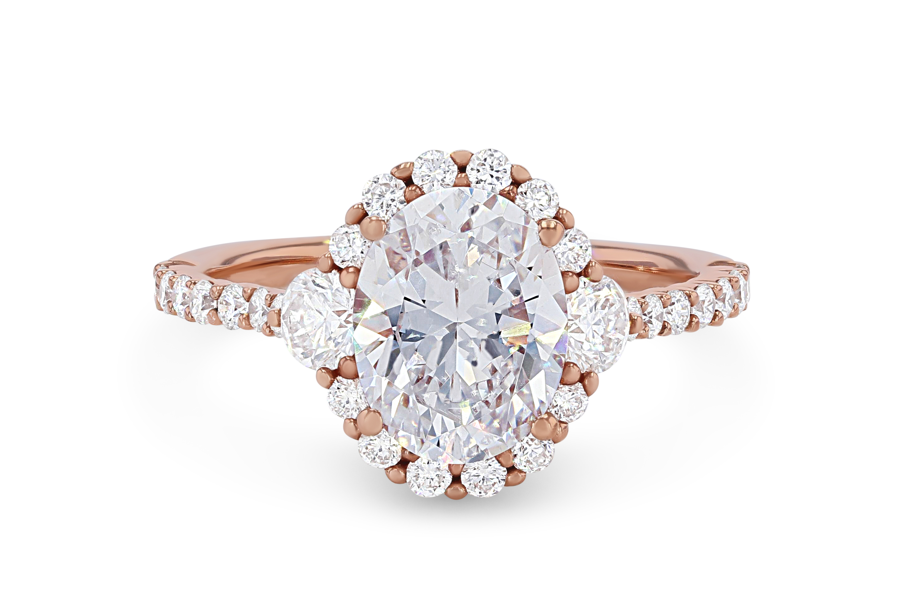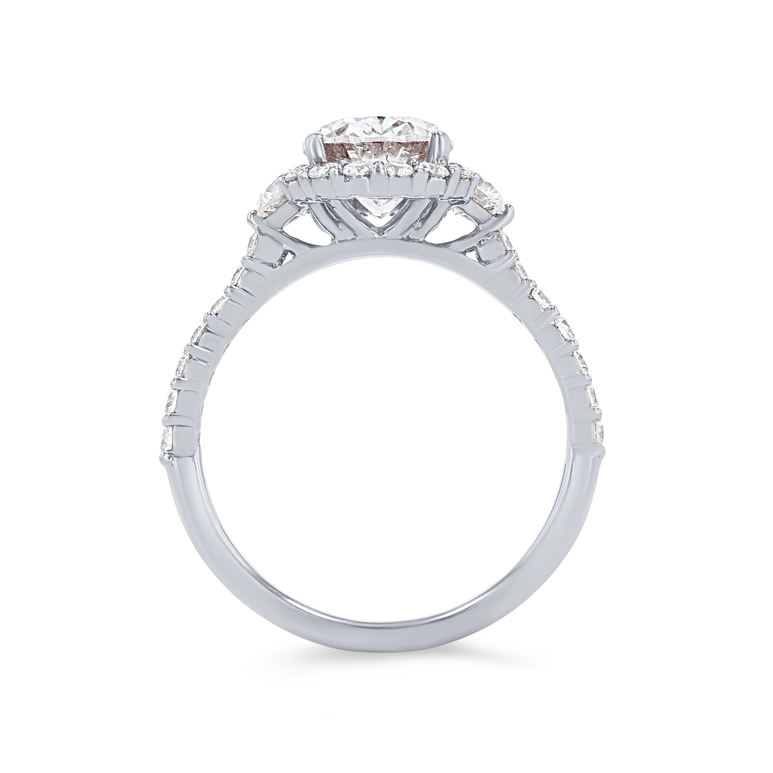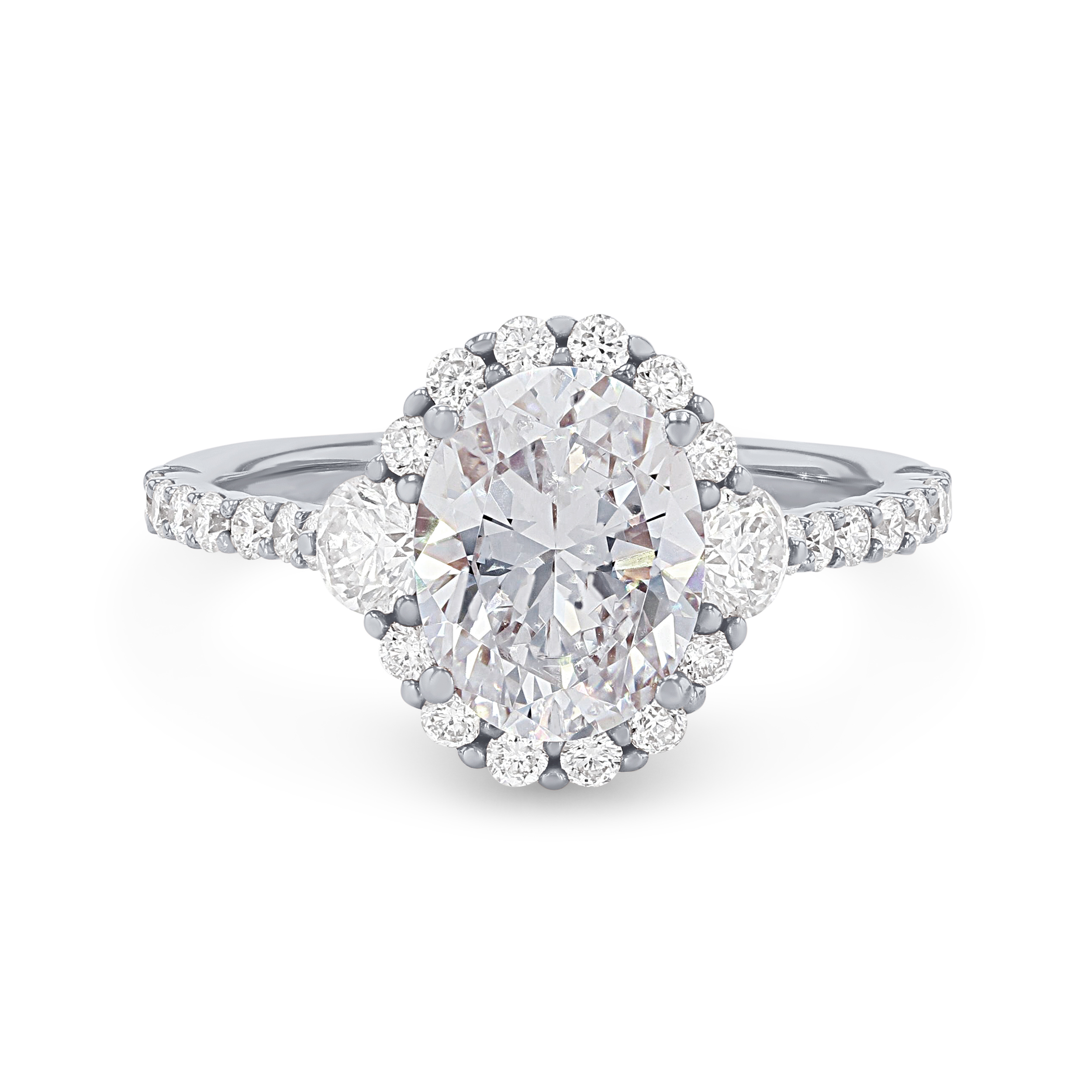 Product Description Round brilliant cut diamonds totaling 0.68 carats surround this unique oval halo design, with two larger diamonds set on either side of the center stone. Other Details Total Setting Diamond Carat Weight: 0.68TW Type: Setting Disable Reason: None Metal Color: White Gold Metal Color: Rose Gold Style: Contemporary Metal Color: Platinum Metal Color: Yellow Gold Mounting Type: Halo Gemstone Type: Diamond