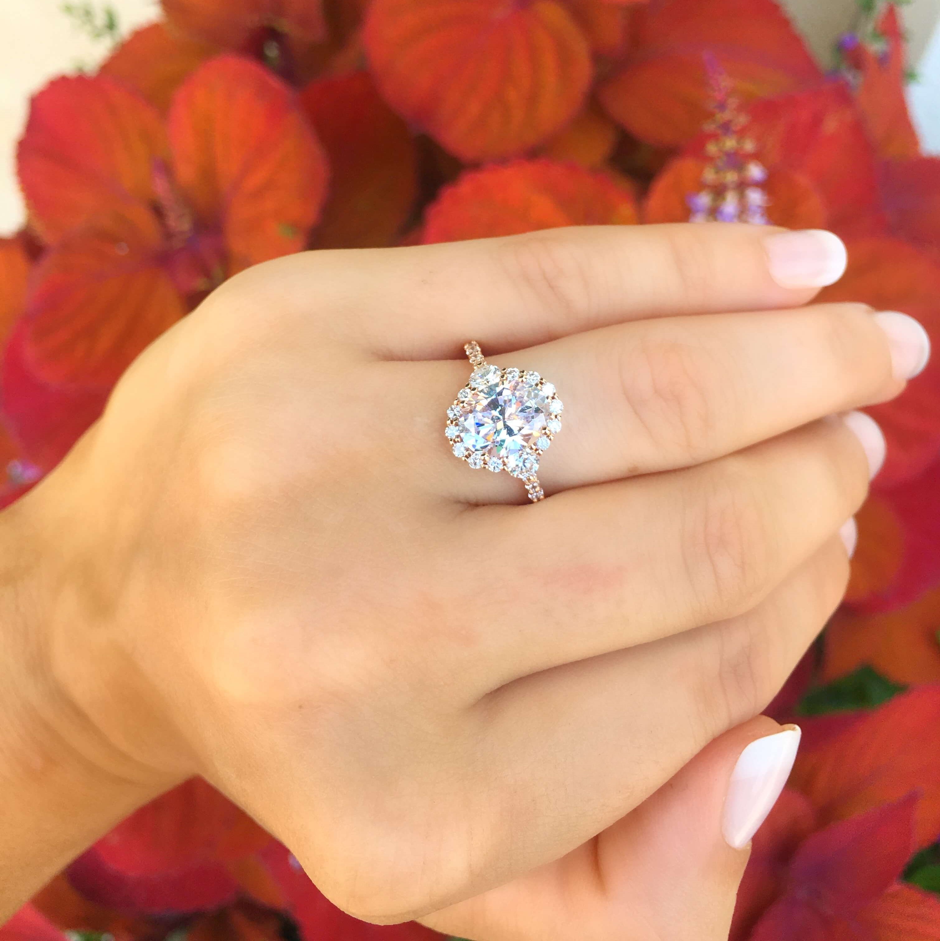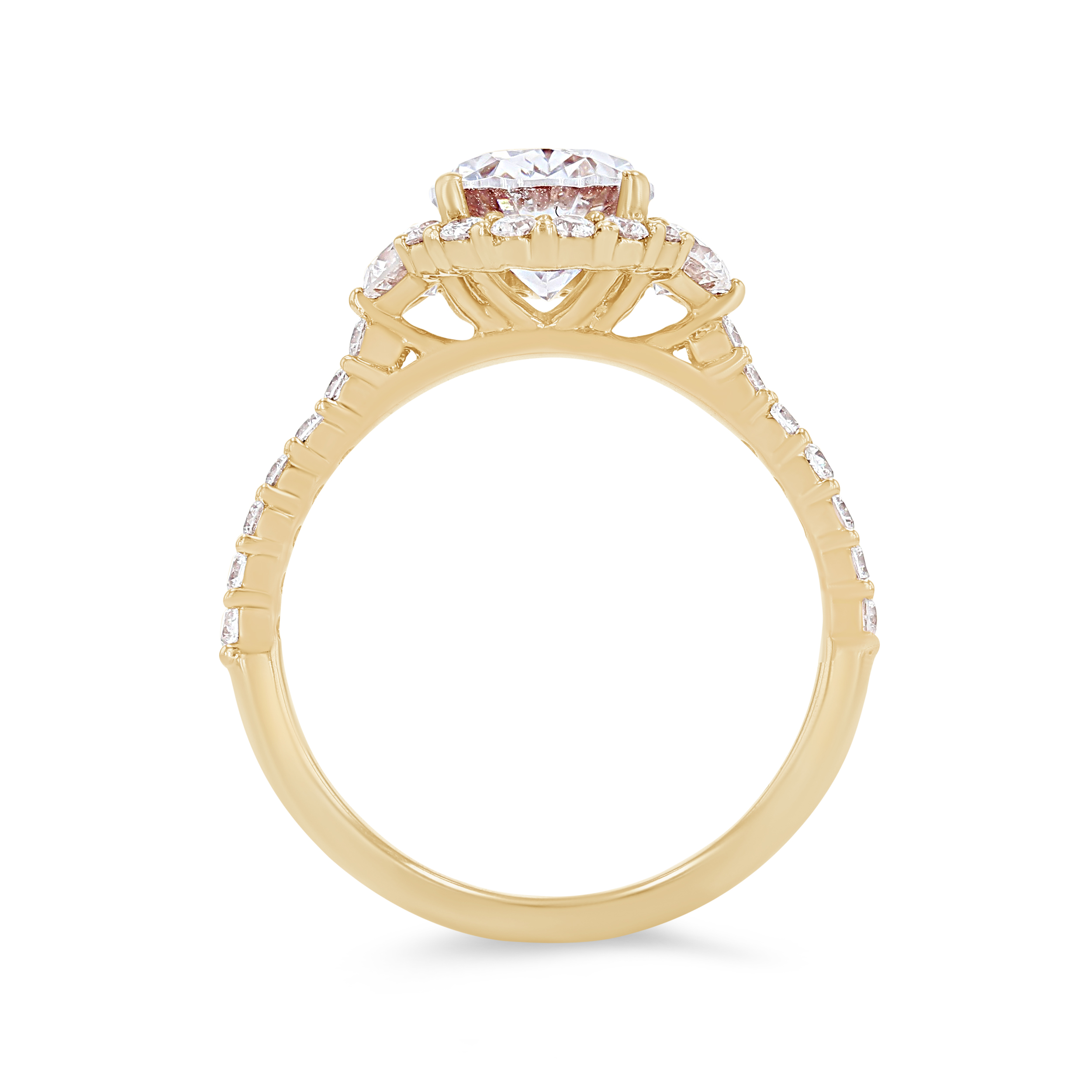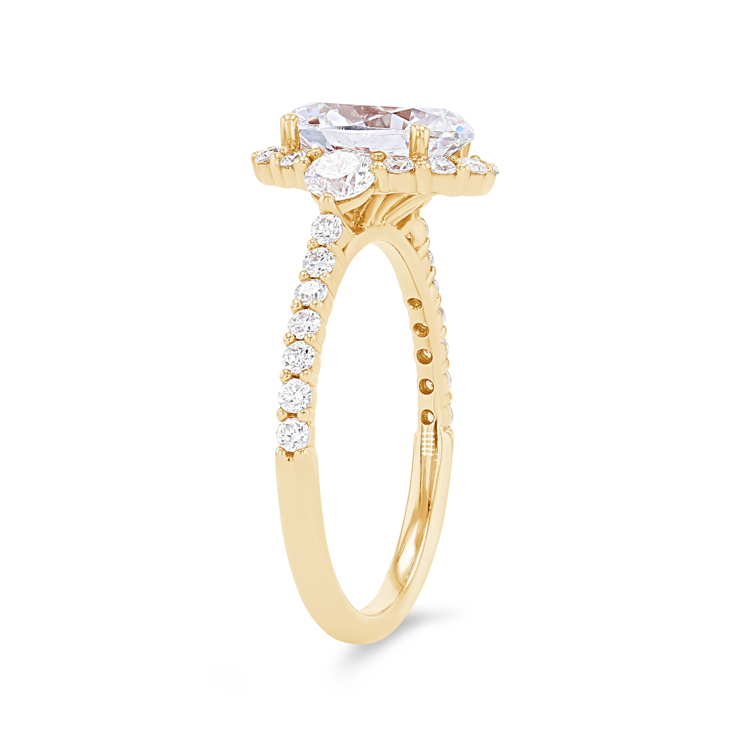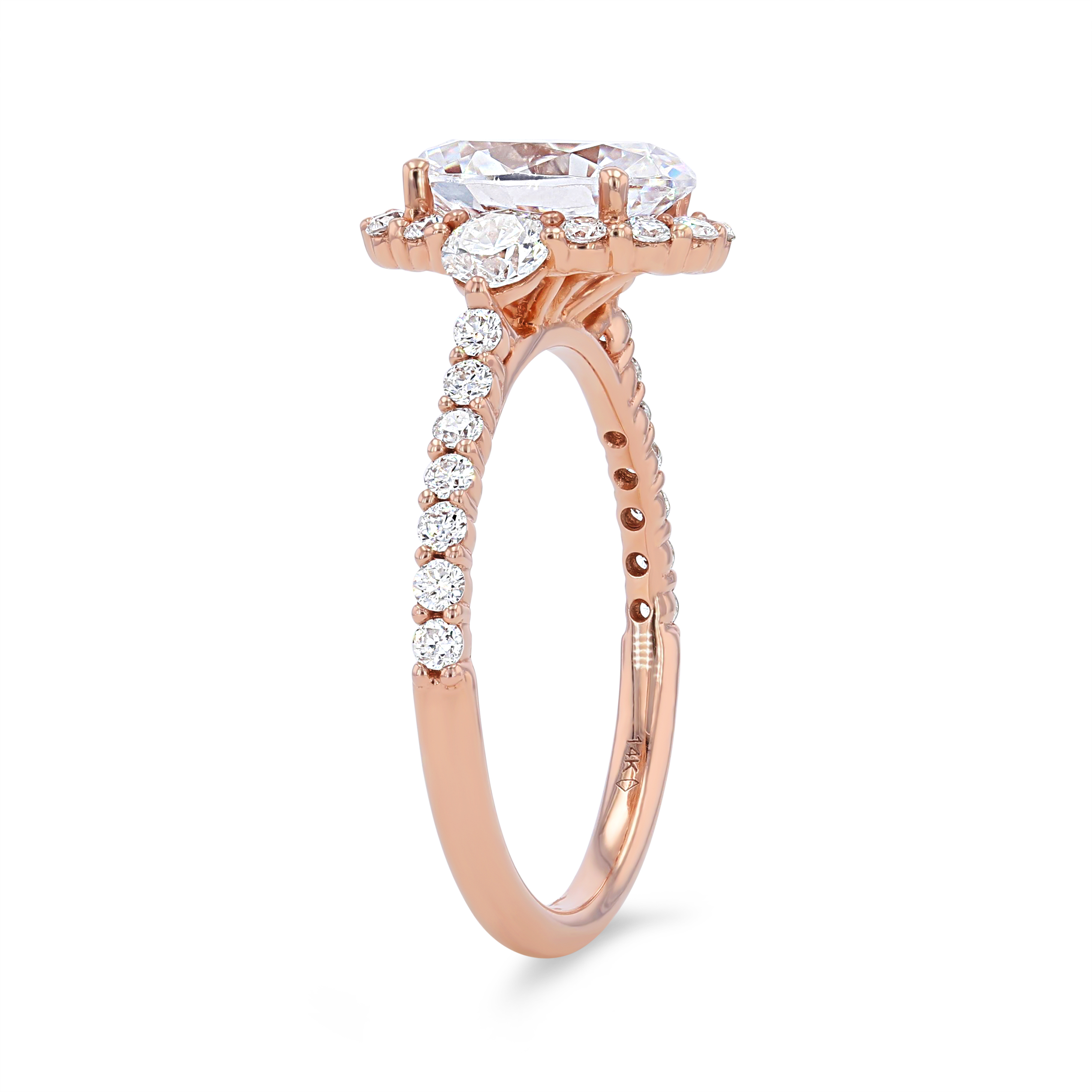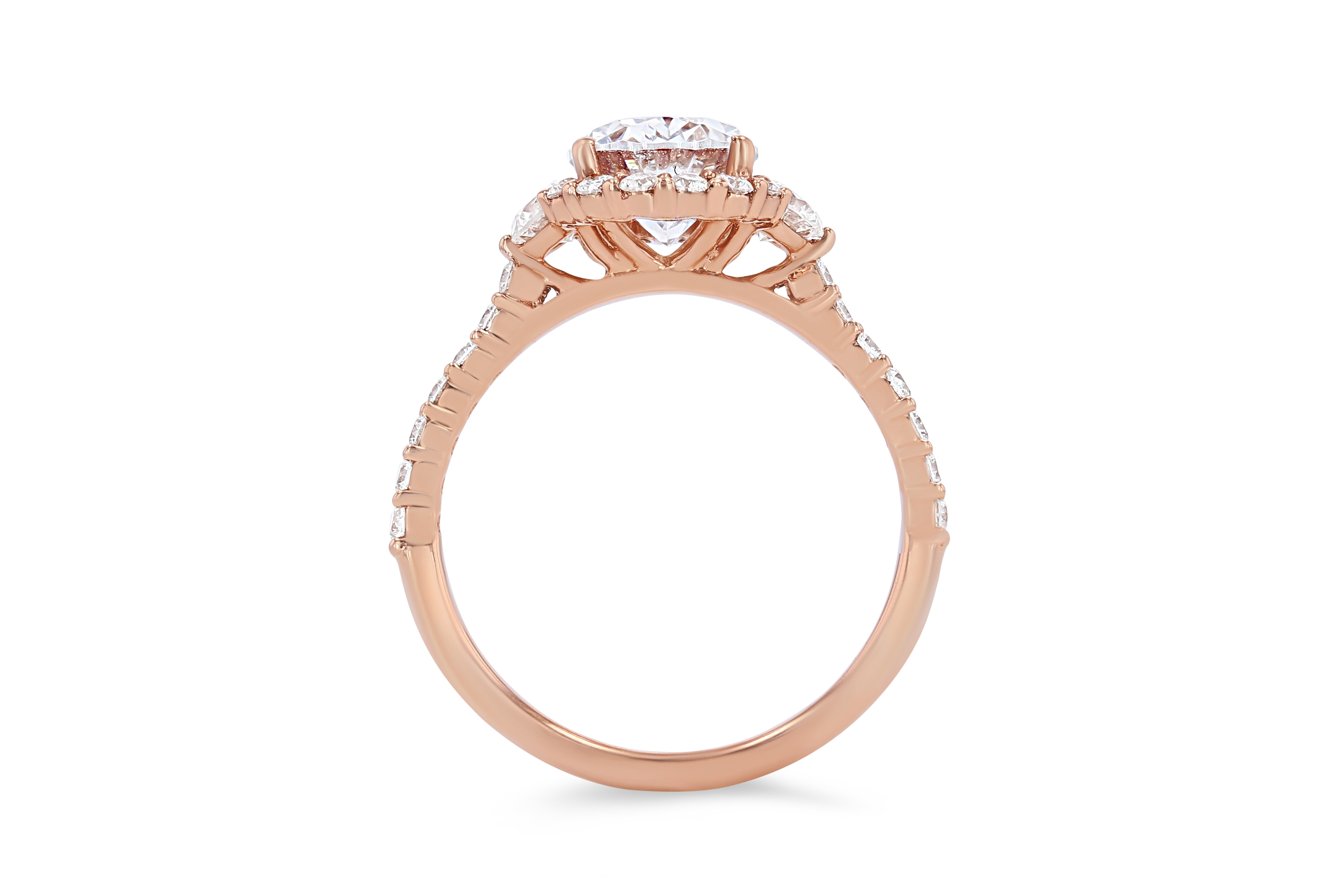 Product Description Round brilliant cut diamonds totaling 0.68 carats surround this unique oval halo design, with two larger diamonds set on either side of the center stone. Other Details Total Setting Diamond Carat Weight: 0.68TW Type: Setting Disable Reason: None Metal Color: White Gold Metal Color: Rose Gold Style: Contemporary Metal Color: Platinum Metal Color: Yellow Gold Mounting Type: Halo Gemstone Type: Diamond