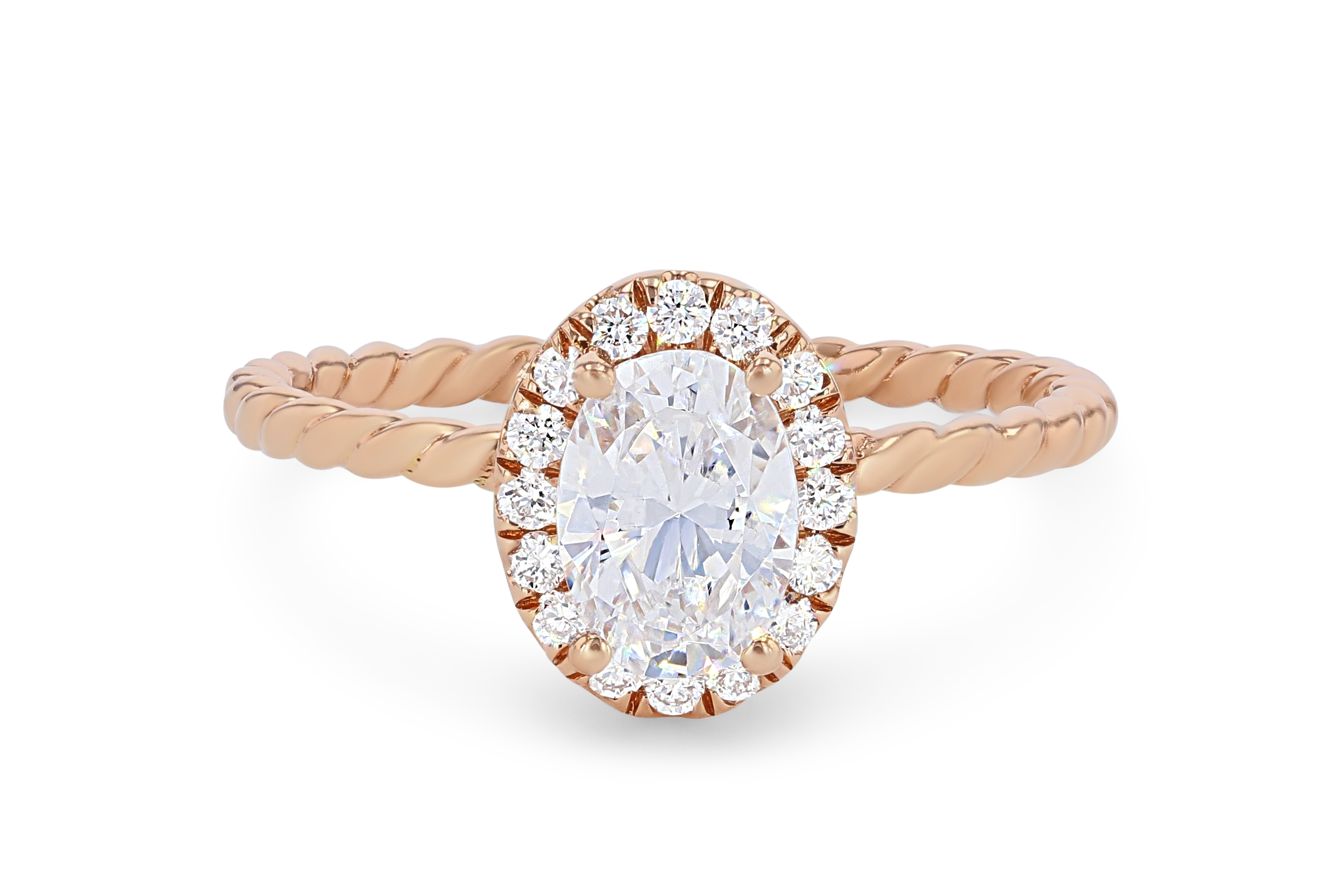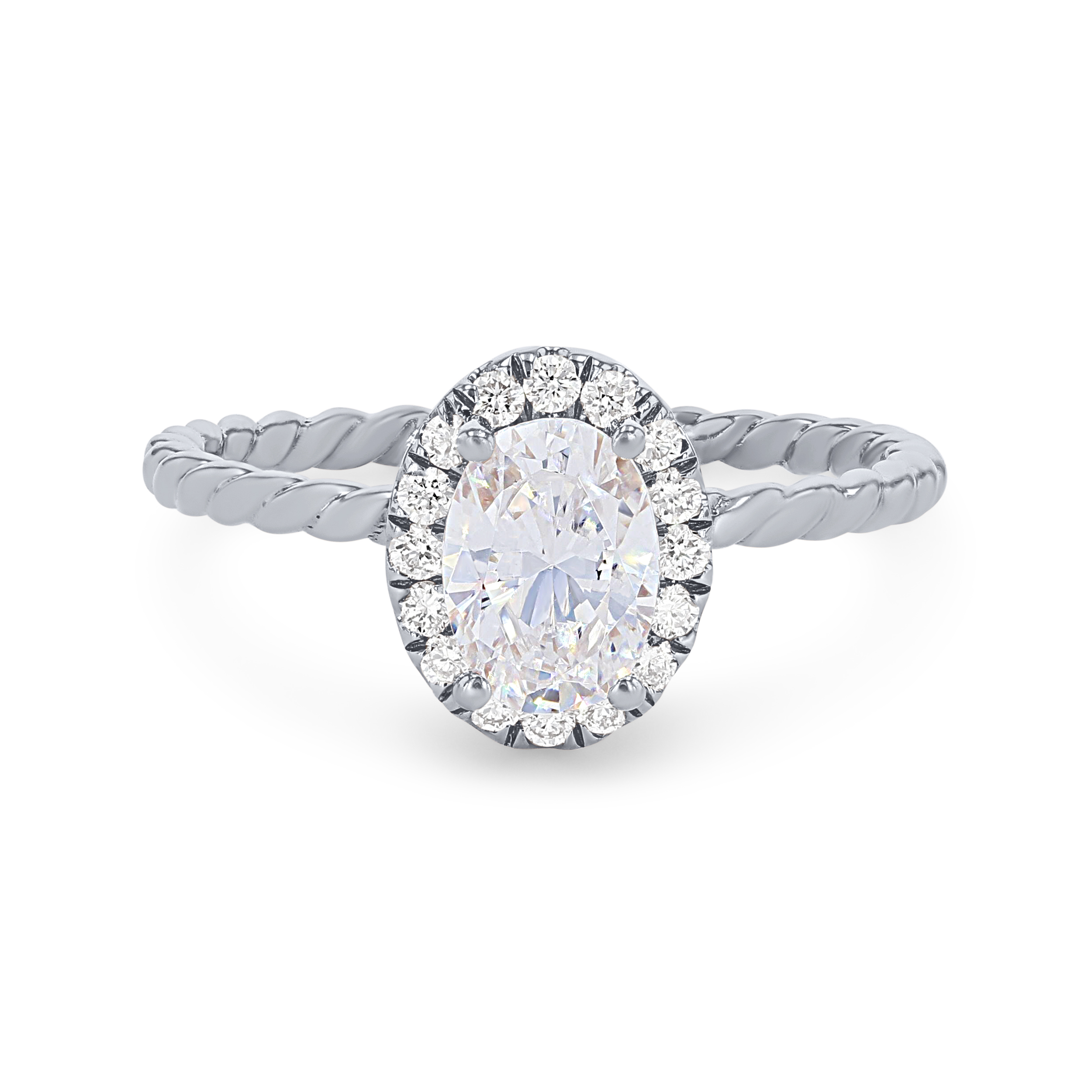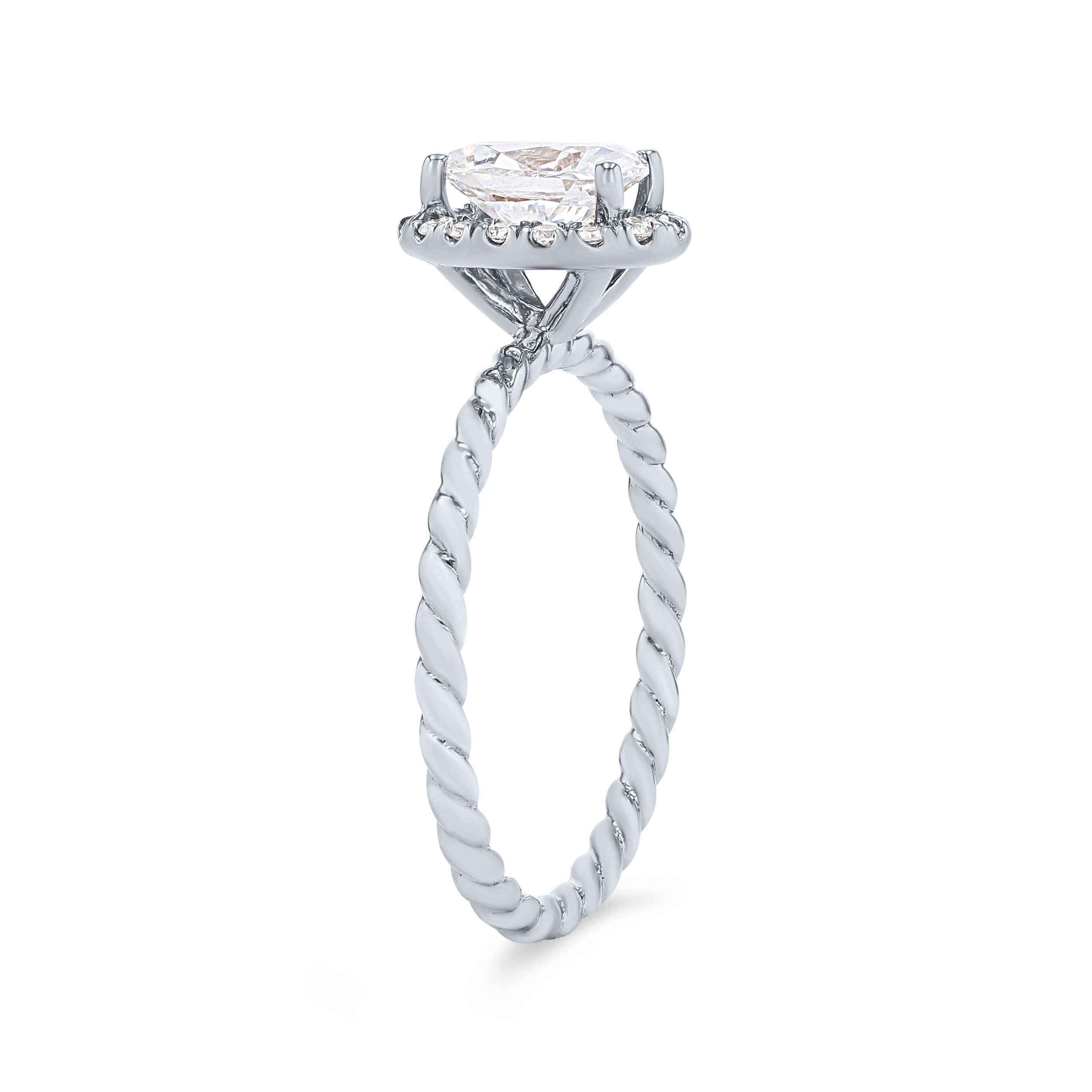 Product Description The rope style shank paired with an oval halo comprised of 0.16 carats of round brilliant cut diamonds creates a lovely contemporary design. Other Details Metal Color: White Gold Total Setting Diamond Carat Weight: 0.16TW Style: Contemporary Metal Color: Rose Gold Type: Setting Metal Color: Yellow Gold Metal Color: Platinum Mounting Type: Halo Gemstone Type: Diamond Disable Reason: None