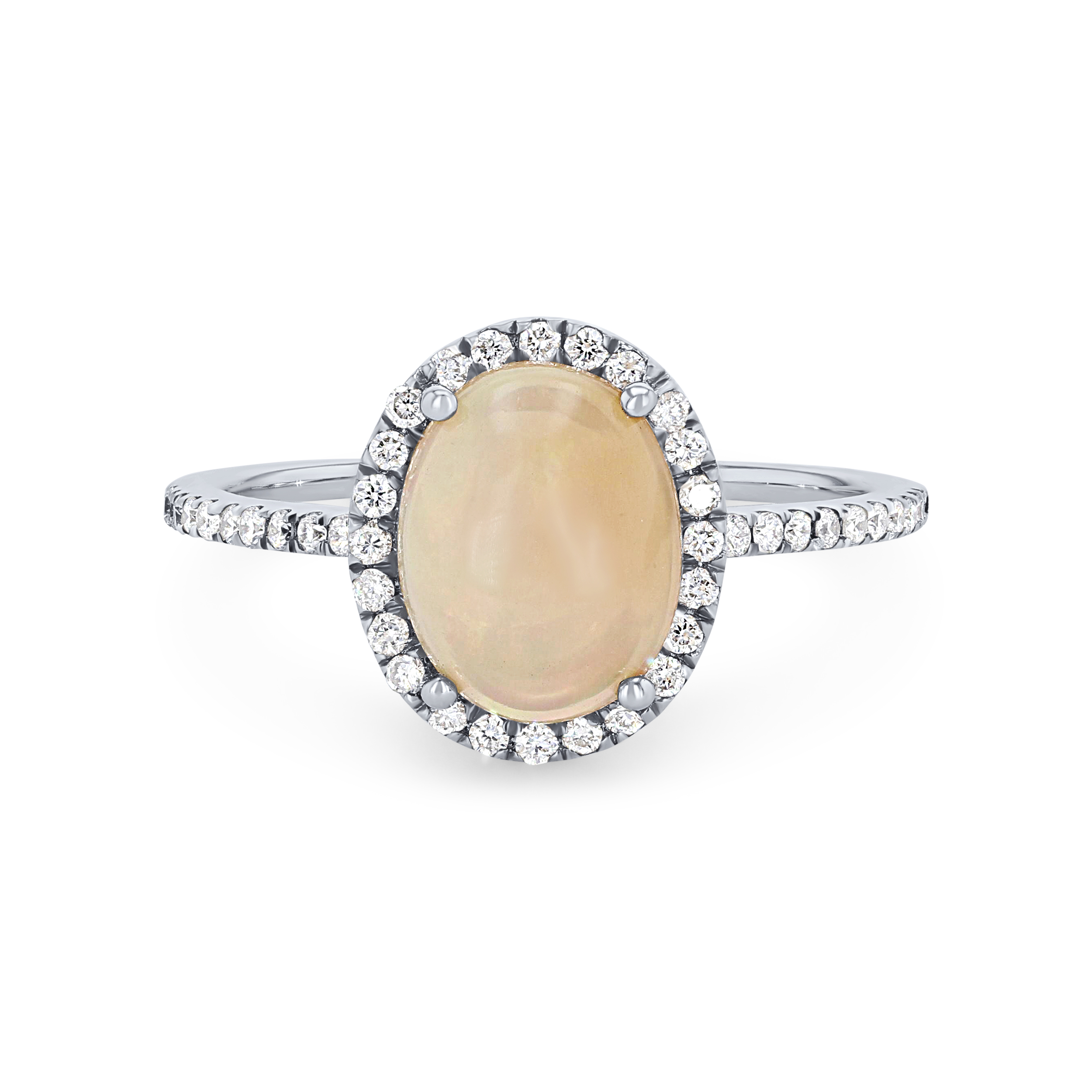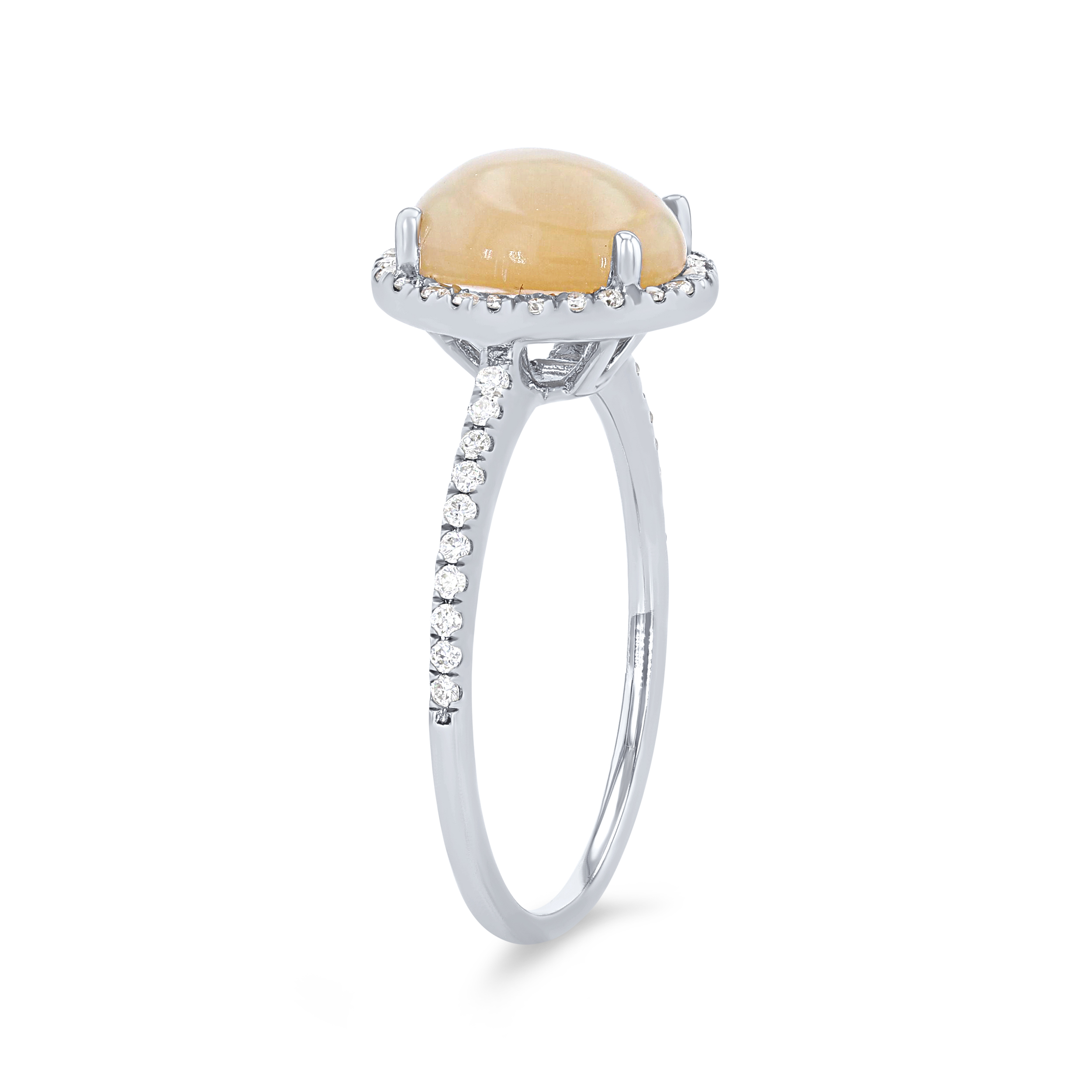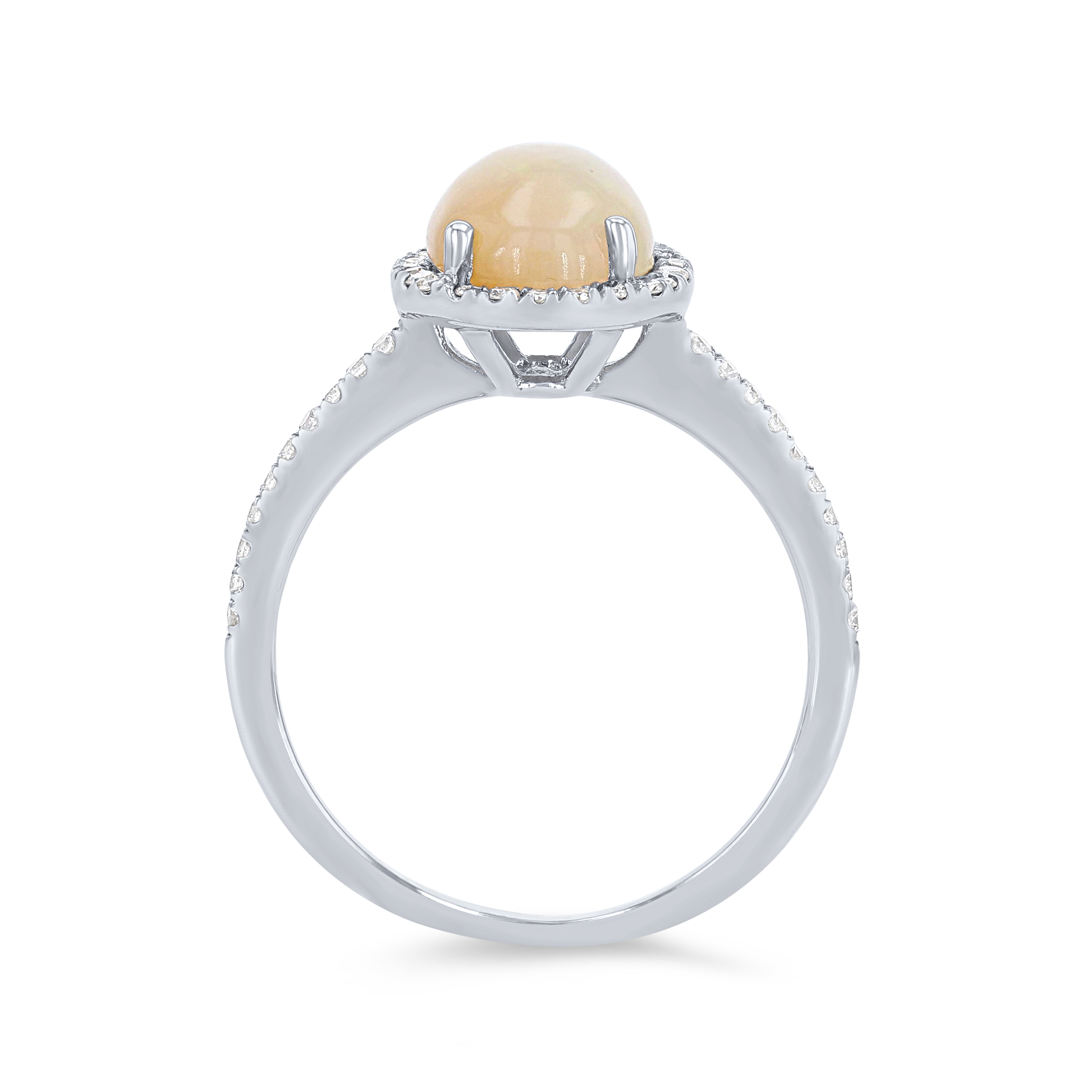 Product Description An elegant 1.06 carat oval cut opal is accented by 0.22 carats of round brilliant cut diamonds. Other Details Metal Color: Rose Gold Metal Color: White Gold Gemstone Type: Opal Type: Ring Metal Color: Yellow Gold Style: Classic Disable Reason: None Total Gemstone Carat Weight: 1.06TW Total Setting Diamond Carat Weight: 0.22TW Women Wedding Band Type: Gemstone