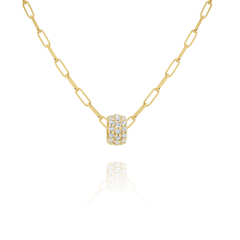 Product Description A beautiful pave rondel accented with 0.16 carats of round brilliant cut diamonds sits on a trending paperclip chain measuring 18 inches long. Other Details Metal Color: Yellow Gold Type: Necklace Disable Reason: None Gemstone Type: Diamond Necklace Type: Fashion Total Setting Diamond Carat Weight: 0.16TW Style: Contemporary