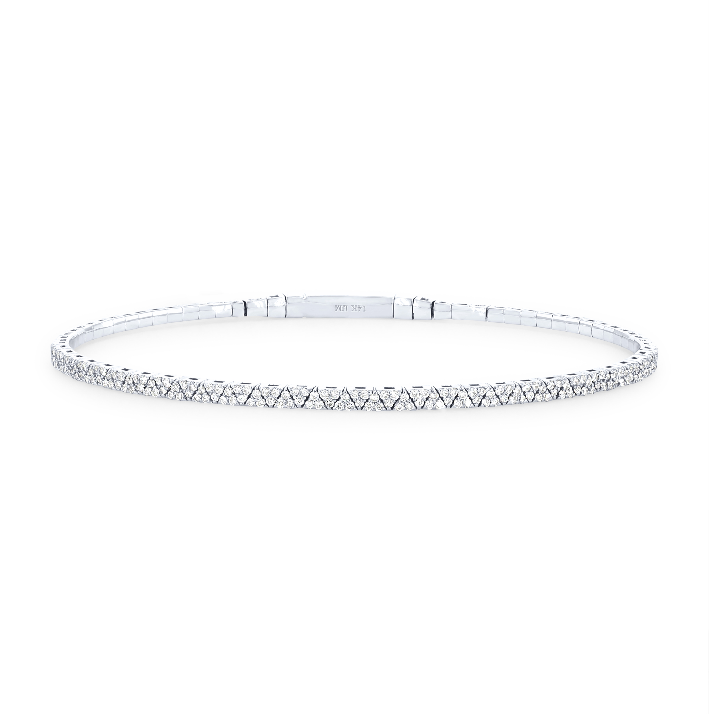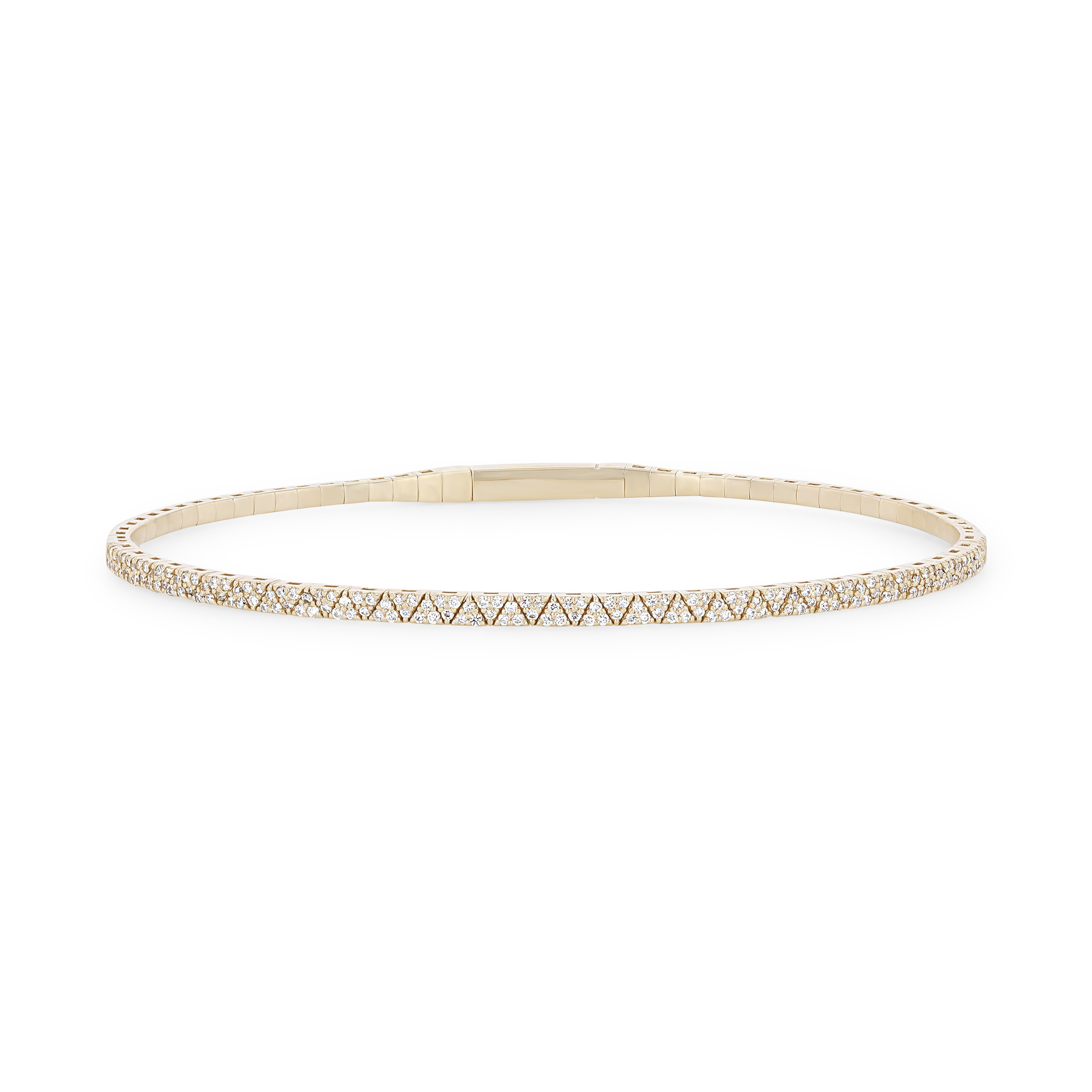 Product Description Crafted with a flexible design this bangle features 0.60 carats of round brilliant cut diamonds in a pave style. Other Details Metal Color: White Gold Disable Reason: None Style: Contemporary Type: Bracelet Total Setting Diamond Carat Weight: 0.6TW Bracelet Type: Bangles Metal Color: Yellow Gold Gemstone Type: Diamond