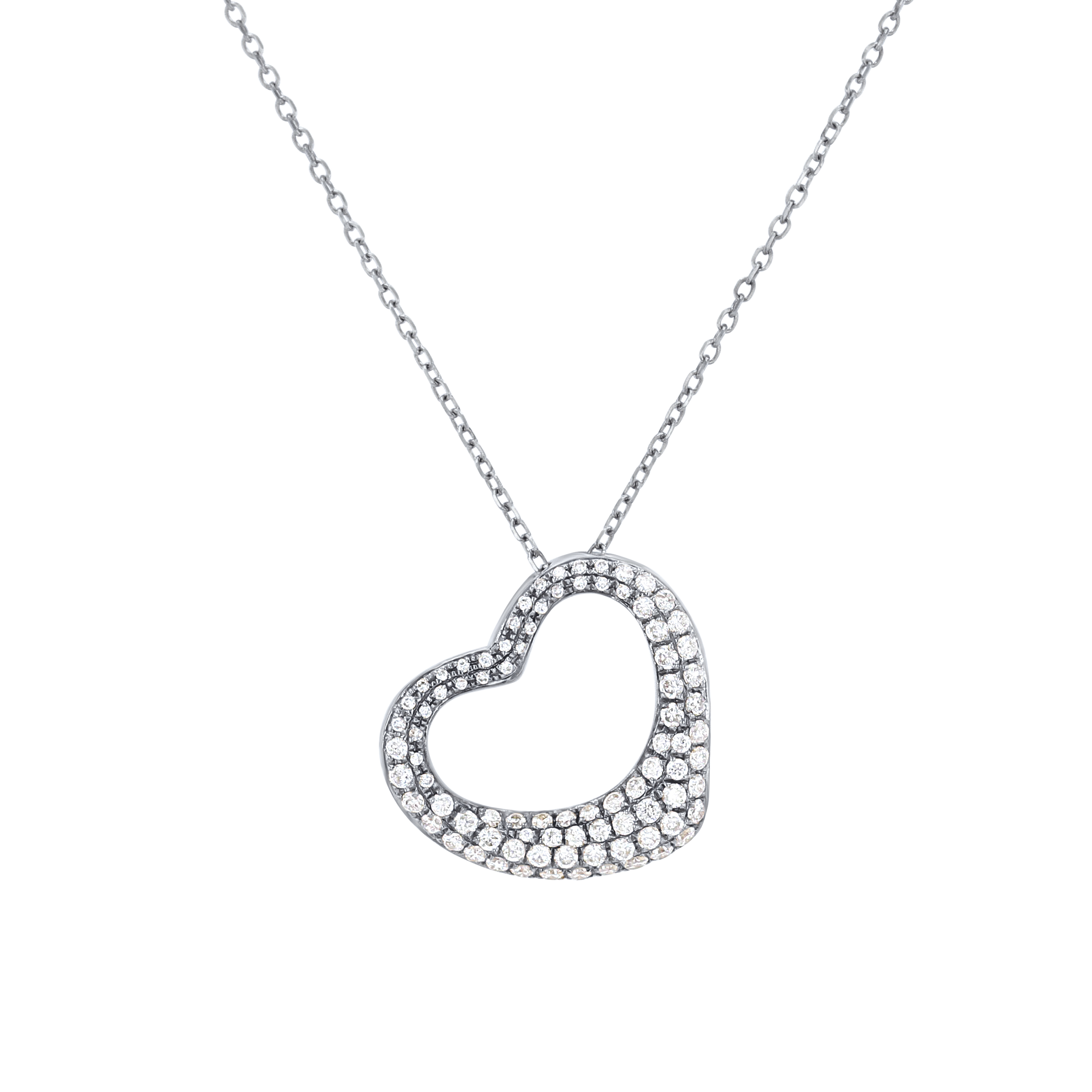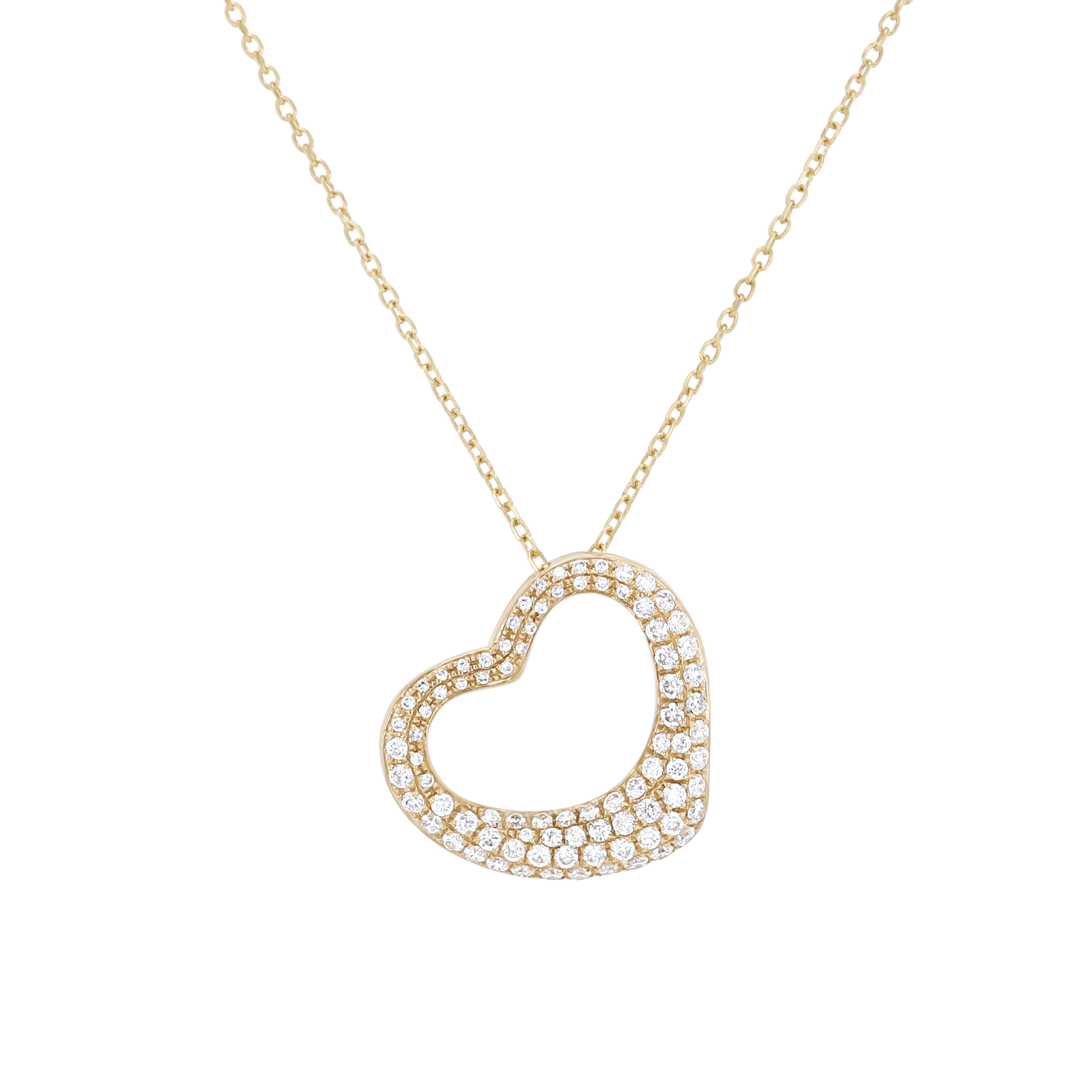 Product Description Full of sparkle, this pave slanted heart pendant features round brilliant cut diamonds totaling 0.35 carats. Other Details Pendant Type: Heart Necklace Type: Fashion Metal Color: Yellow Gold Disable Reason: None Style: Contemporary Gemstone Type: Diamond Total Setting Diamond Carat Weight: 0.35TW Metal Color: White Gold Type: Necklace