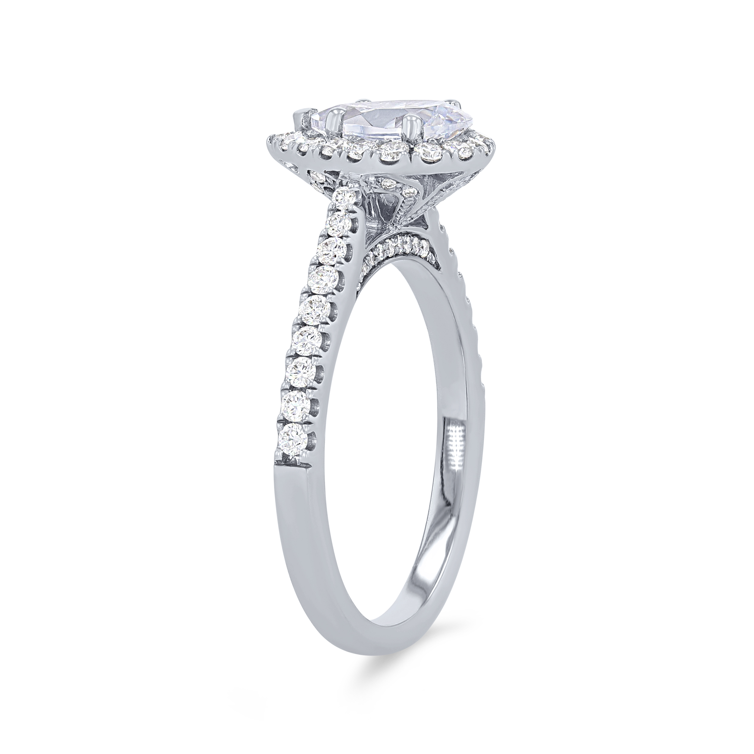 Product Description Accentuate the center stone with this pear shape halo engagement setting featuring 0.50 carats of round brilliant cut diamonds. Other Details Type: Setting Metal Color: Rose Gold Metal Color: White Gold Metal Color: Platinum Mounting Type: Halo Metal Color: Yellow Gold Gemstone Type: Diamond Style: Classic Disable Reason: None Total Setting Diamond Carat Weight: 0.5TW