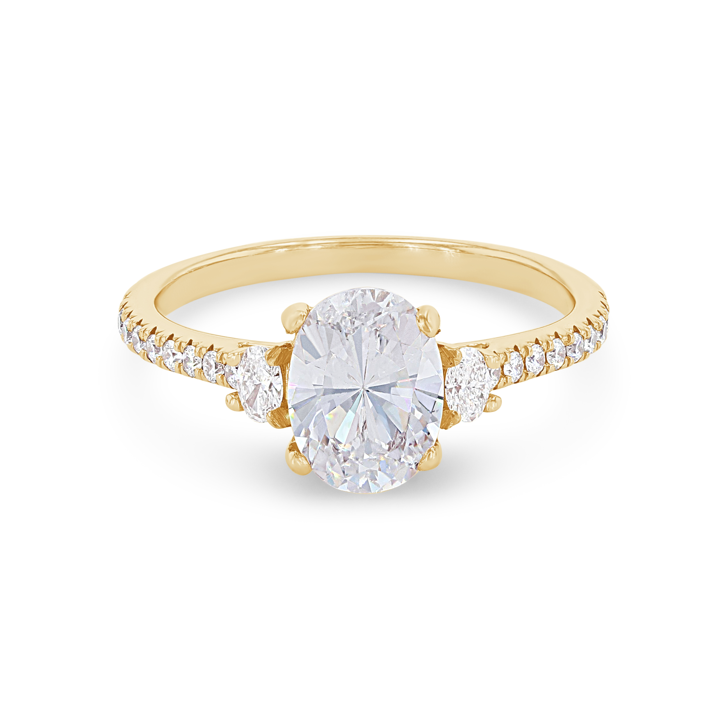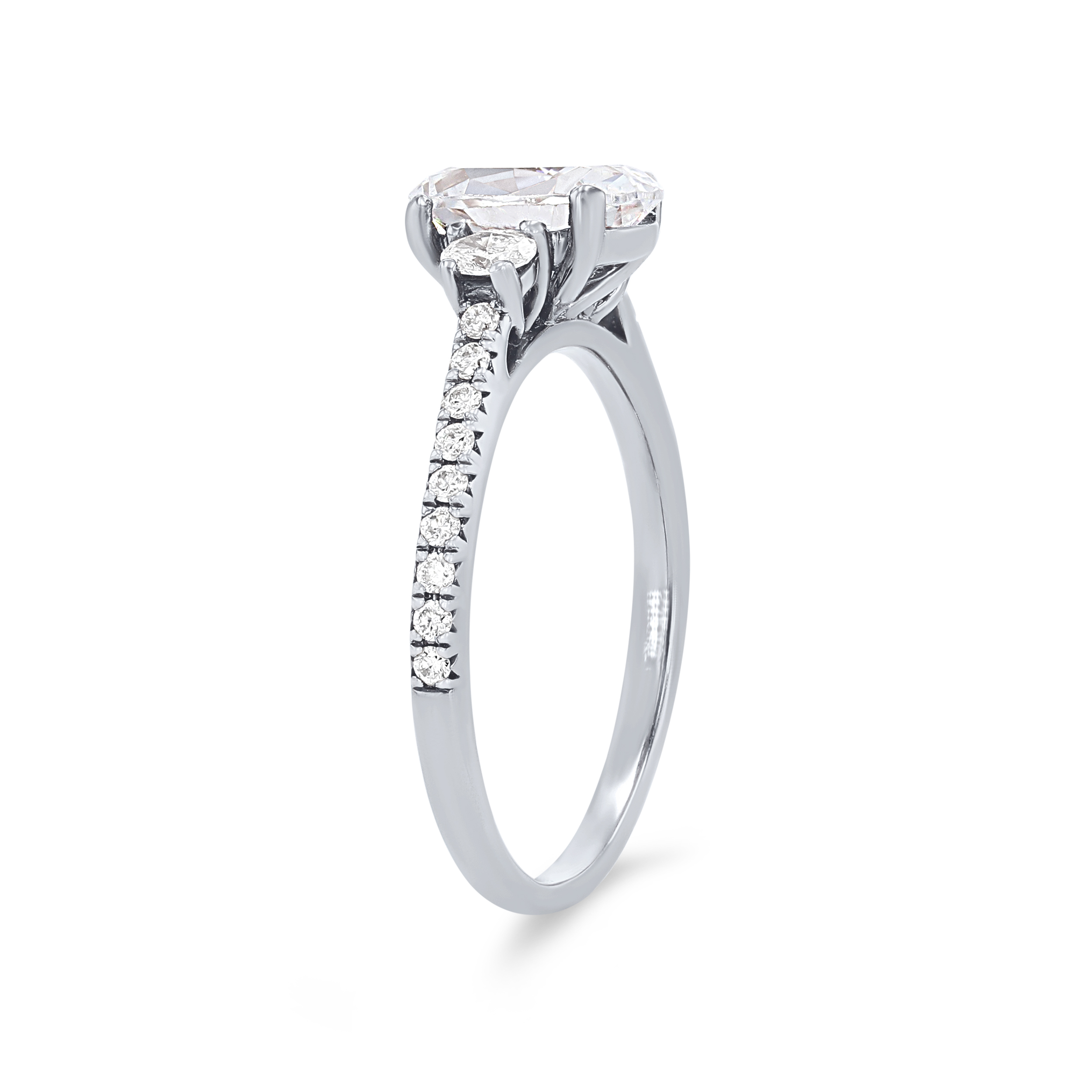 Product Description Two delicate oval cut diamonds on either side of the center stone along with round brilliant cut diamonds extending down the shank total 0.24 carats. Other Details Metal Color: Platinum Gemstone Type: Diamond Style: Classic Mounting Type: Three Stone Type: Setting Metal Color: Yellow Gold Metal Color: White Gold Disable Reason: None Total Setting Diamond Carat Weight: 0.24TW Metal Color: Rose Gold