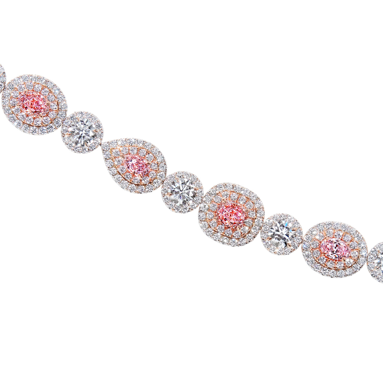 Product Description An elegant tennis bracelet showcasing 5.24 carats of GIA certified pink diamonds and 7.55 carats of round brilliant diamonds, set in 18 karat two tone gold. Other Details Average color range: FP Average clarity range: VS Gemstone Type: Diamond Type: Luxury Luxury Collection Item Type: Bracelet Bracelet Type: Tennis Bracelets Metal Color: White Gold Disable Reason: None Total Setting Diamond Carat Weight: 12.79TW