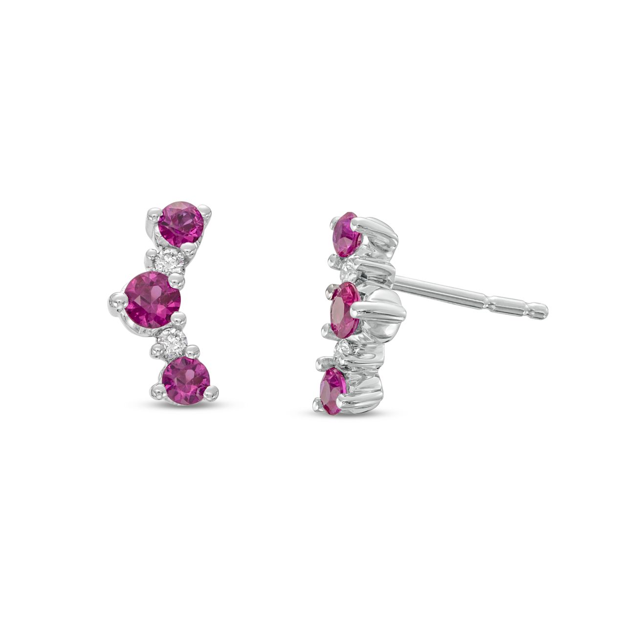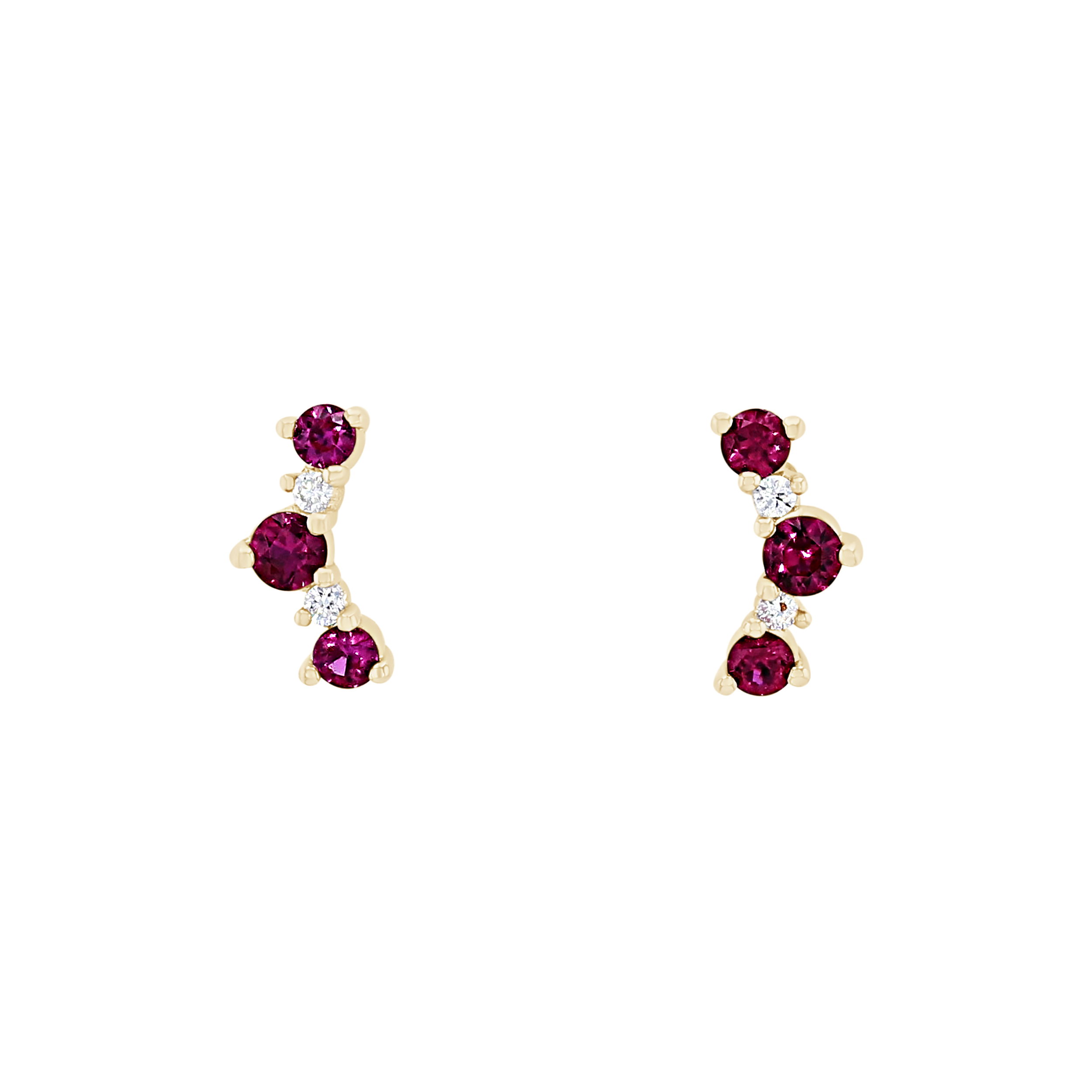 Product Description These delicate stud earrings feature rubies totaling 0.56 carats and round brilliant cut diamonds totaling 0.05 carats. Other Details Gemstone Type: Ruby Total Gemstone Carat Weight: 0.56TW Metal Color: Yellow Gold Total Setting Diamond Carat Weight: 0.05TW Style: Contemporary Metal Color: White Gold Women Wedding Band Type: Gemstone Type: Earrings Disable Reason: None Earring Type: Gemstones