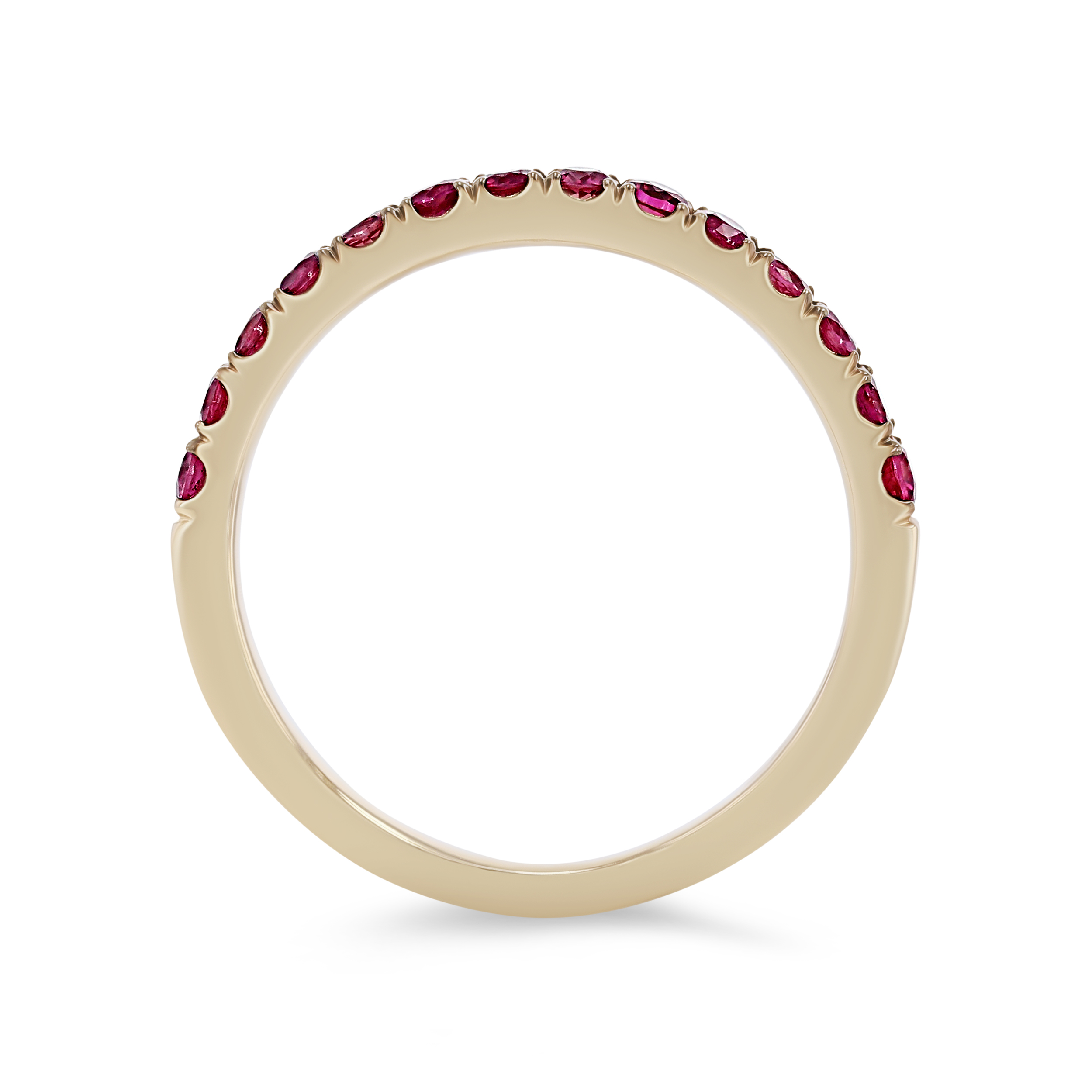Product Description This wedding band features stunning red rubies totaling 0.56 carats. Stack with any wedding set for a pop of color. Other Details Total Gemstone Carat Weight: 0.57TW Women Wedding Band Type: Gemstone Wedding Band Type: Prong Set Gemstone Type: Ruby Diamond: Stackable Type: Ladies Wedding Band Metal Color: Yellow Gold Style: Classic Disable Reason: None