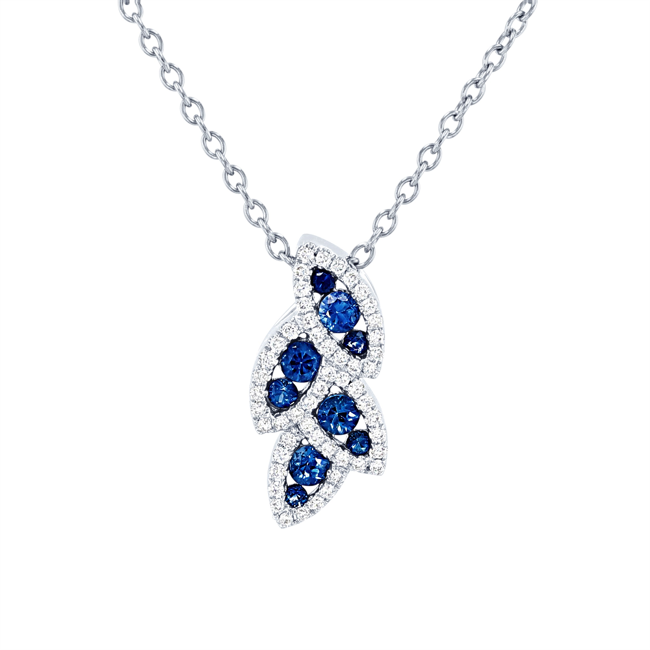 Product Description A unique nature inspired design, this pendant features blue sapphires totaling 0.55 carats and round brilliant cut diamonds totaling 0.25 carats. Other Details Pendant Type: Gemstone Total Setting Diamond Carat Weight: 0.25TW Style: Contemporary Type: Necklace Length: 18 IN Necklace Type: Fashion Metal Color: White Gold Gemstone Type: Sapphire Total Gemstone Carat Weight: 0.55TW Disable Reason: None
