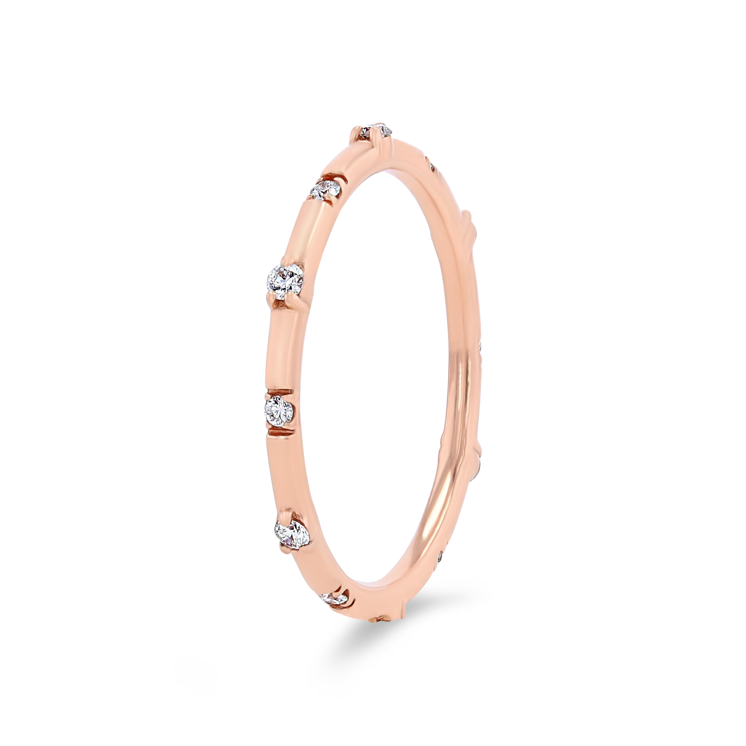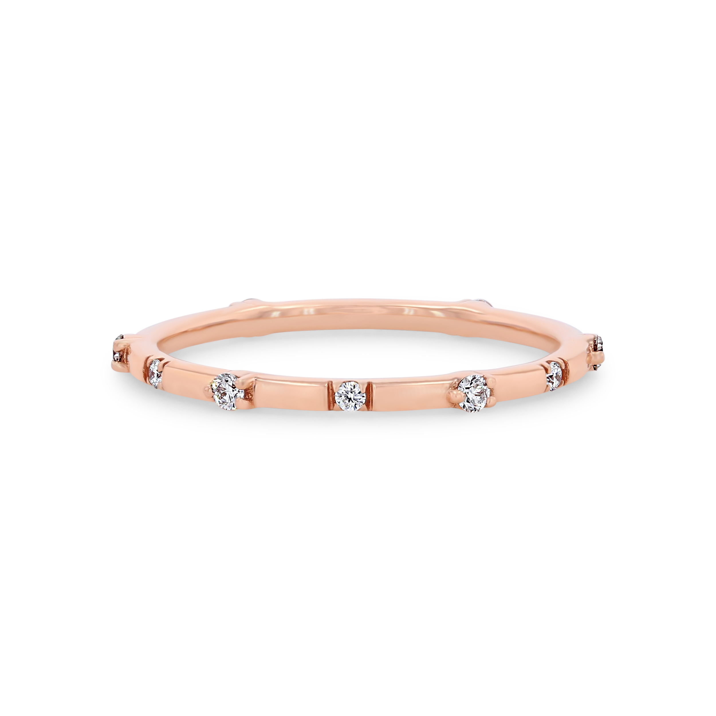 Product Description The round brilliant cut diamonds totaling 0.13 carats have alternating prong styles in this unique eternity band. Every other diamond sits in a slightly higher prong. Other Details Total Setting Diamond Carat Weight: 0.13TW Metal Color: Platinum Metal Color: White Gold Metal Color: Rose Gold Disable Reason: None Type: Ladies Wedding Band Metal Color: Yellow Gold Diamond: Stackable Gemstone Type: Diamond Wedding Band Type: Eternity Style: Contemporary