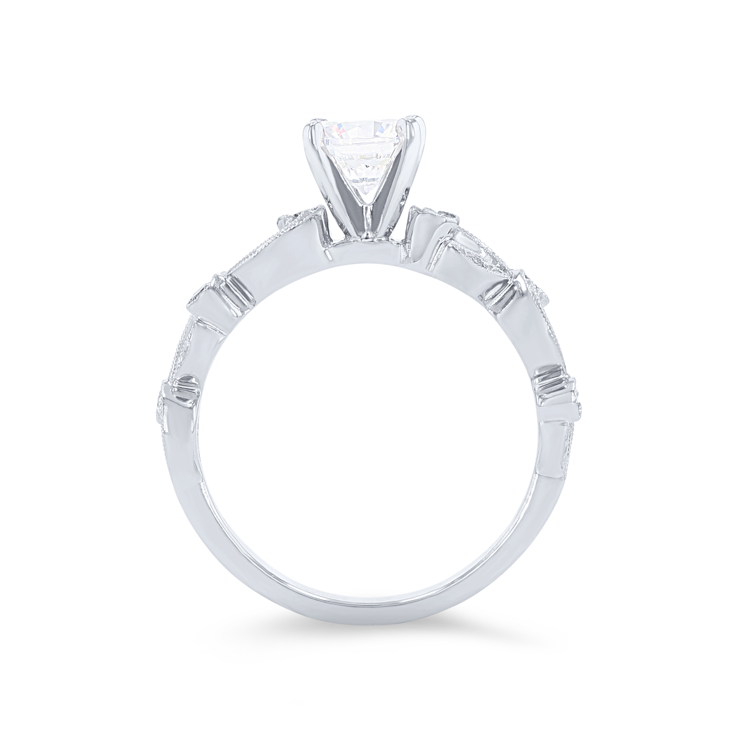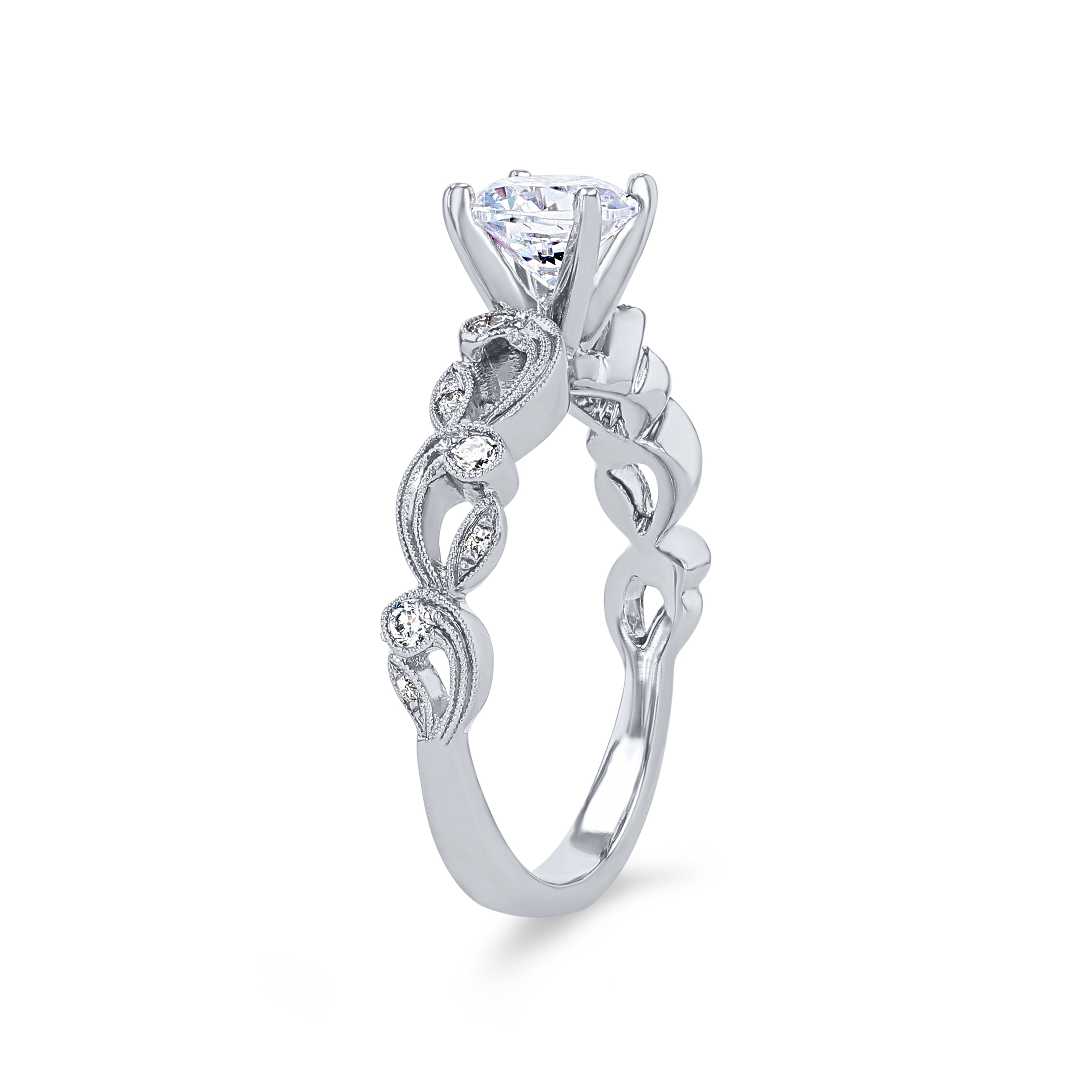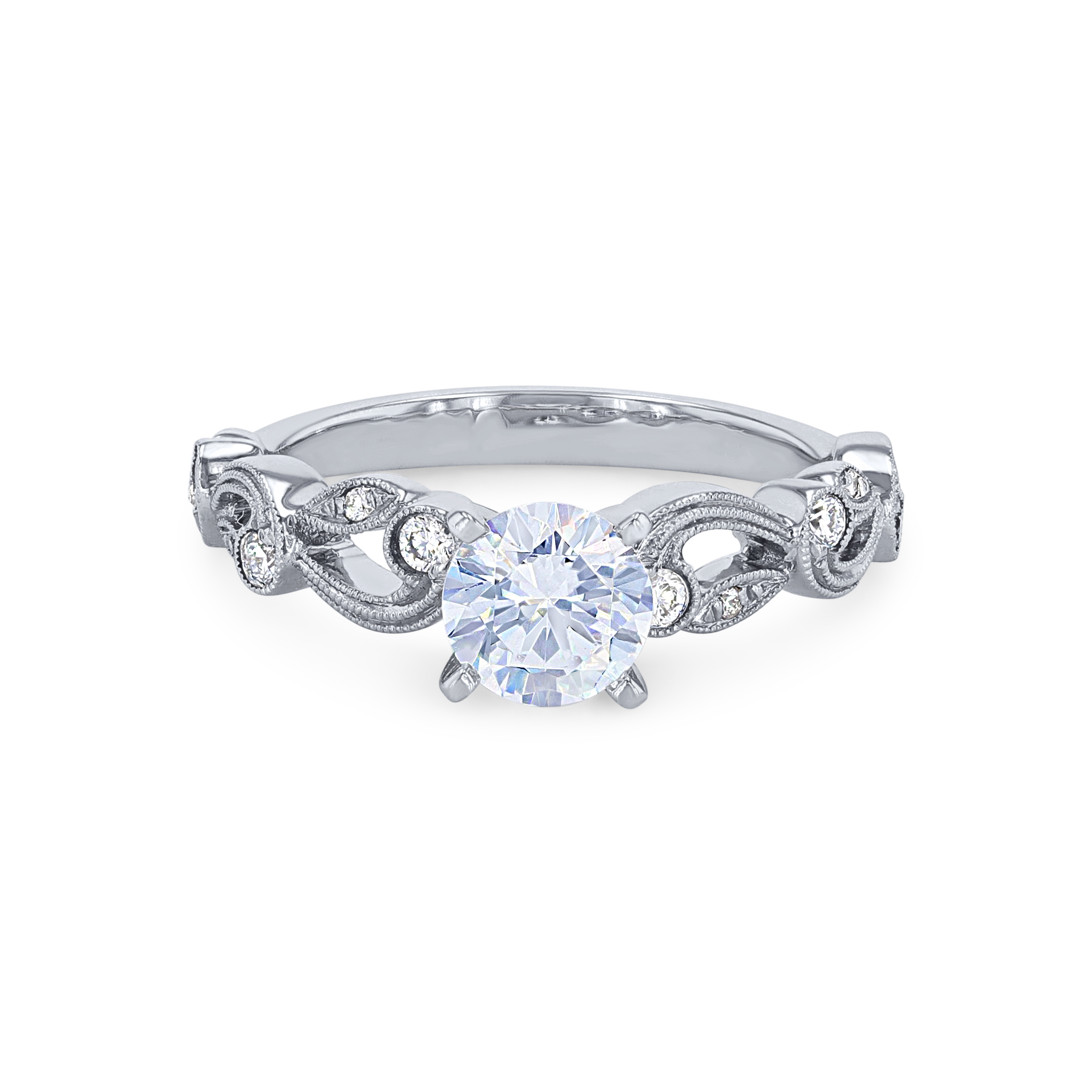 Product Description This vintage-inspired engagement setting by Simon G. features delicate scroll and milgrain detail accented by 0.17 carats of round brilliant cut diamonds. Other Details Metal Color: White Gold Style: Vintage Disable Reason: None Total Setting Diamond Carat Weight: 0.17TW Mounting Type: Diamond Accented Type: Setting Metal Color: Rose Gold Metal Color: Yellow Gold Metal Color: Platinum Gemstone Type: Diamond