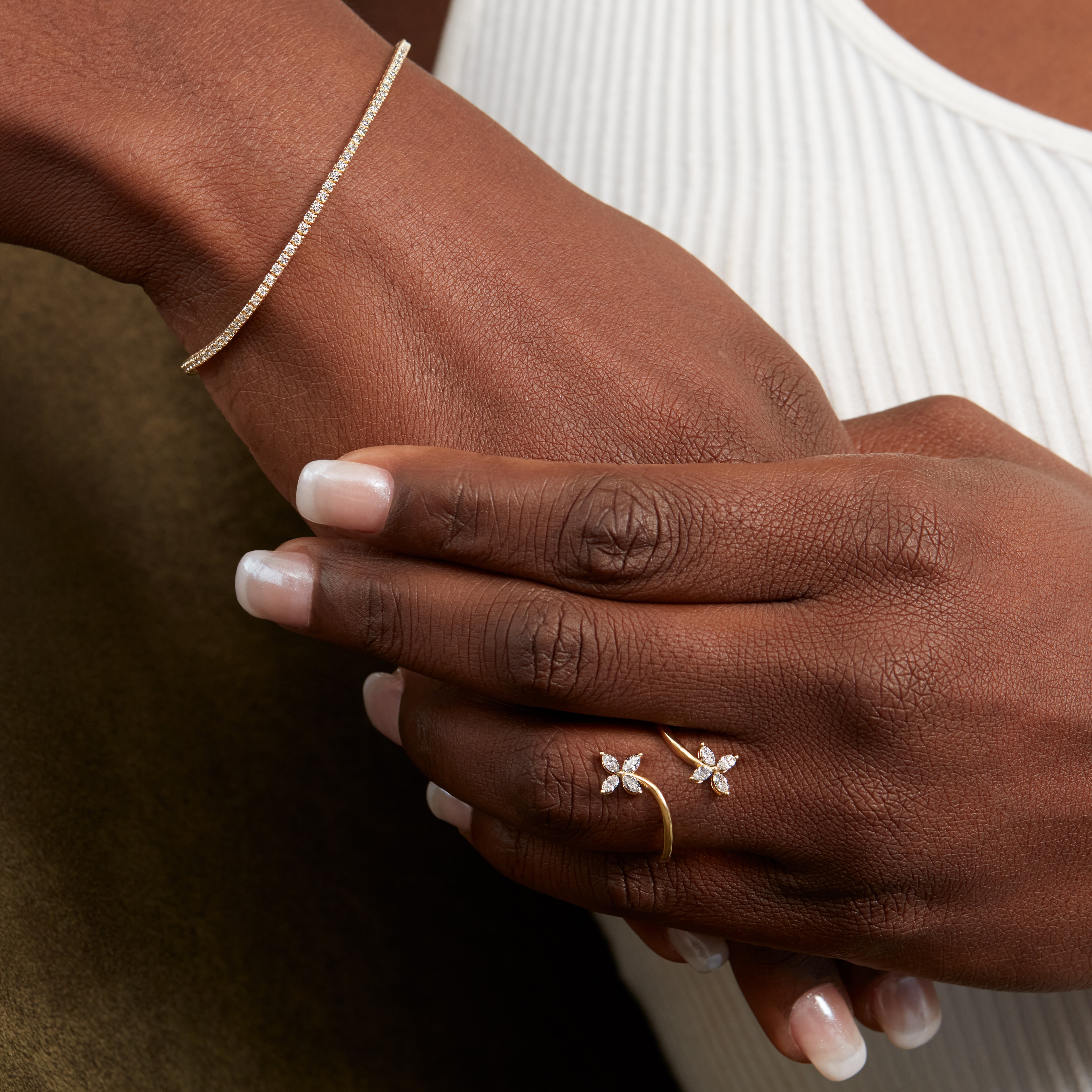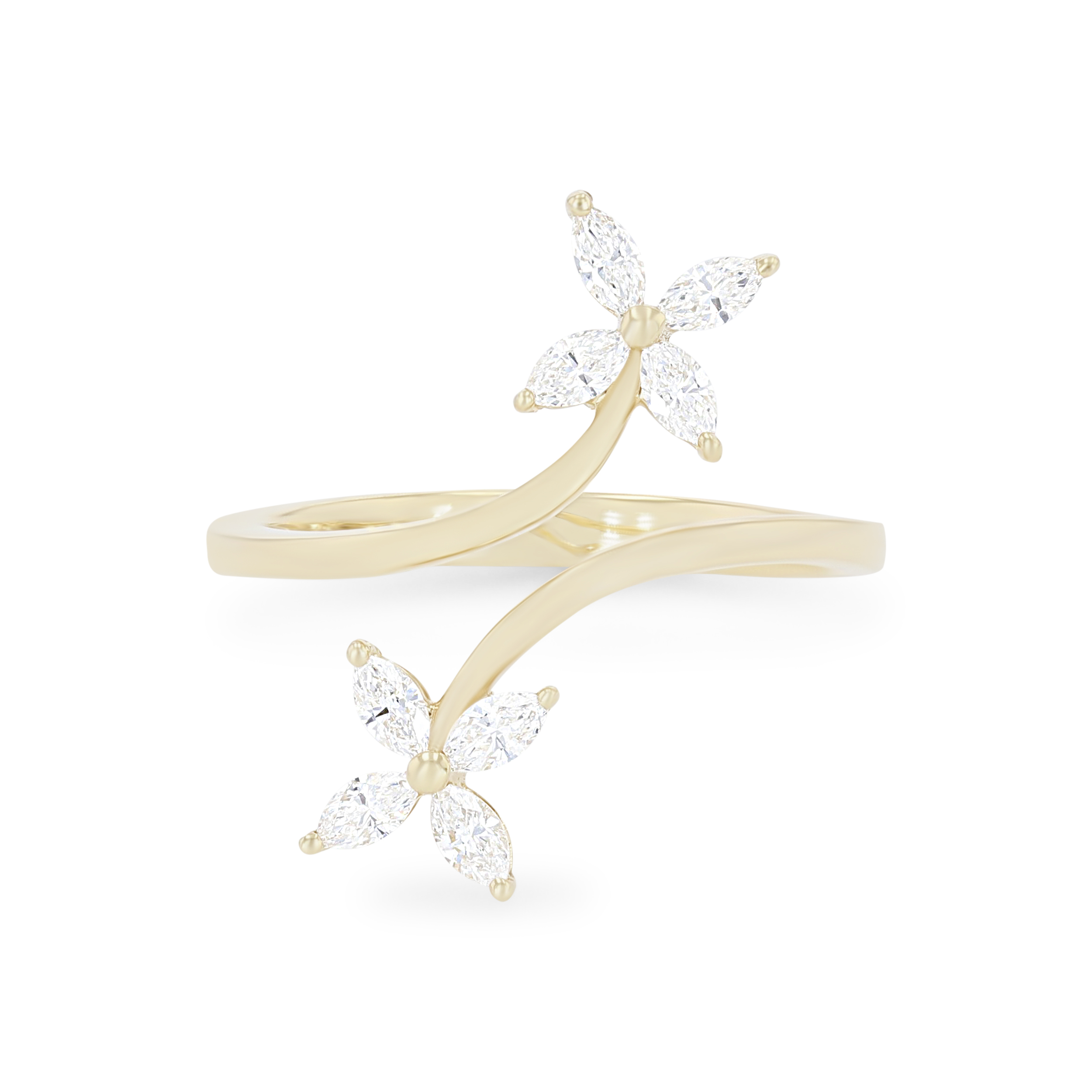 Crafted with nature-inspired detail, this beautiful bypass design ring features eight marquise cut diamonds totaling 0.42 carats.