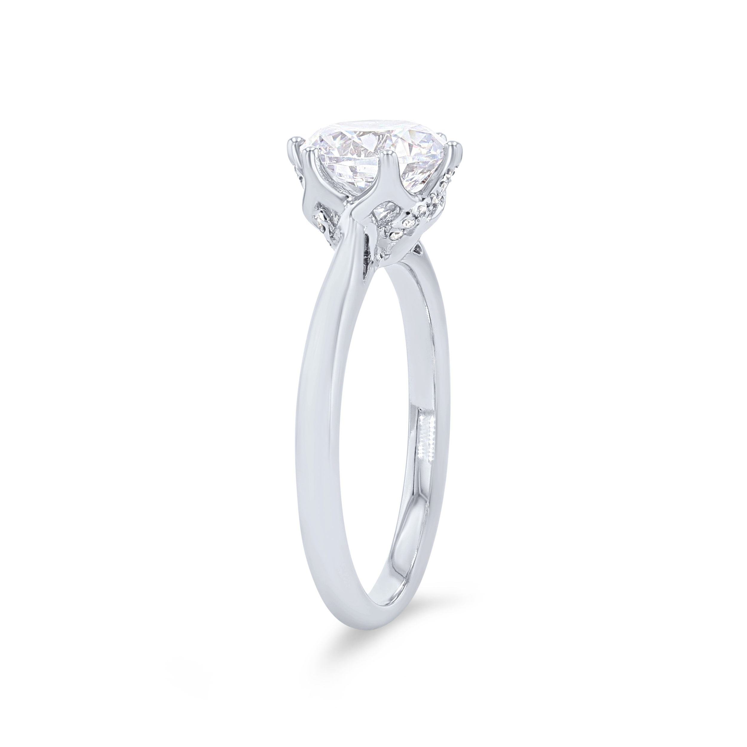 Product Description Crafted in a classic six-prong style, this solitaire engagement setting features hidden round brilliant cut diamonds under the head totaling 0.05 carats. Other Details Disable Reason: None Mounting Type: Solitaire Metal Color: White Gold Metal Color: Yellow Gold Gemstone Type: Diamond Style: Classic Metal Color: Rose Gold Total Setting Diamond Carat Weight: 0.05TW Metal Color: Platinum Type: Setting