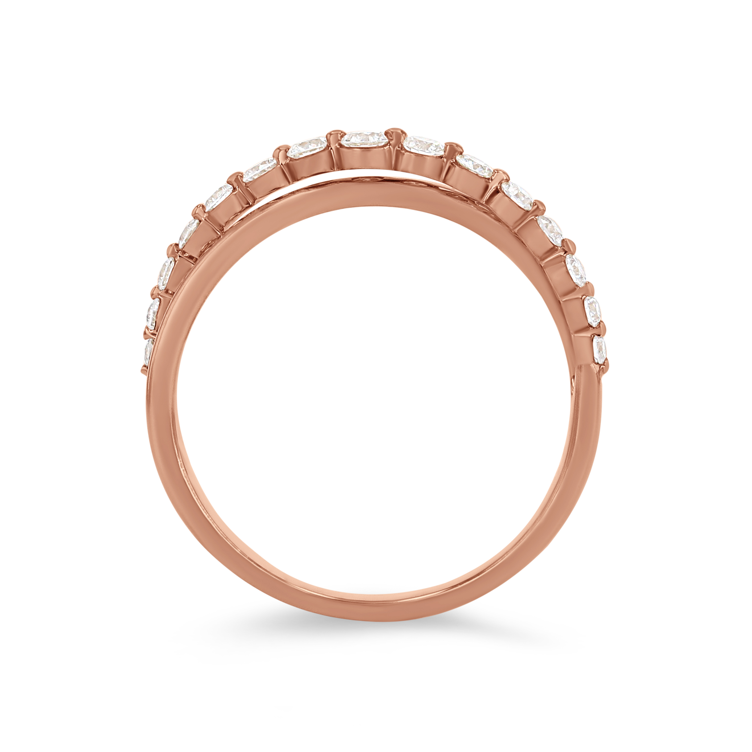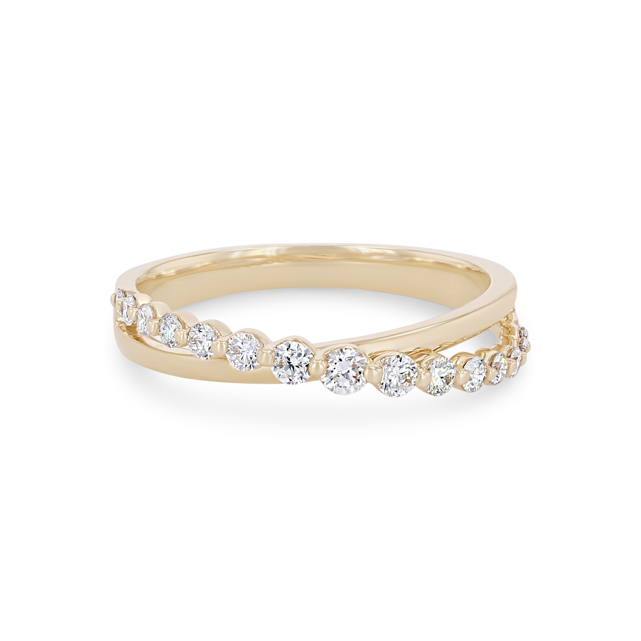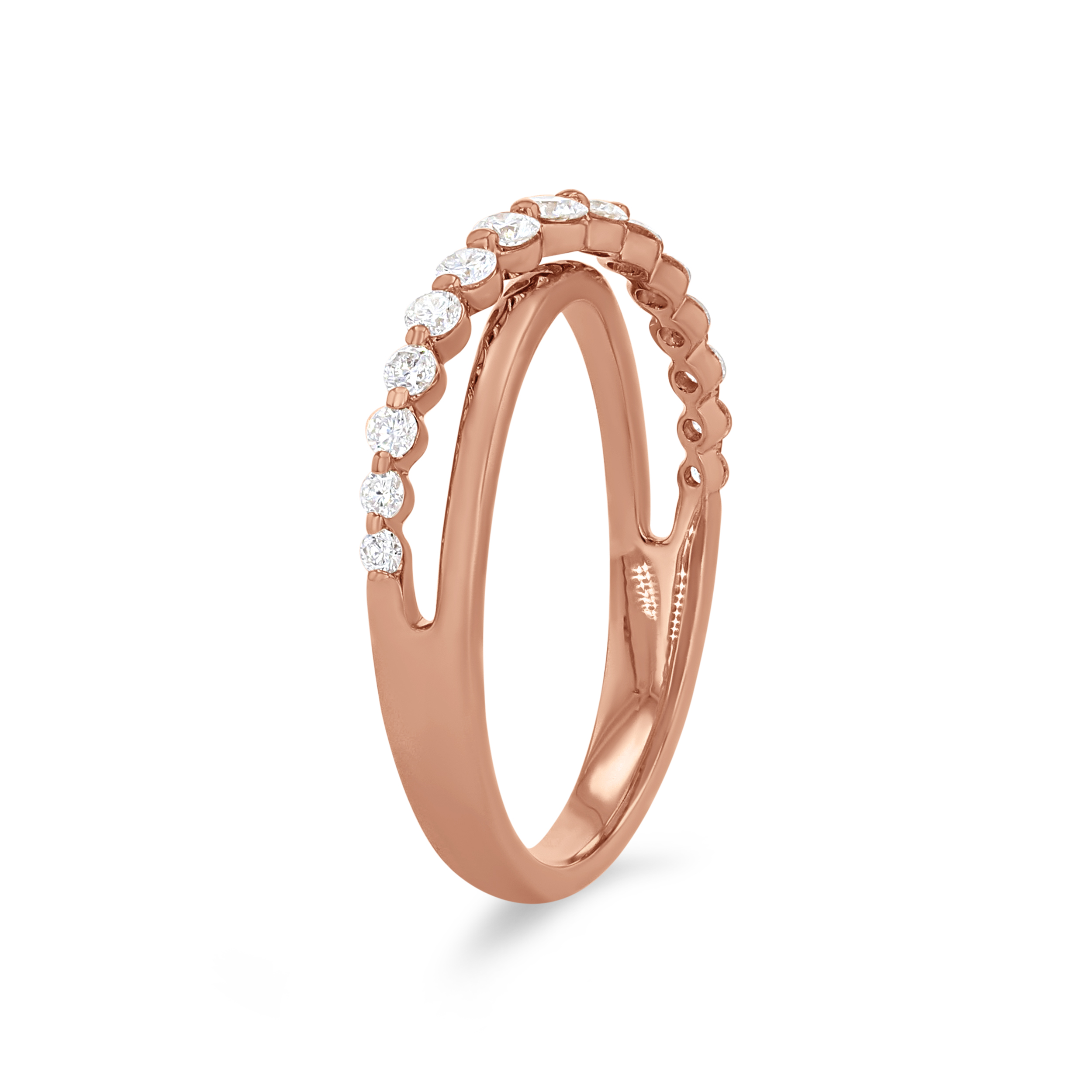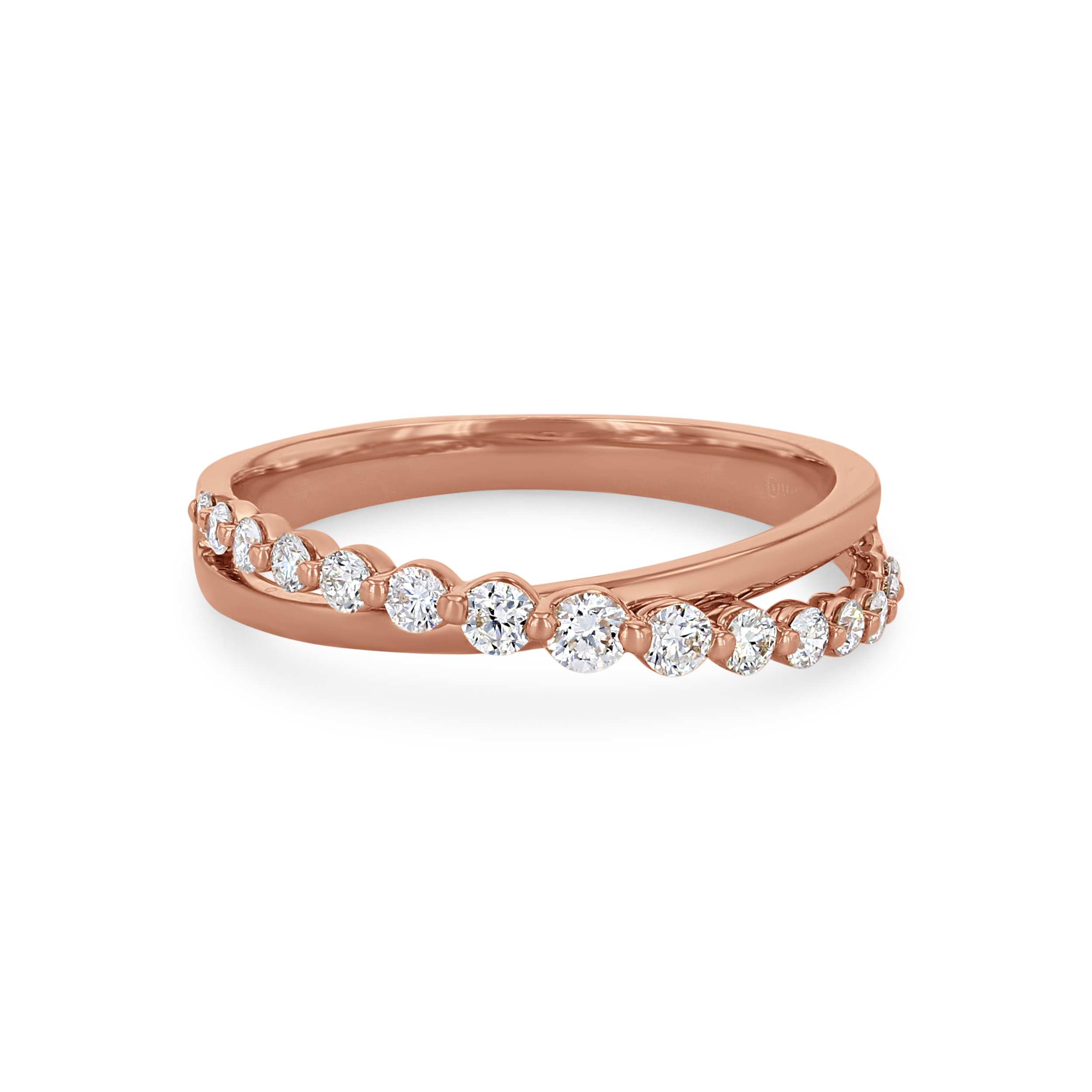 Product Description This modern ring features single prong set round brilliant cut diamonds totaling 0.30 carats crossing over high polished metal. Other Details Gemstone Type: Diamond Metal Color: Yellow Gold Ring Type: Fashion Metal Color: Rose Gold Total Setting Diamond Carat Weight: 0.3TW Style: Contemporary Metal Color: White Gold Disable Reason: None Type: Ring