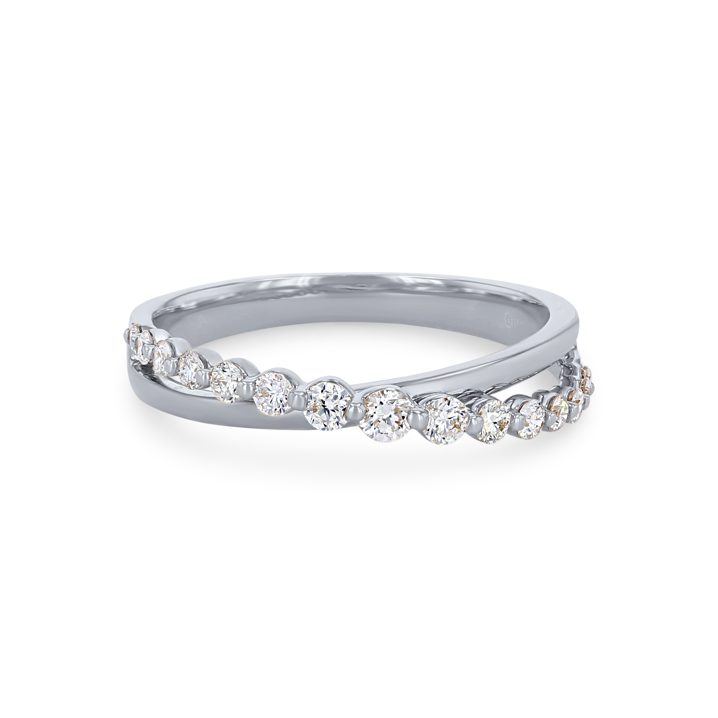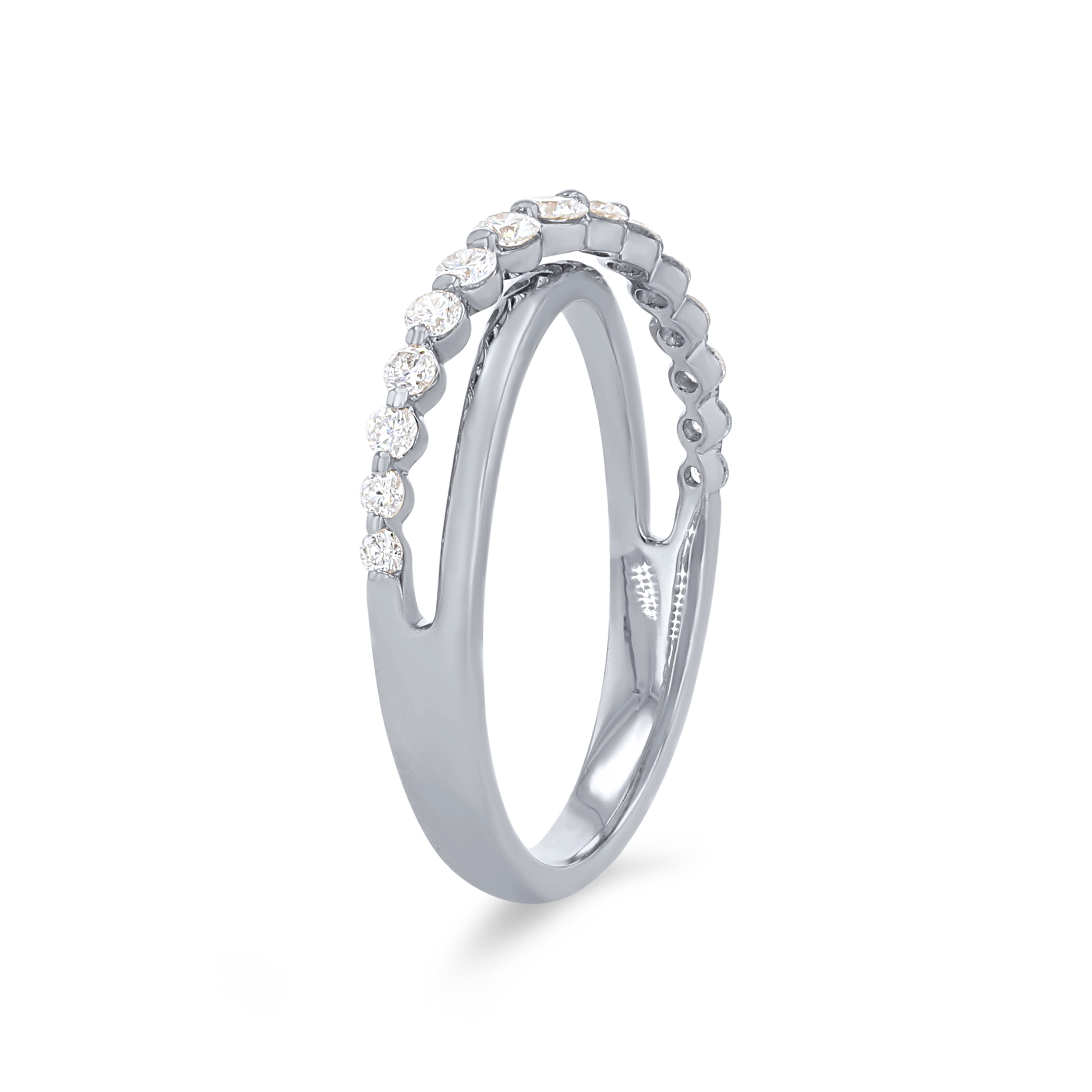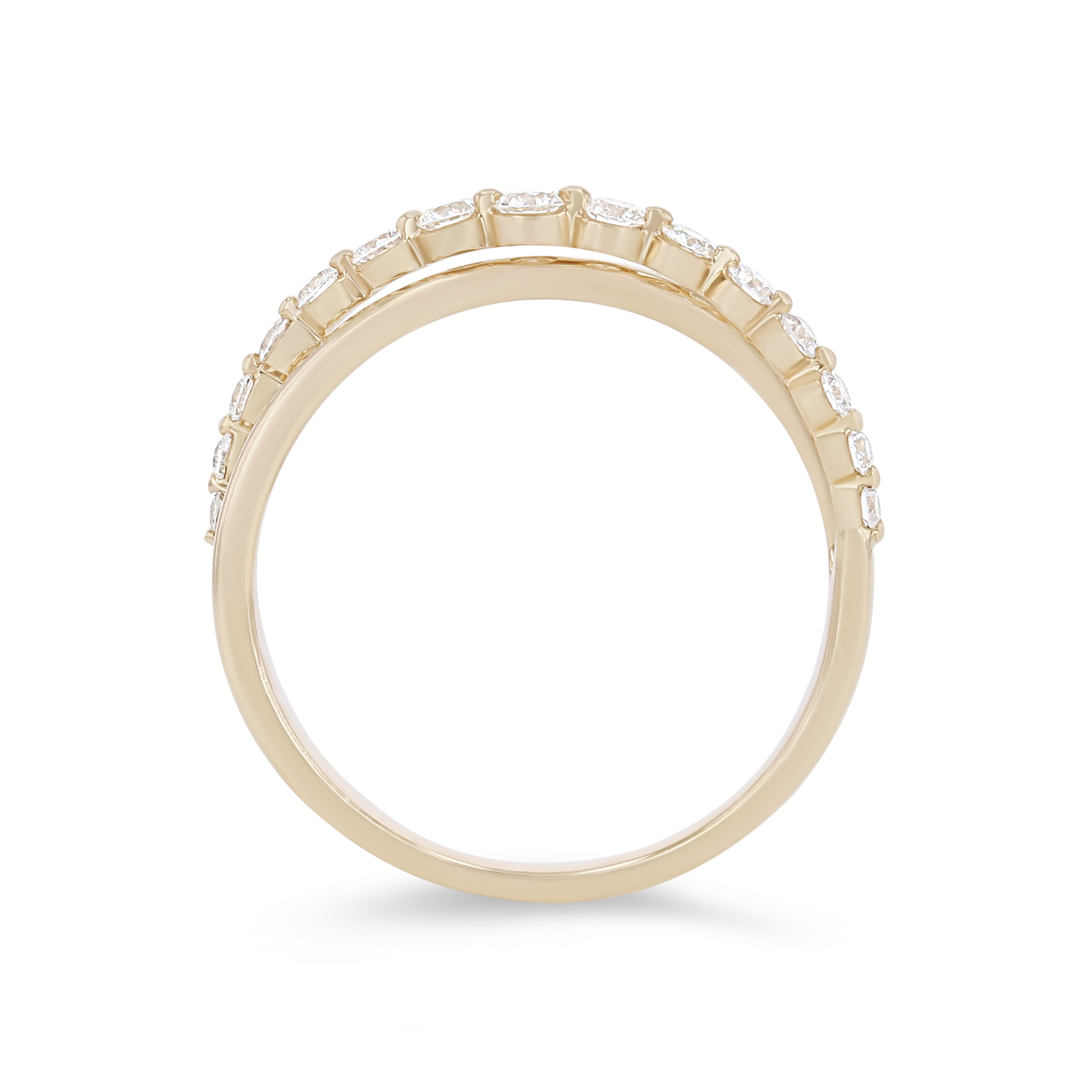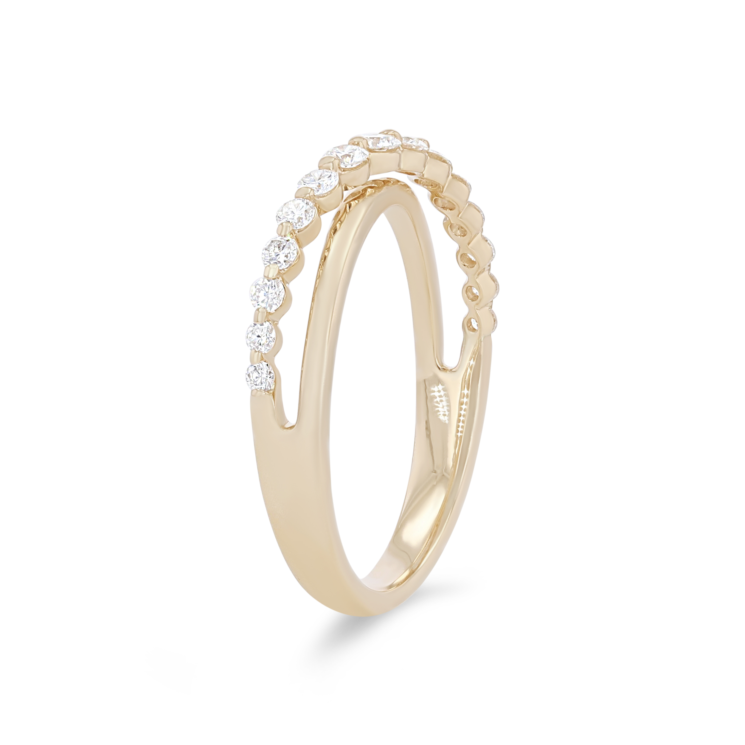 Product Description This modern ring features single prong set round brilliant cut diamonds totaling 0.30 carats crossing over high polished metal. Other Details Gemstone Type: Diamond Metal Color: Yellow Gold Ring Type: Fashion Metal Color: Rose Gold Total Setting Diamond Carat Weight: 0.3TW Style: Contemporary Metal Color: White Gold Disable Reason: None Type: Ring