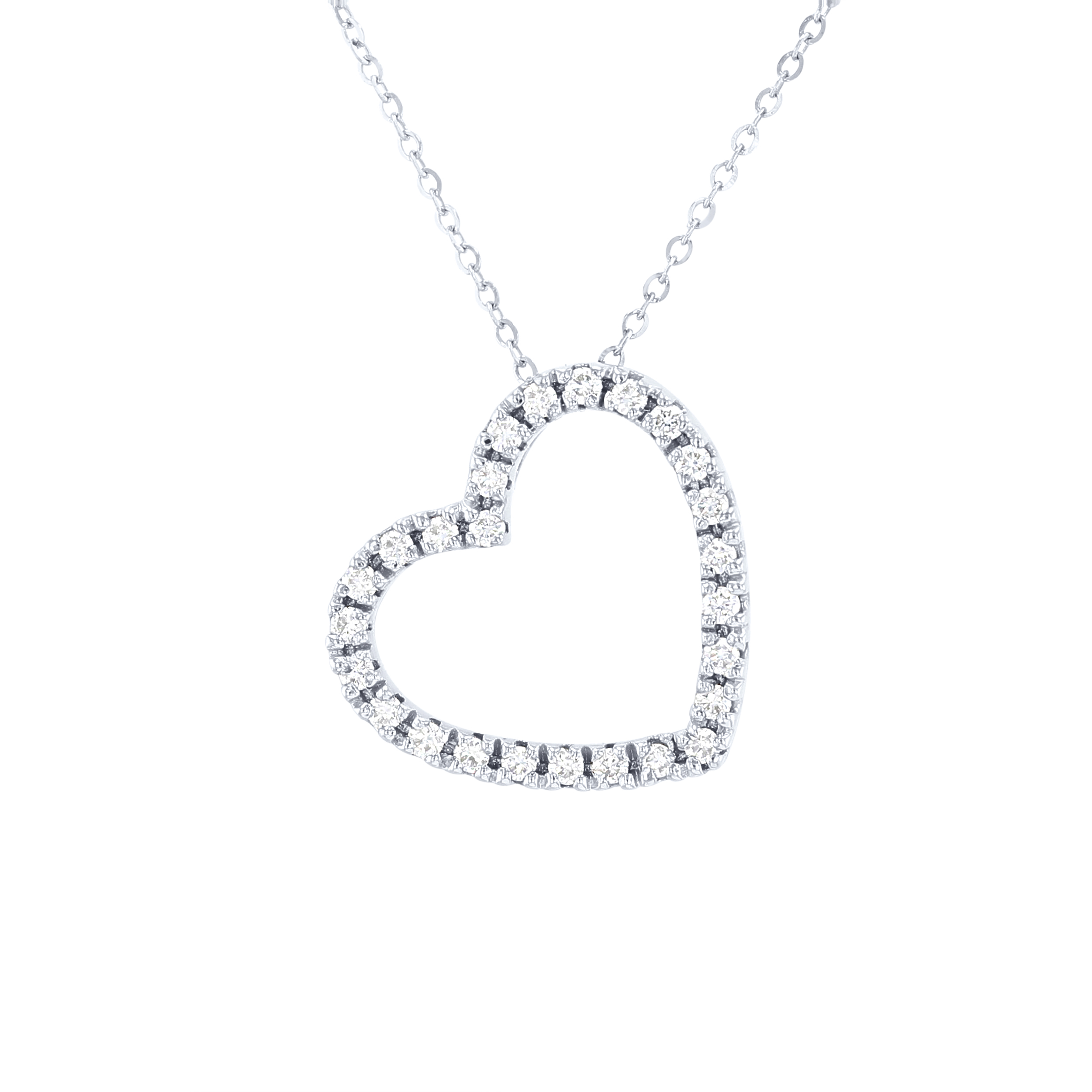 Product Description Symbolize your love with this classic heart pendant featuring round brilliant cut diamonds totaling 0.25 carats. Other Details Length: 18 IN Total Setting Diamond Carat Weight: 0.25TW Pendant Type: Heart Gemstone Type: Diamond Necklace Type: Fashion Style: Classic Metal Color: White Gold Disable Reason: None Type: Necklace