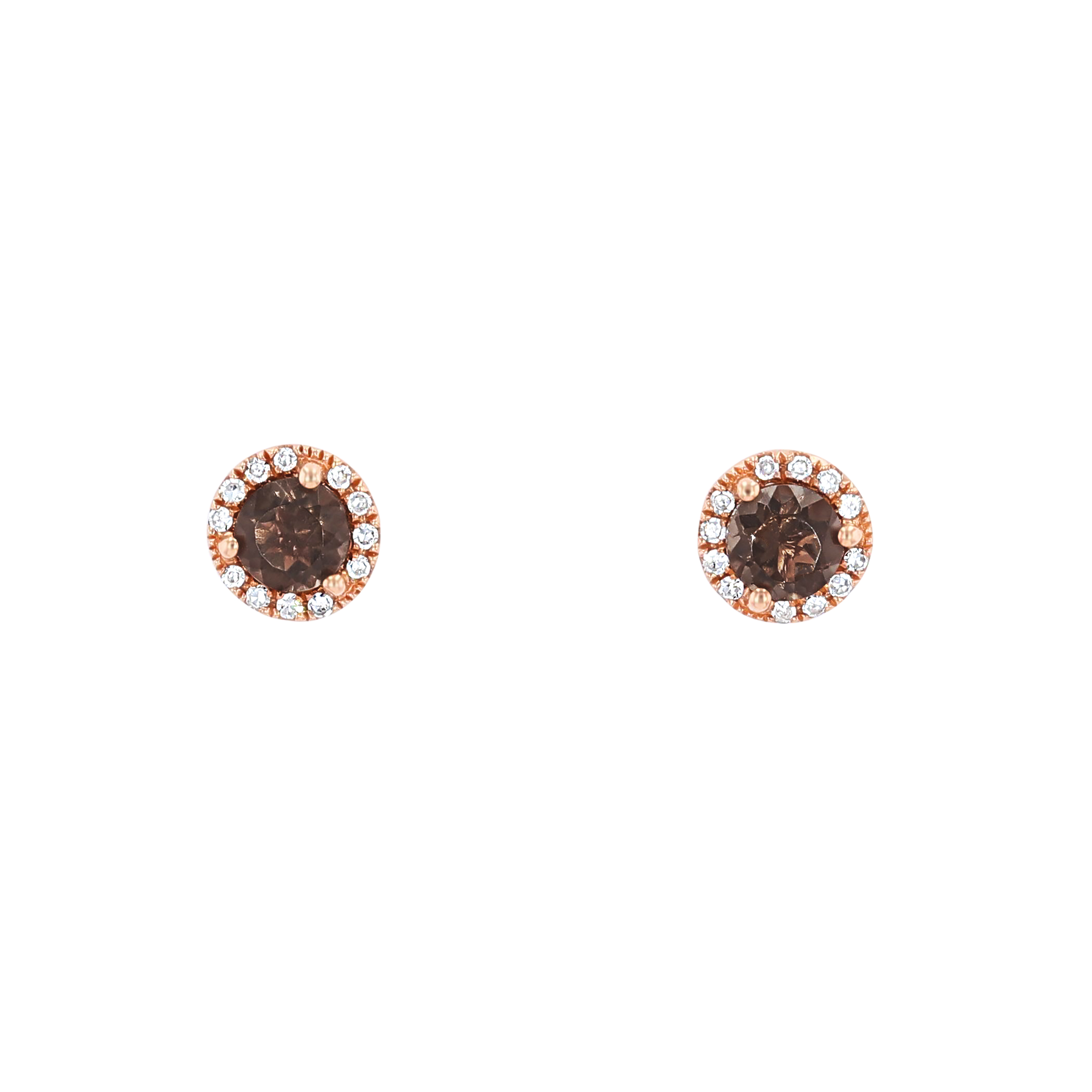 Product Description Two round cut smoky topaz totaling 0.80 carats are surrounded by halos of round brilliant cut diamonds totaling 0.08 carats. Other Details Style: Classic Earring Type: Gemstones Disable Reason: None Total Gemstone Carat Weight: 0.8TW Total Setting Diamond Carat Weight: 0.08TW Type: Earrings Metal Color: Rose Gold Gemstone Type: Blue Topaz Women Wedding Band Type: Gemstone