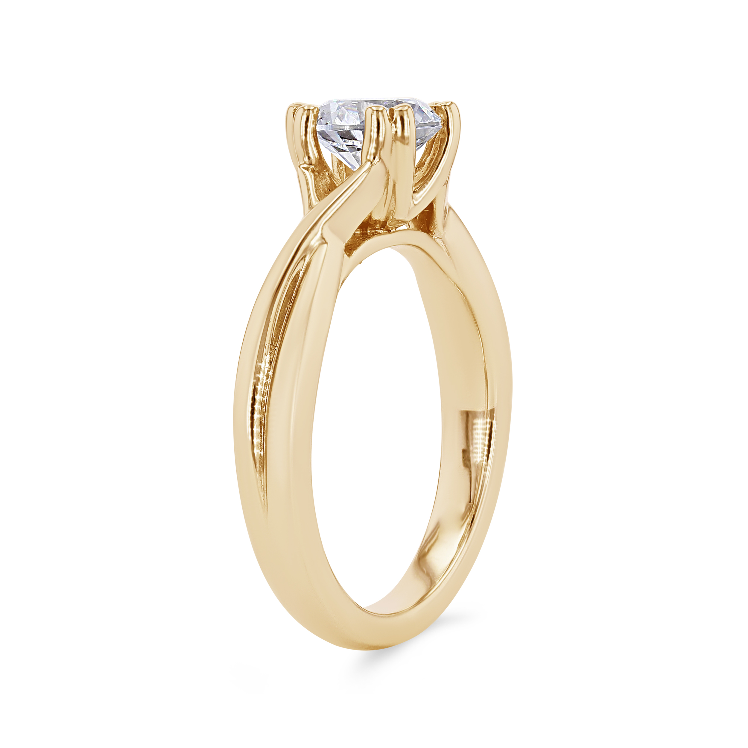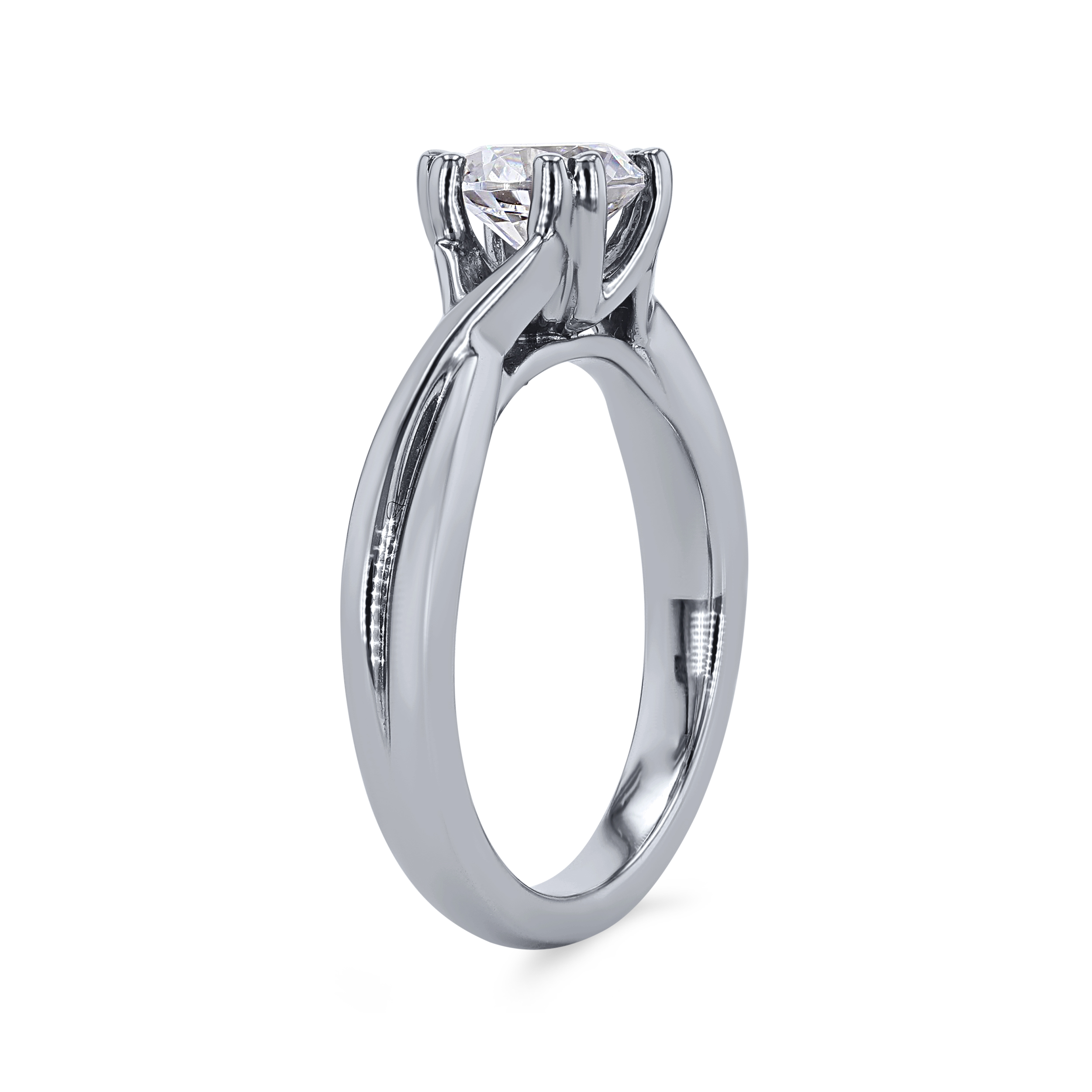 Simple yet sophisticated, this solitaire engagement setting has a twist design for a contemporary look.