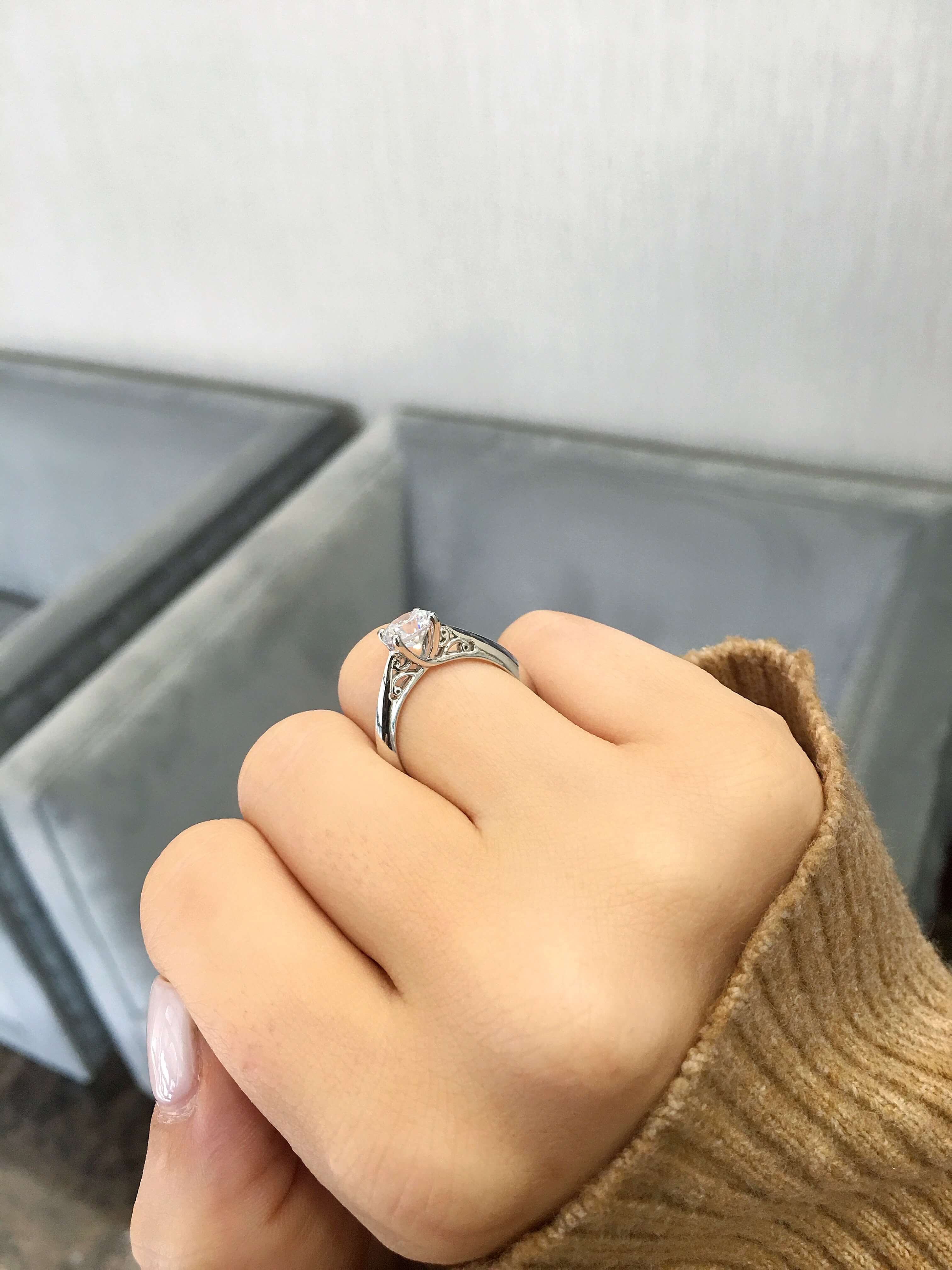 Product Description Vintage scroll details hidden in the cathedral create a stunning solitaire setting. Other Details Metal Color: Yellow Gold Metal Color: Platinum Style: Vintage Metal Color: White Gold Metal Color: Rose Gold Mounting Type: Solitaire Disable Reason: None Type: Setting