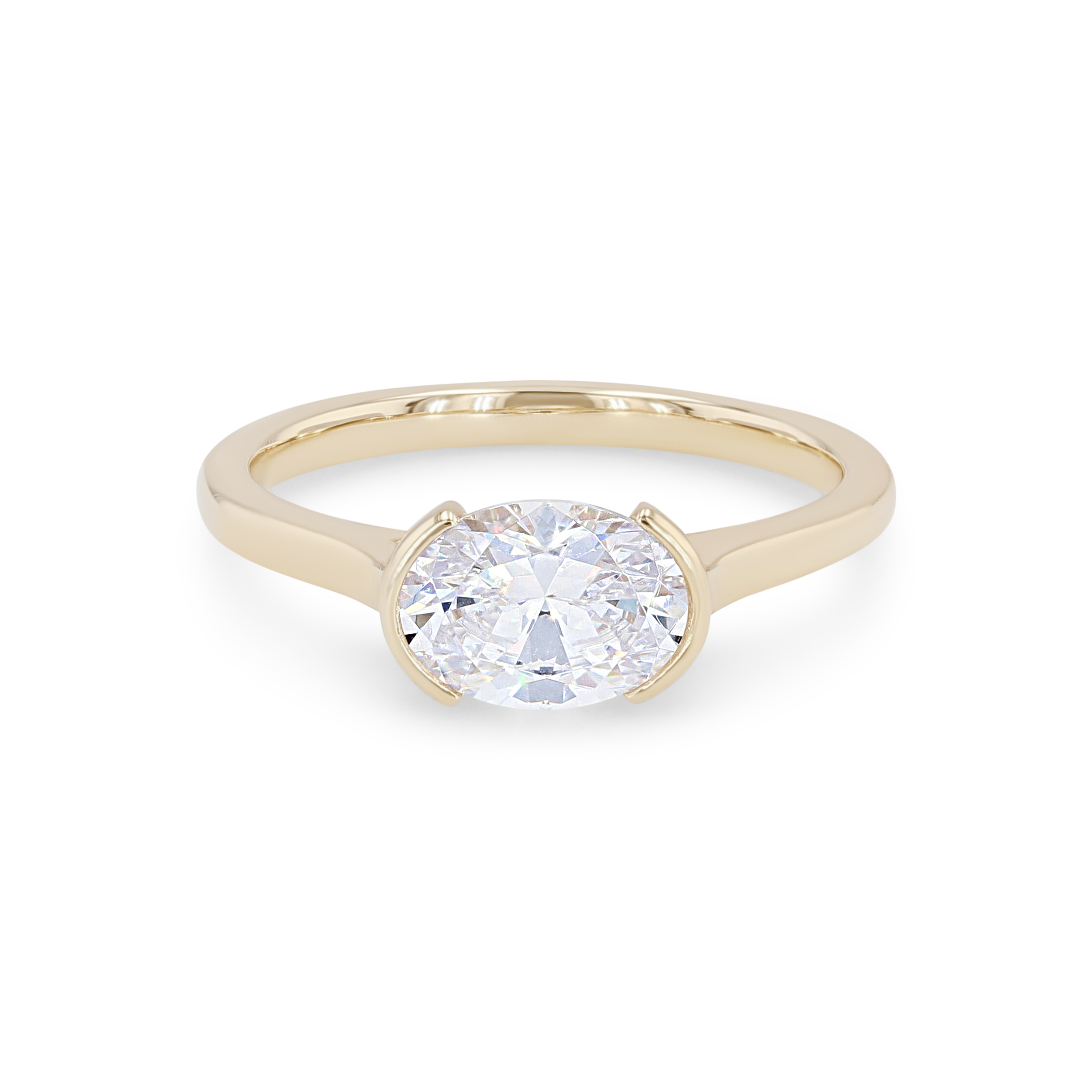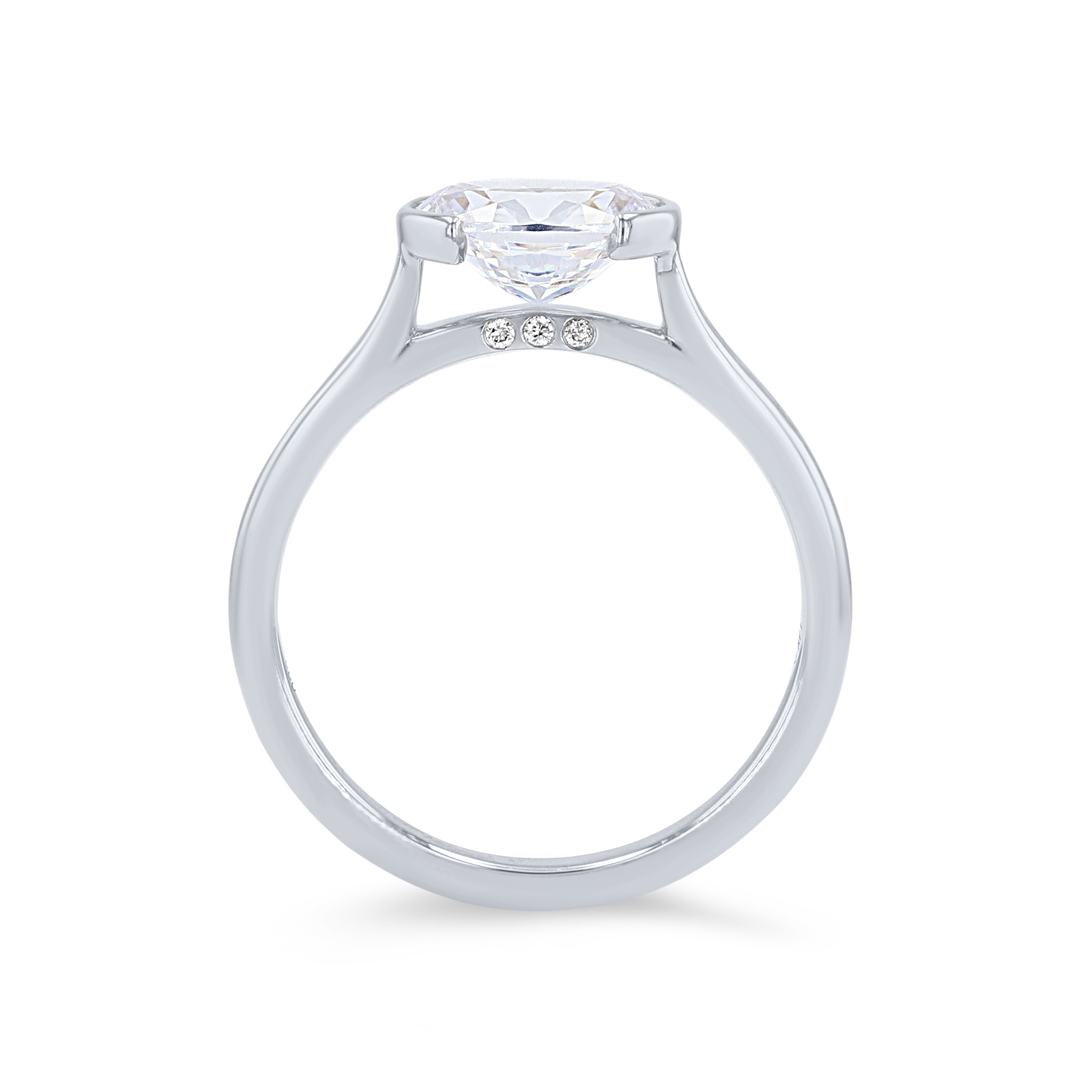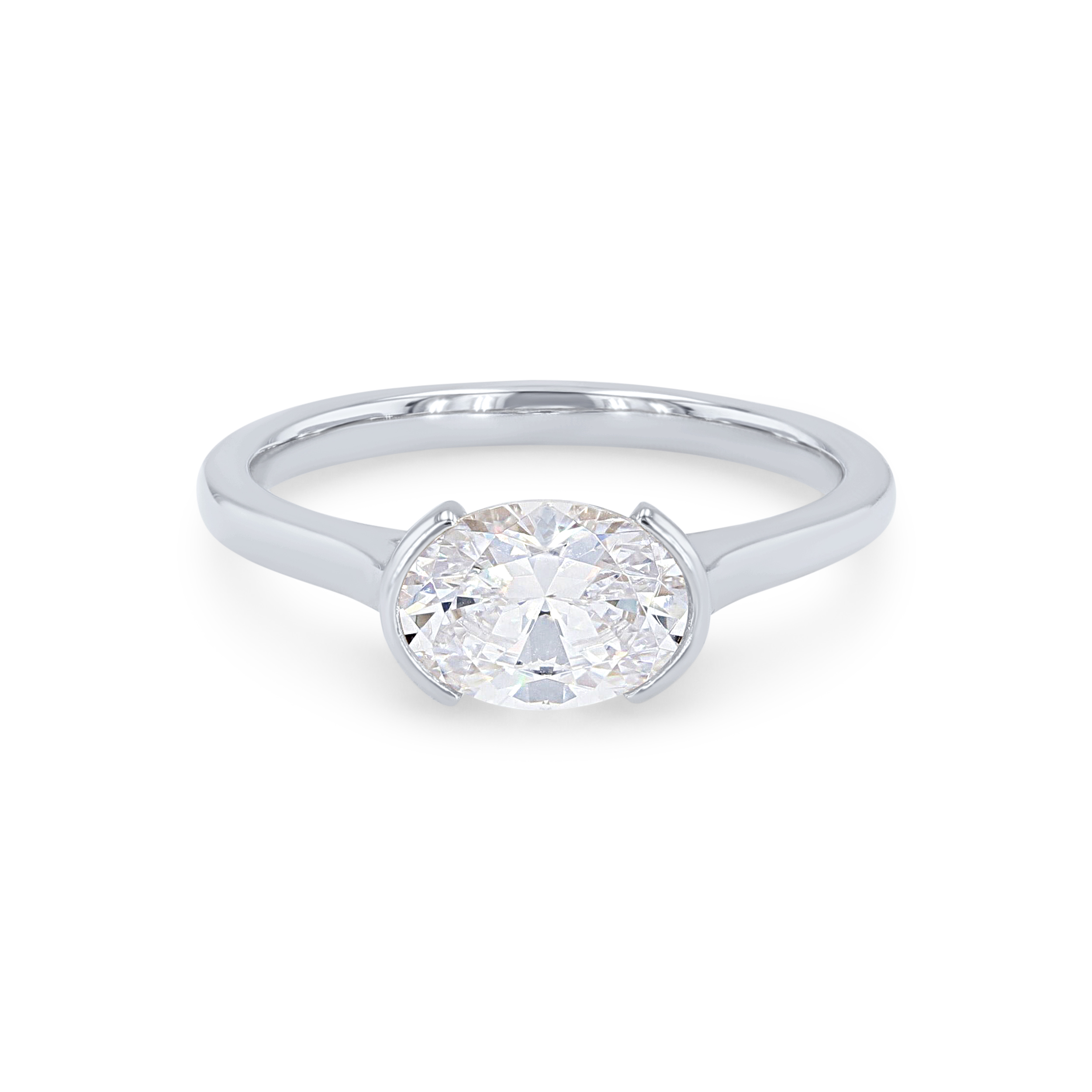 Product Description Featuring a modern "east to west" style center stone, this solitaire engagement setting showcases a half bezel design. There are accents of hidden round brilliant cut diamonds on the profiles totaling 0.02 carats. Other Details Metal Color: White Gold Metal Color: Platinum Disable Reason: None Metal Color: Rose Gold Mounting Type: Solitaire Total Setting Diamond Carat Weight: 0.02TW Type: Setting Metal Color: Yellow Gold Style: Contemporary