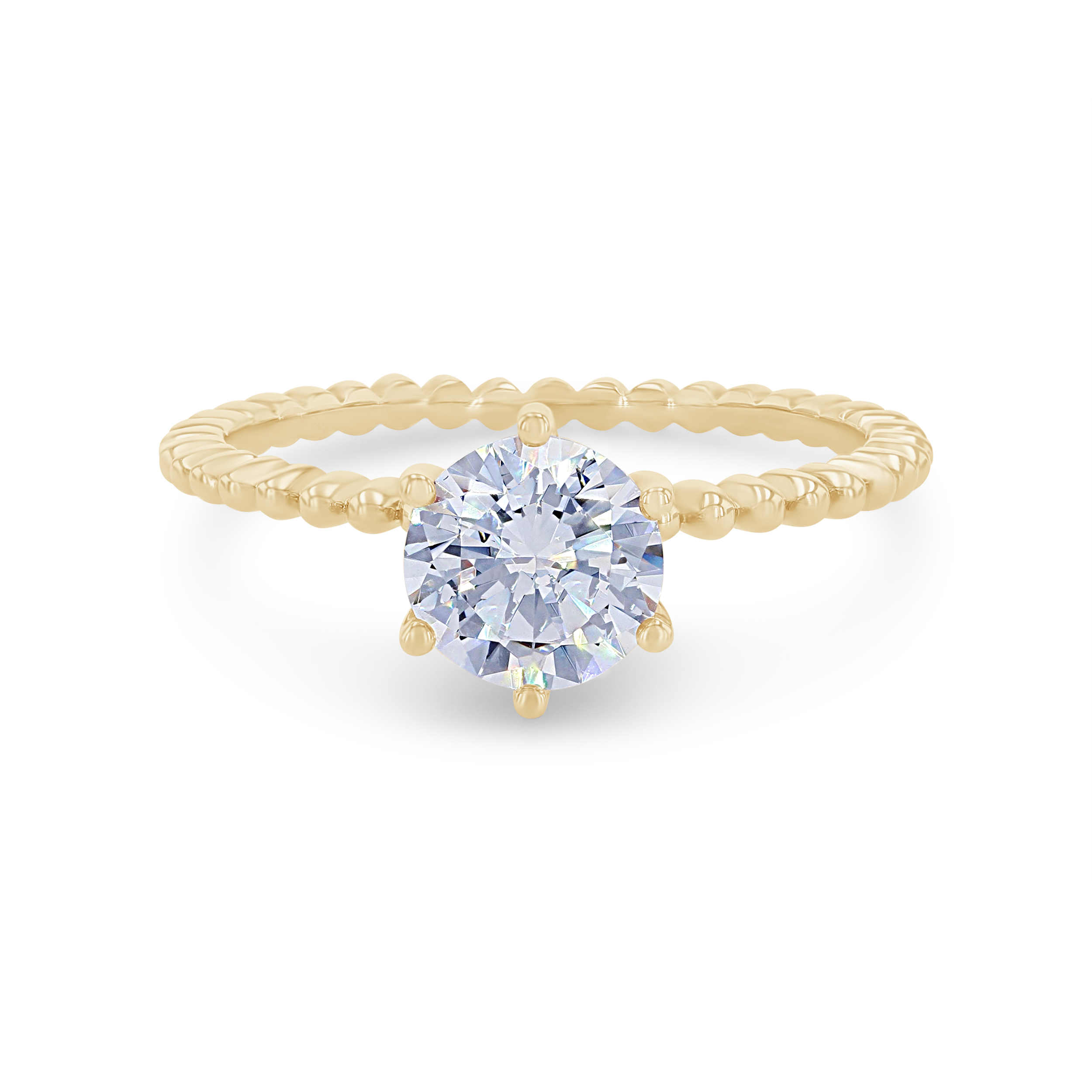 Product Description A delicate beaded shank creates this lovely solitaire setting, complete with a six-prong head. Other Details Type: Setting Disable Reason: None Mounting Type: Solitaire Metal Color: Yellow Gold Style: Contemporary Metal Color: Platinum Metal Color: White Gold Metal Color: Rose Gold