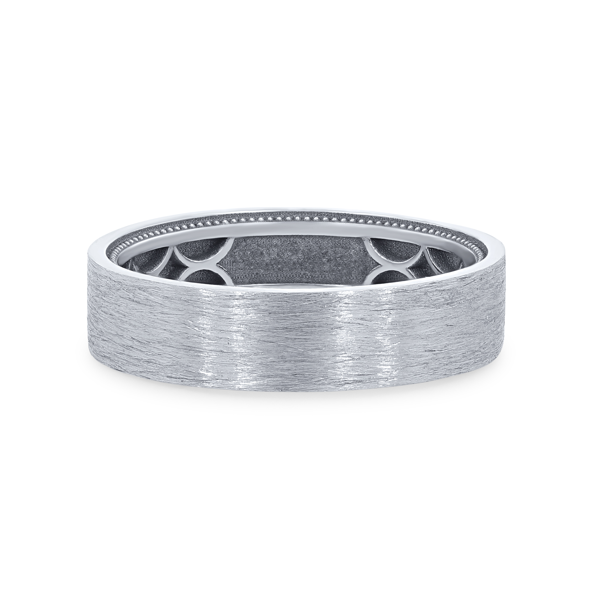 Product Description A sleek and modern design, this wedding band by Tacori features a matte finish and measures 5.5 millimeters wide. Hidden on the profile are 0.01 carats of round brilliant cut diamonds. Other Details Metal Color: Rose Gold Millimeter Width: 5.5 mm Gents Wedding Band Style: Classic Men Wedding Band Type: Men's Plain Bands Disable Reason: None Total Setting Diamond Carat Weight: 0.01TW Metal Color: Yellow Gold Metal Color: Platinum Metal Color: White Gold Type: Gents Wedding Band