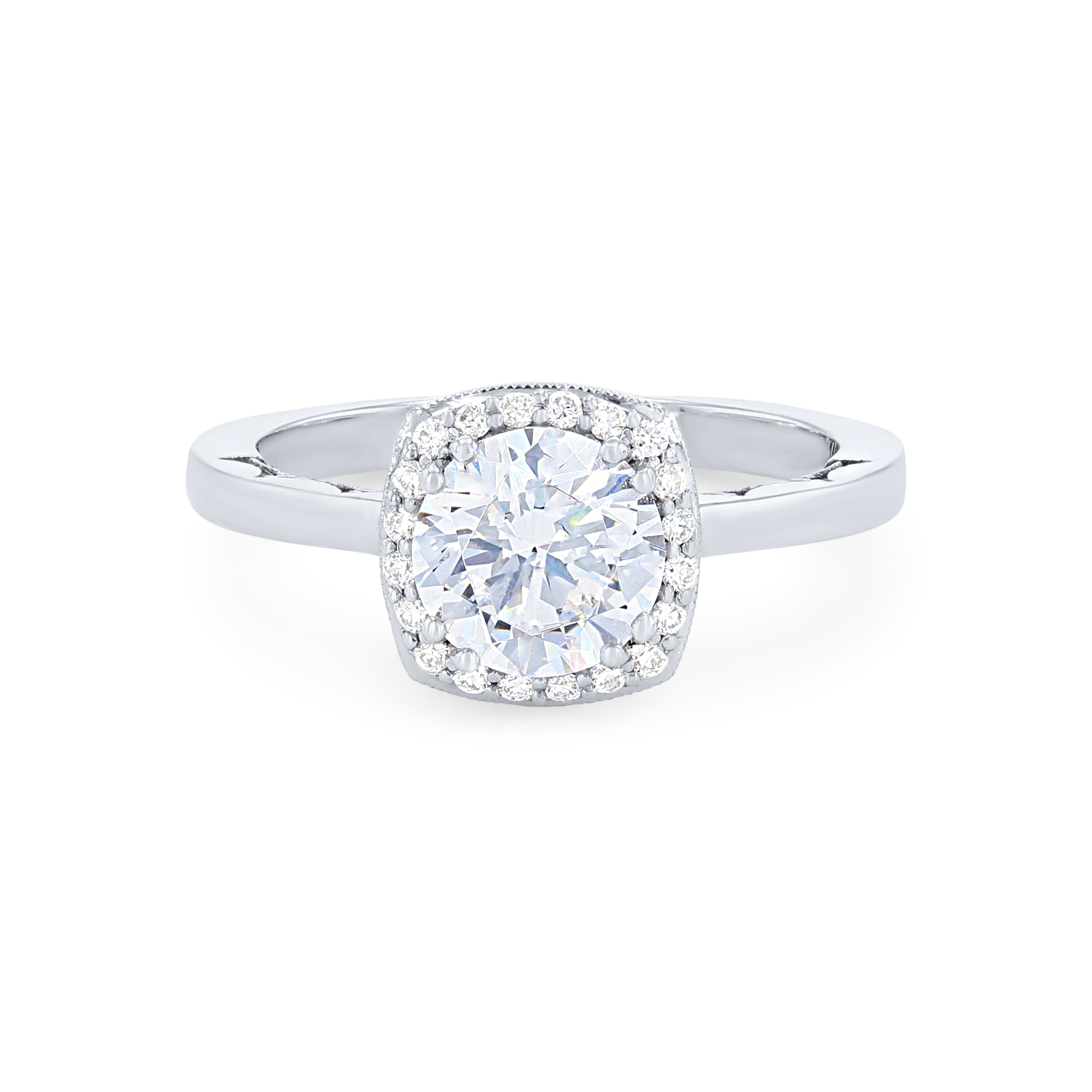 Product Description Add extra sparkle to any center stone with this beautiful cushion shaped halo engagement setting by Tacori, accented with 0.18 carats of round brilliant cut diamonds. Other Details Total Setting Diamond Carat Weight: 0.18TW Disable Reason: None Metal Color: Yellow Gold Metal Color: Platinum Type: Setting Gemstone Type: Diamond Metal Color: Rose Gold Metal Color: White Gold Mounting Type: Halo Style: Classic