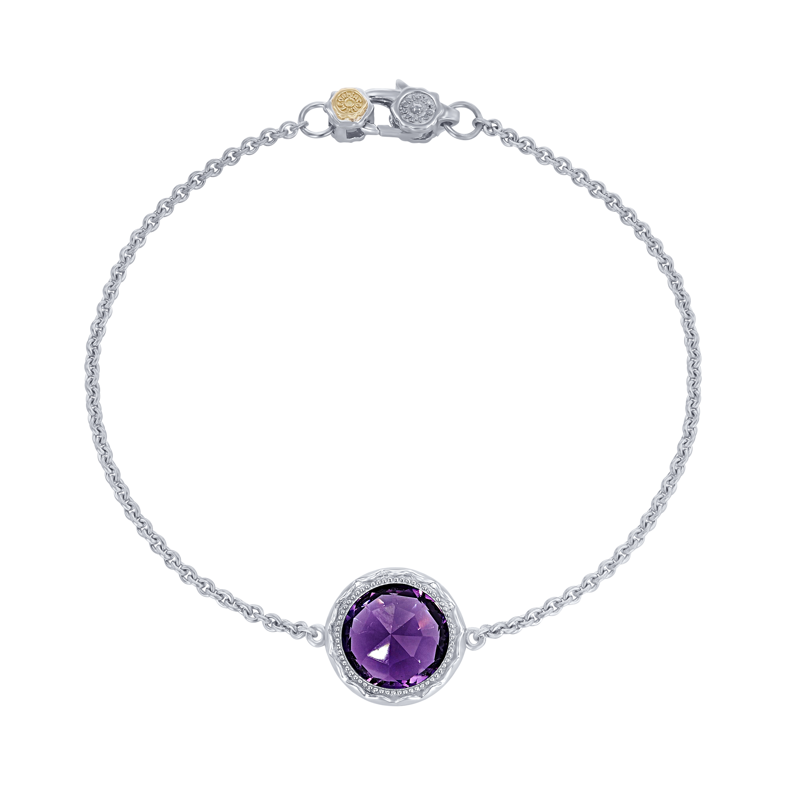 Product Description This delicate sterling silver and 18 karat gold accent bracelet from Tacori features a beautiful ten millimeter purple amethyst. Other Details Gemstone Type: Amethyst Style: Contemporary Bracelet Type: Gemstone Type: Bracelet Metal Color: Sterling Silver Disable Reason: None