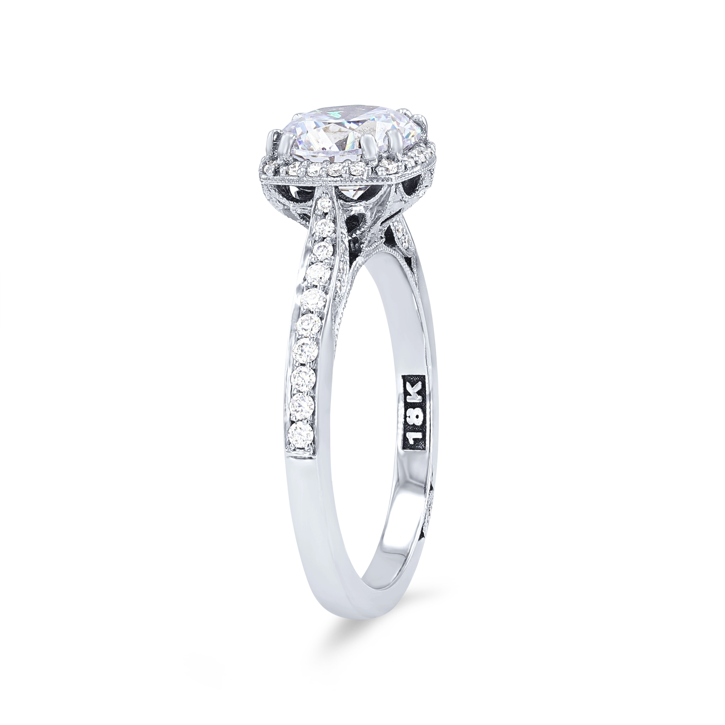 Product Description Crafted with beautiful milgrain detail this Tacori Dantela Collection engagement setting features round brilliant cut diamonds in a halo design and on the profiles. Other Details Metal Color: White Gold Type: Setting Metal Color: Rose Gold Style: Classic Metal Color: Platinum Mounting Type: Halo Disable Reason: None Metal Color: Yellow Gold Gemstone Type: Diamond