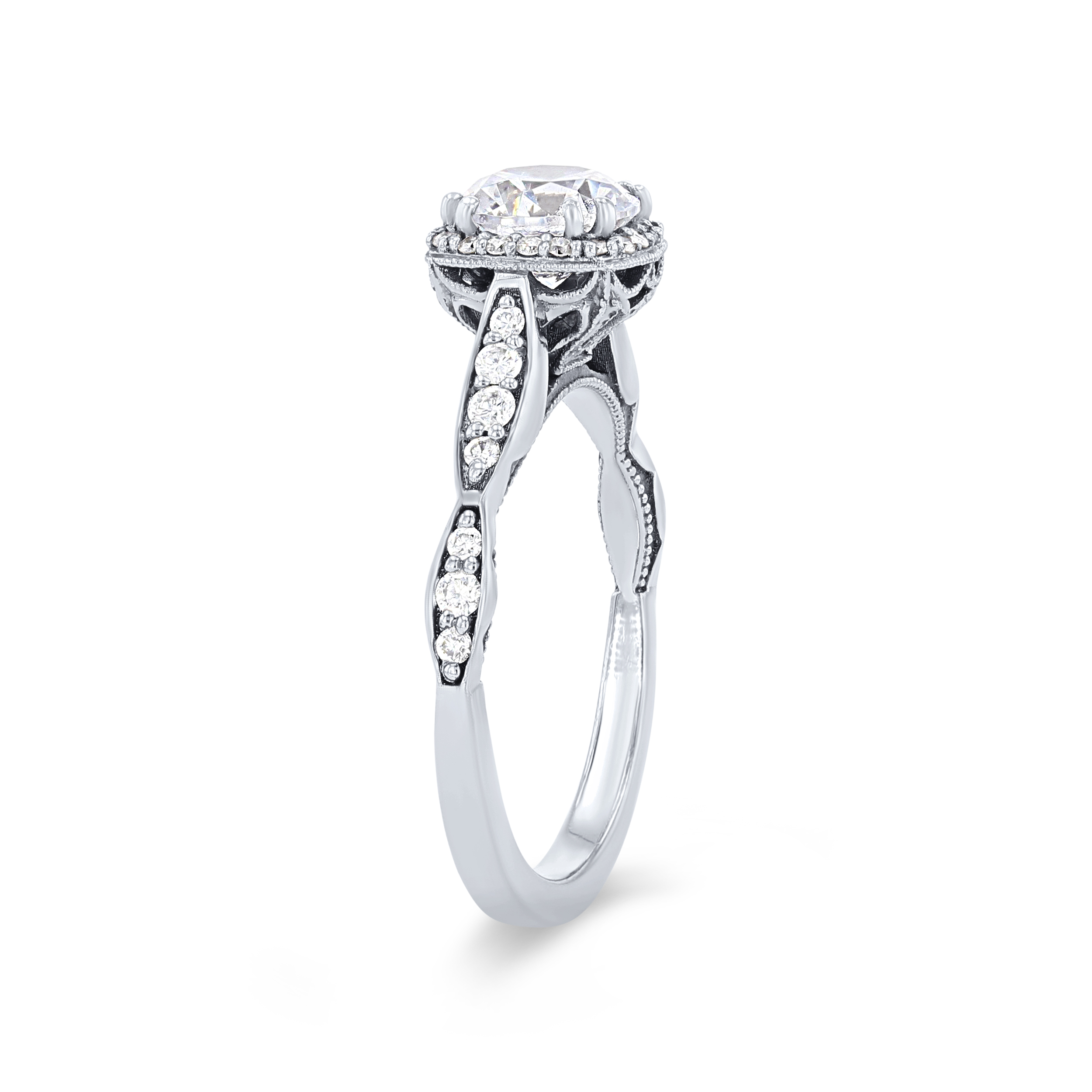 Product Description This Tacori Dantela engagement setting features a scalloped design with a halo, accented by 0.25 carats of round brilliant cut diamonds. Other Details Metal Color: Yellow Gold Metal Color: Rose Gold Type: Setting Metal Color: White Gold Gemstone Type: Diamond Disable Reason: None Total Setting Diamond Carat Weight: 0.25TW Style: Vintage Metal Color: Platinum Mounting Type: Halo