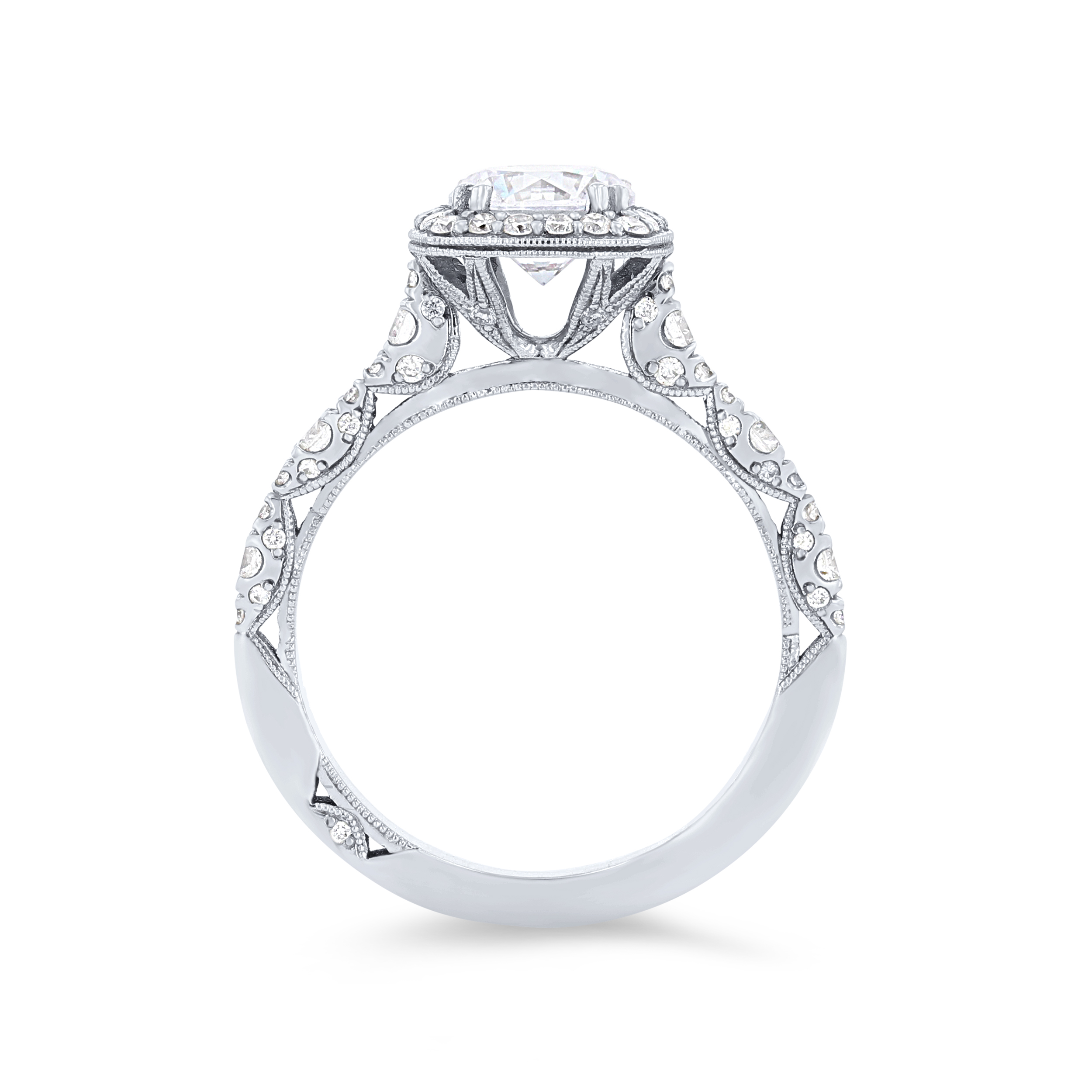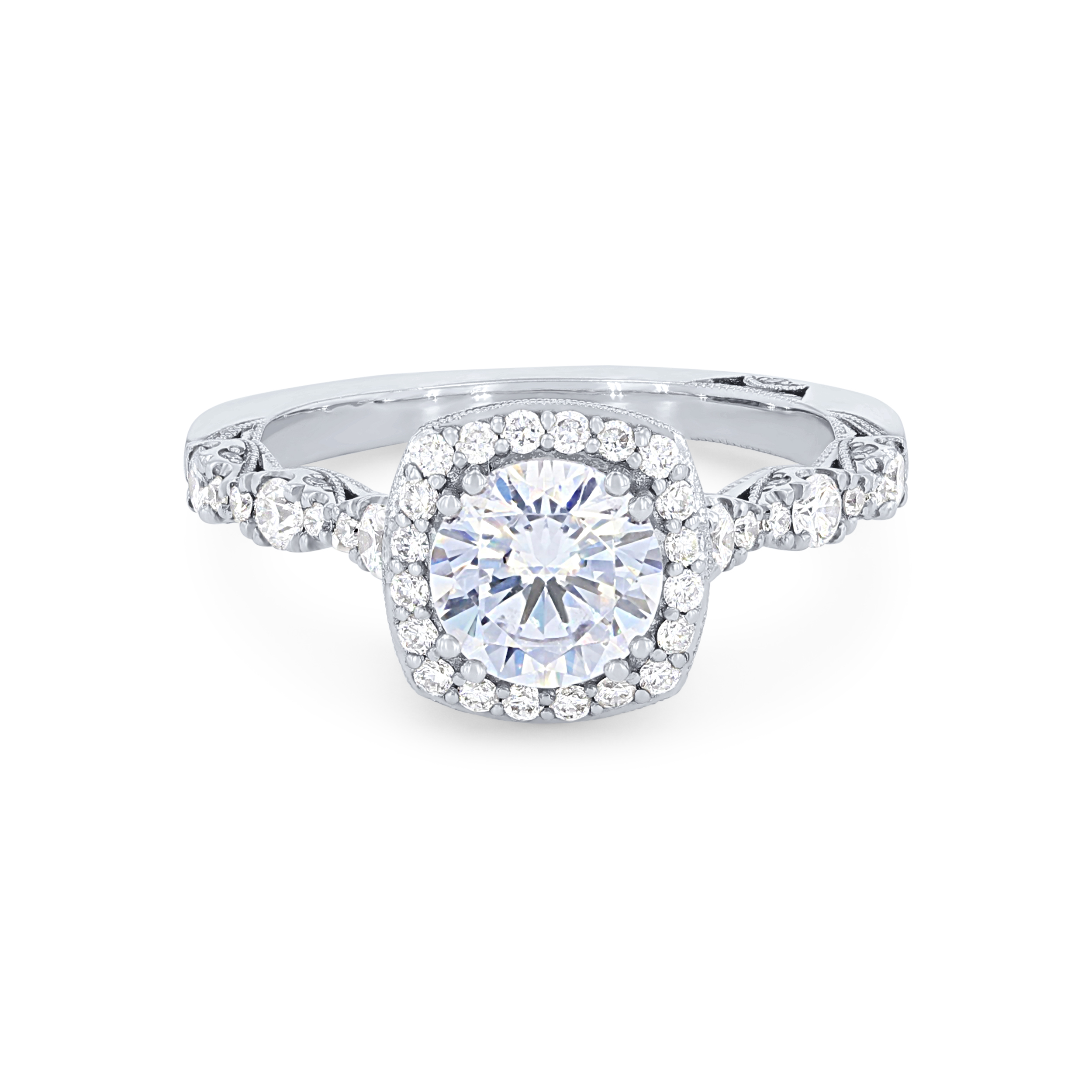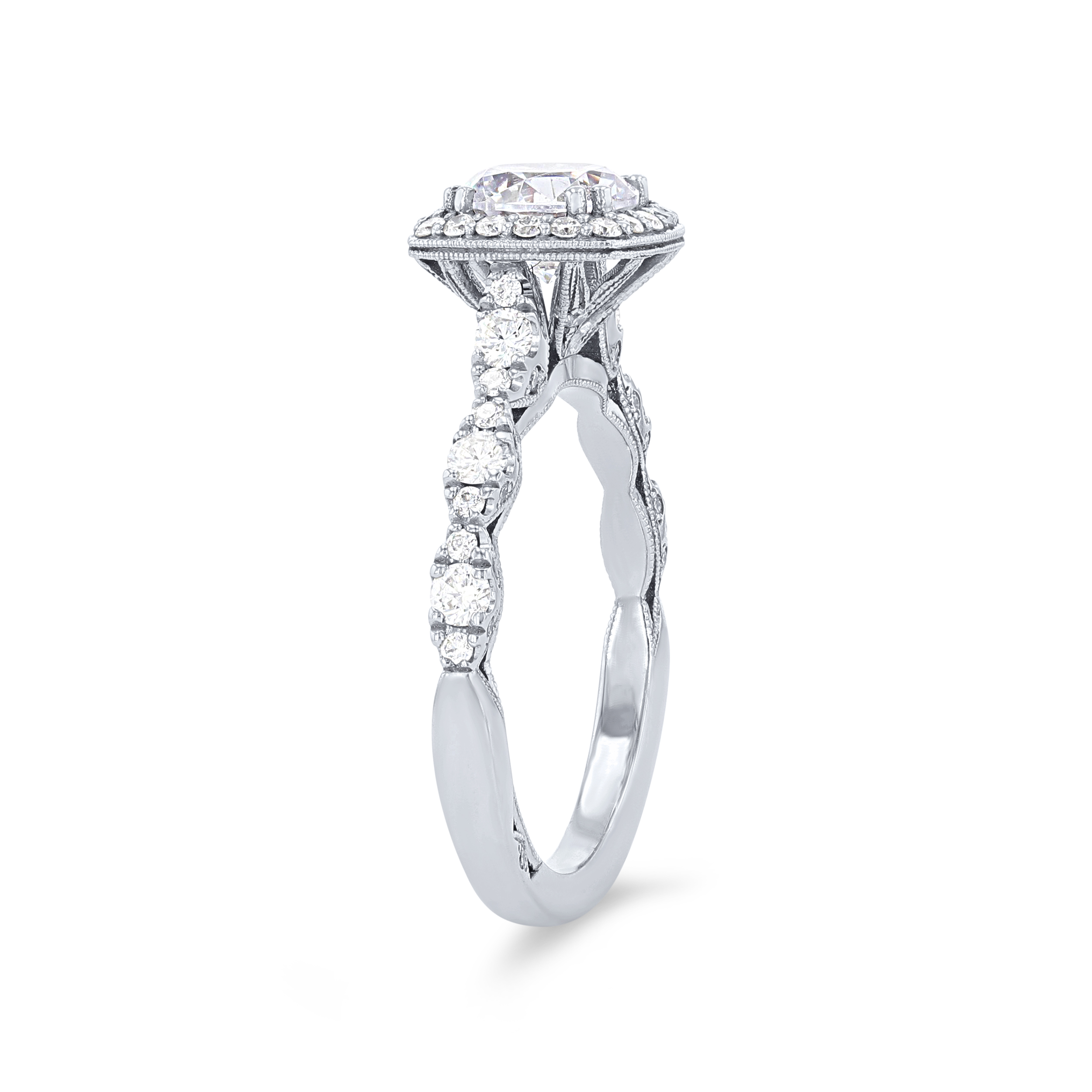 Product Description Romantic scalloped detail featuring 0.55 carats of round brilliant cut diamonds alternating in size creates a stunning Tacori engagement setting. Other Details Style: Contemporary Total Setting Diamond Carat Weight: 0.55TW Metal Color: White Gold Disable Reason: None Gemstone Type: Diamond Metal Color: Platinum Type: Setting Mounting Type: Halo Metal Color: Rose Gold Metal Color: Yellow Gold