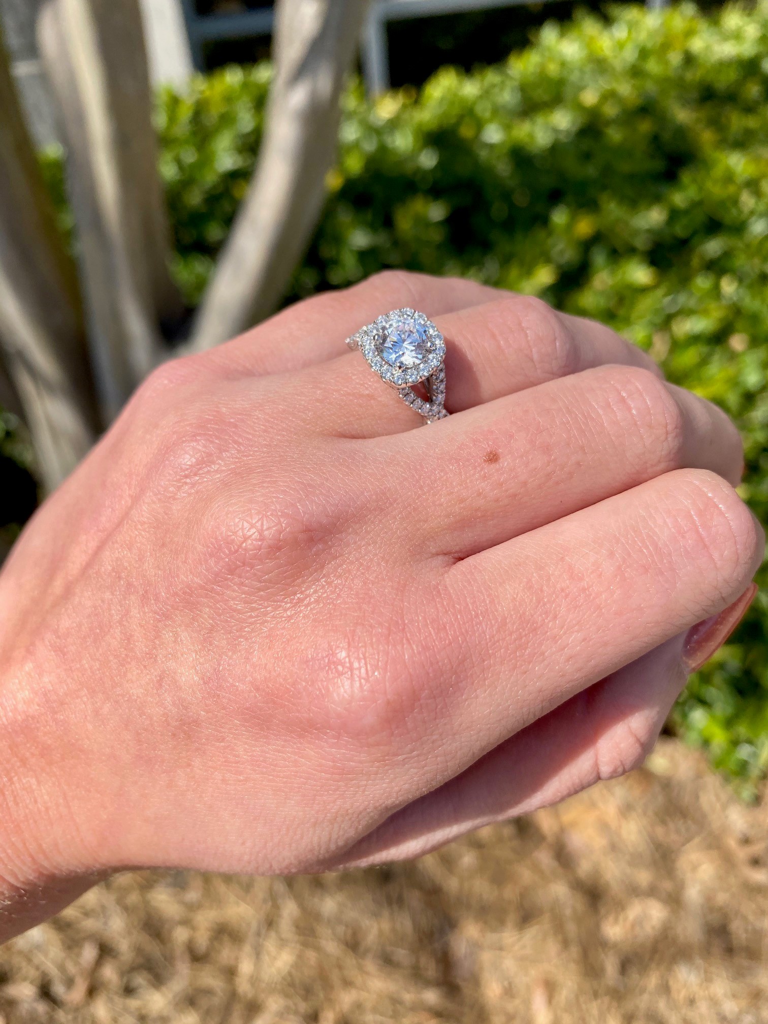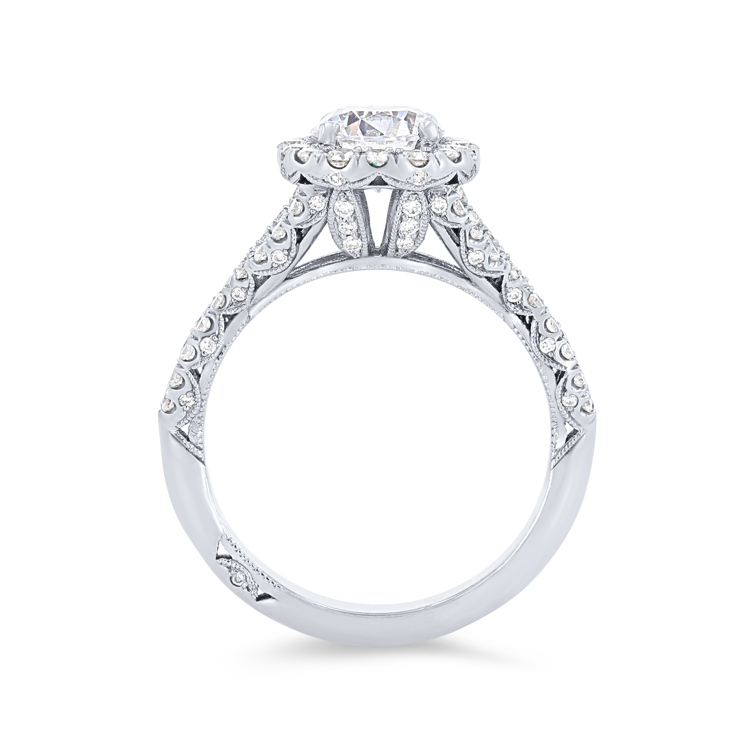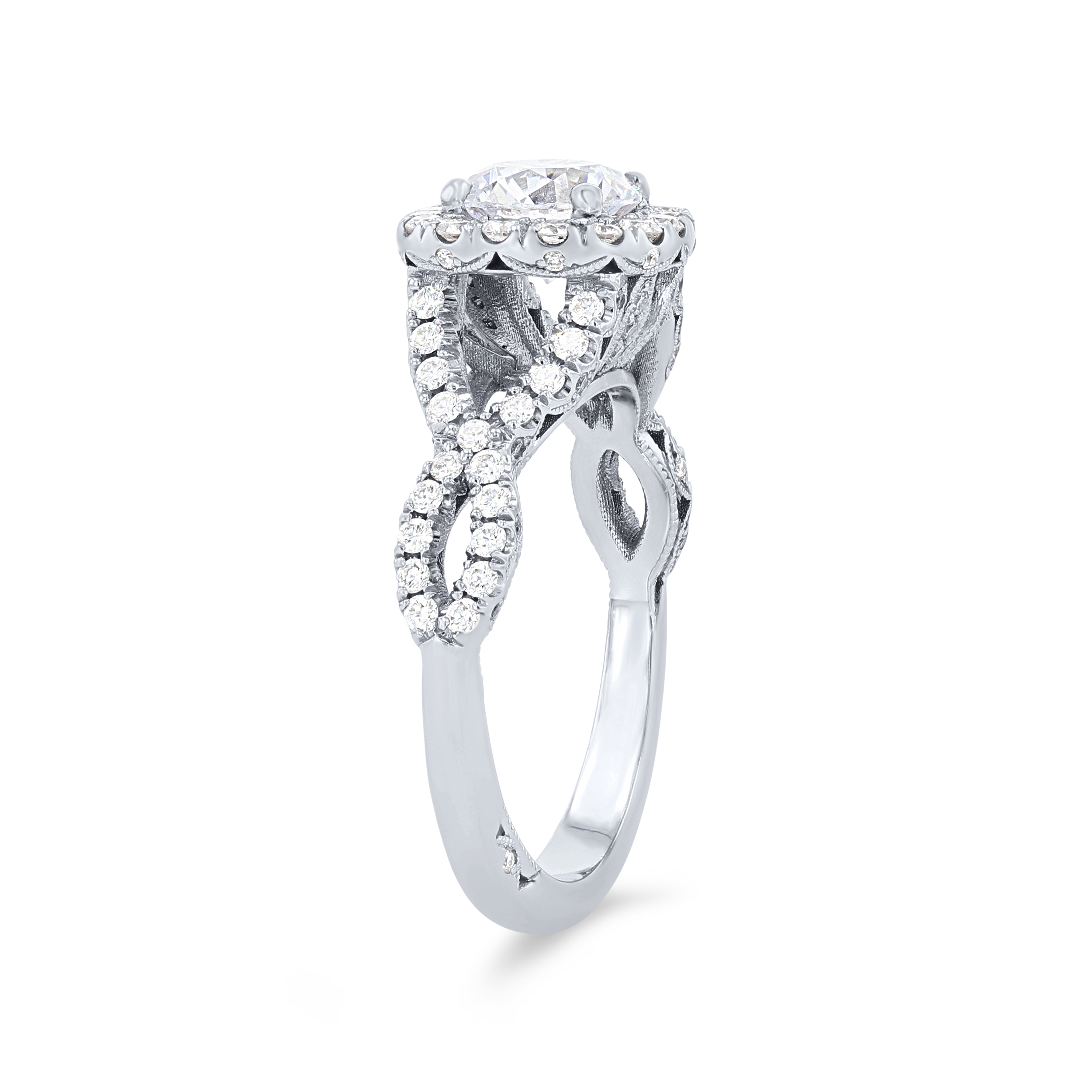 Product Description With a twisting ribbon pattern, this cushion shaped halo Tacori Petite Crescent engagement setting features 0.71 carats of round brilliant cut diamonds. Other Details Mounting Type: Halo Metal Color: Platinum Style: Contemporary Gemstone Type: Diamond Total Setting Diamond Carat Weight: 0.71TW Metal Color: Rose Gold Metal Color: White Gold Disable Reason: None Average clarity range: VS Type: Setting Average color range: G Metal Color: Yellow Gold