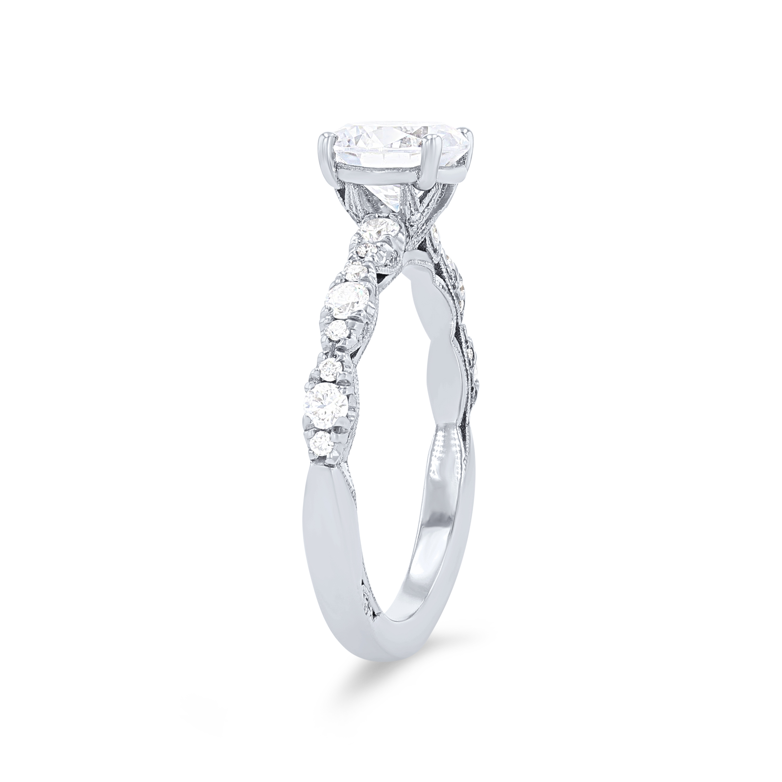 Product Description This gorgeous Tacori Petite Crescent engagement setting showcases 0.35 carats of round brilliant cut diamonds with graduating scalloped detail. Other Details Metal Color: White Gold Total Setting Diamond Carat Weight: 0.35TW Metal Color: Rose Gold Metal Color: Platinum Type: Setting Metal Color: Yellow Gold Disable Reason: None Gemstone Type: Diamond Style: Contemporary Mounting Type: Diamond Accented