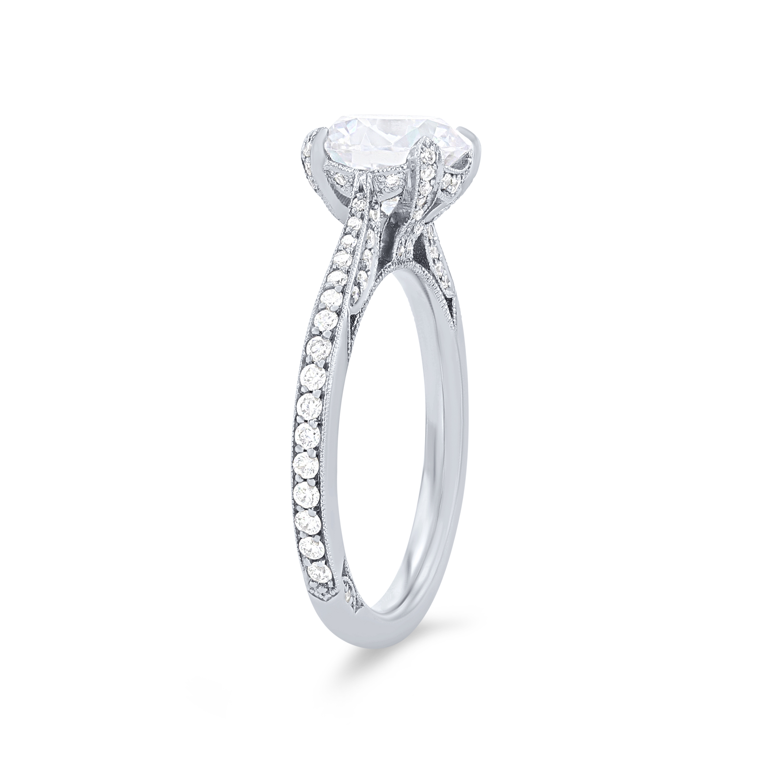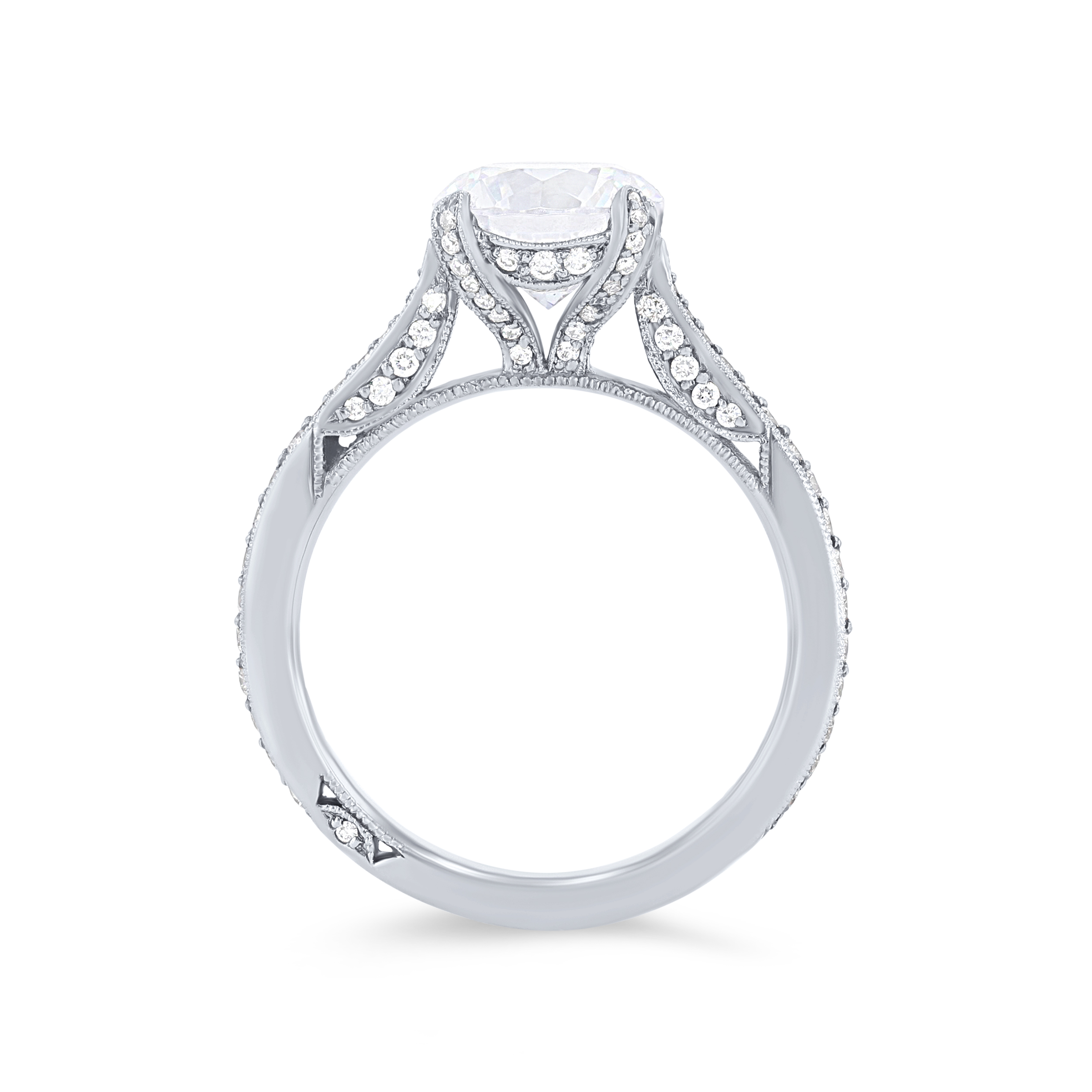Product Description Glamorous and full of sparkle this engagement setting by Tacori features a hidden halo and three rows of pave set round brilliant cut diamonds totaling 0.56 carats. Other Details Disable Reason: None Gemstone Type: Diamond Metal Color: Rose Gold Total Setting Diamond Carat Weight: 0.56TW Style: Classic Metal Color: Platinum Mounting Type: Diamond Accented Type: Setting Metal Color: Yellow Gold