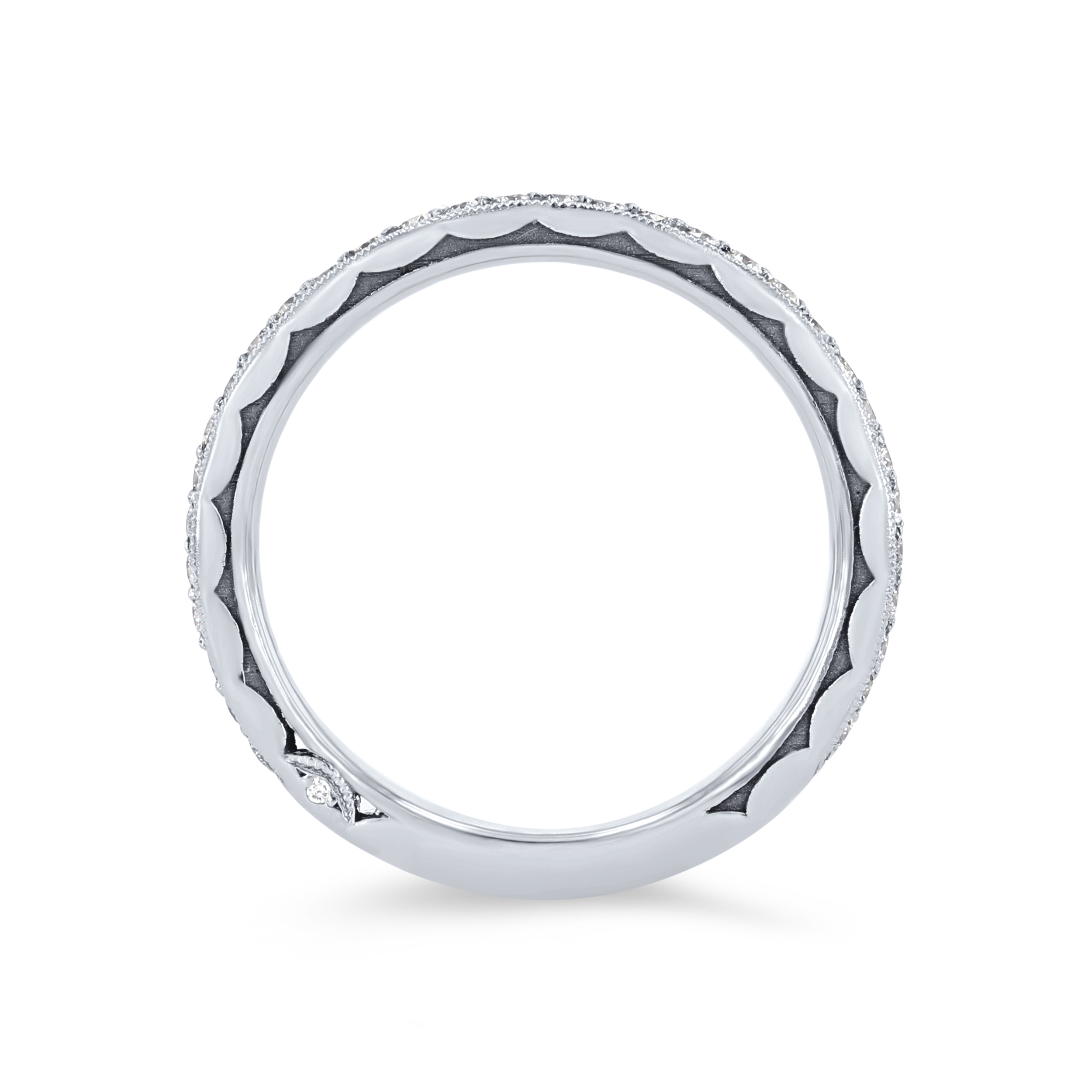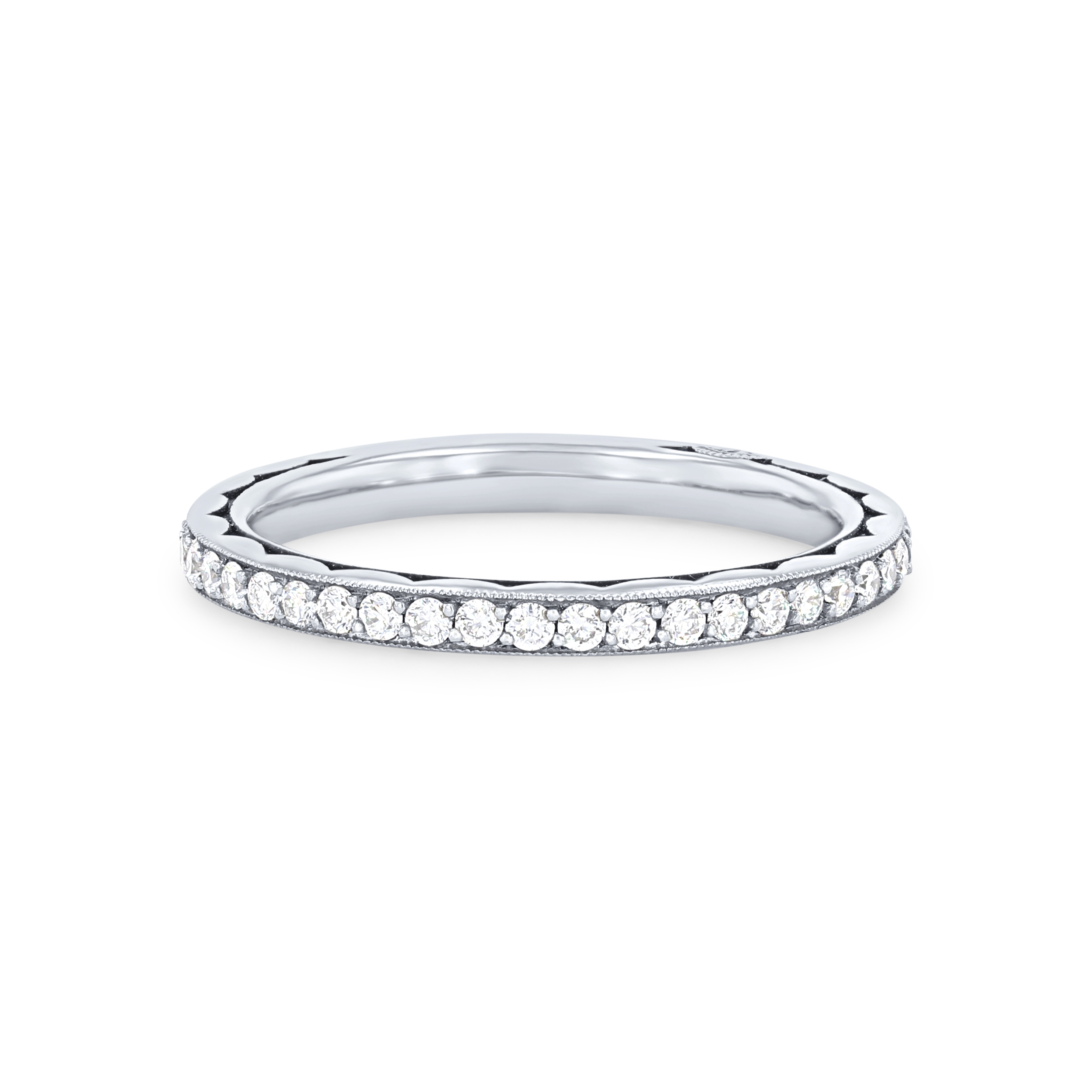 Product Description The intricate milgrain detailing in this Tacori RoyalT wedding band accentuates the 0.34 carats of round brilliant cut diamonds extending three-quarters of the way around. Other Details Gemstone Type: Diamond Metal Color: Yellow Gold Type: Ladies Wedding Band Disable Reason: None Total Setting Diamond Carat Weight: 0.34TW Metal Color: Rose Gold Wedding Band Type: Vintage Metal Color: Platinum