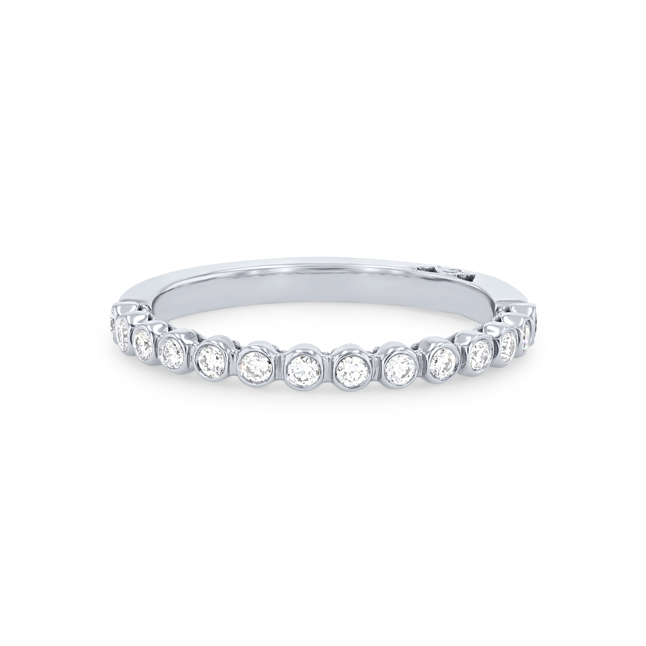 Add a modern look to any collection with this bezel wedding band by Tacori, featuring 0.20 carats of round brilliant cut diamonds.