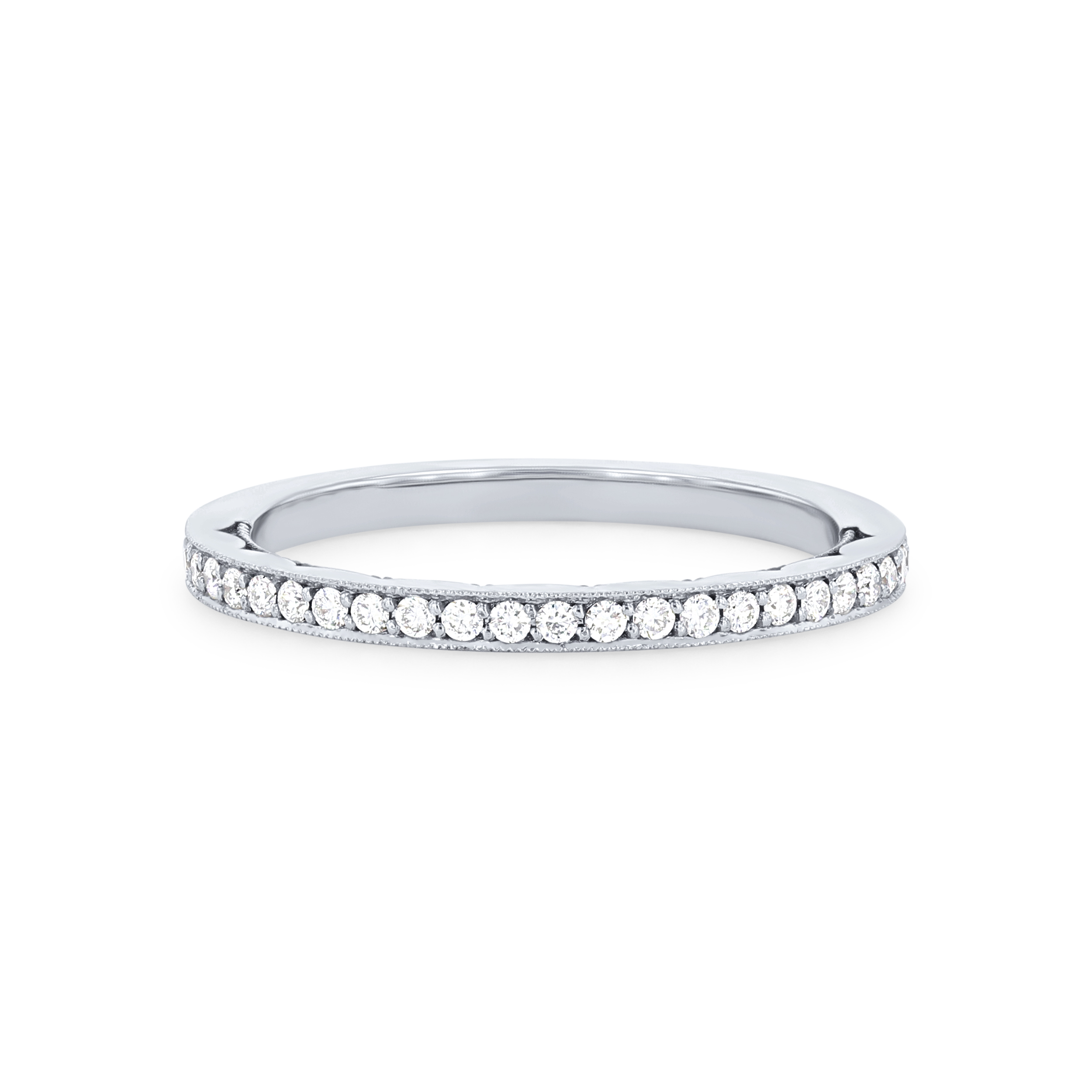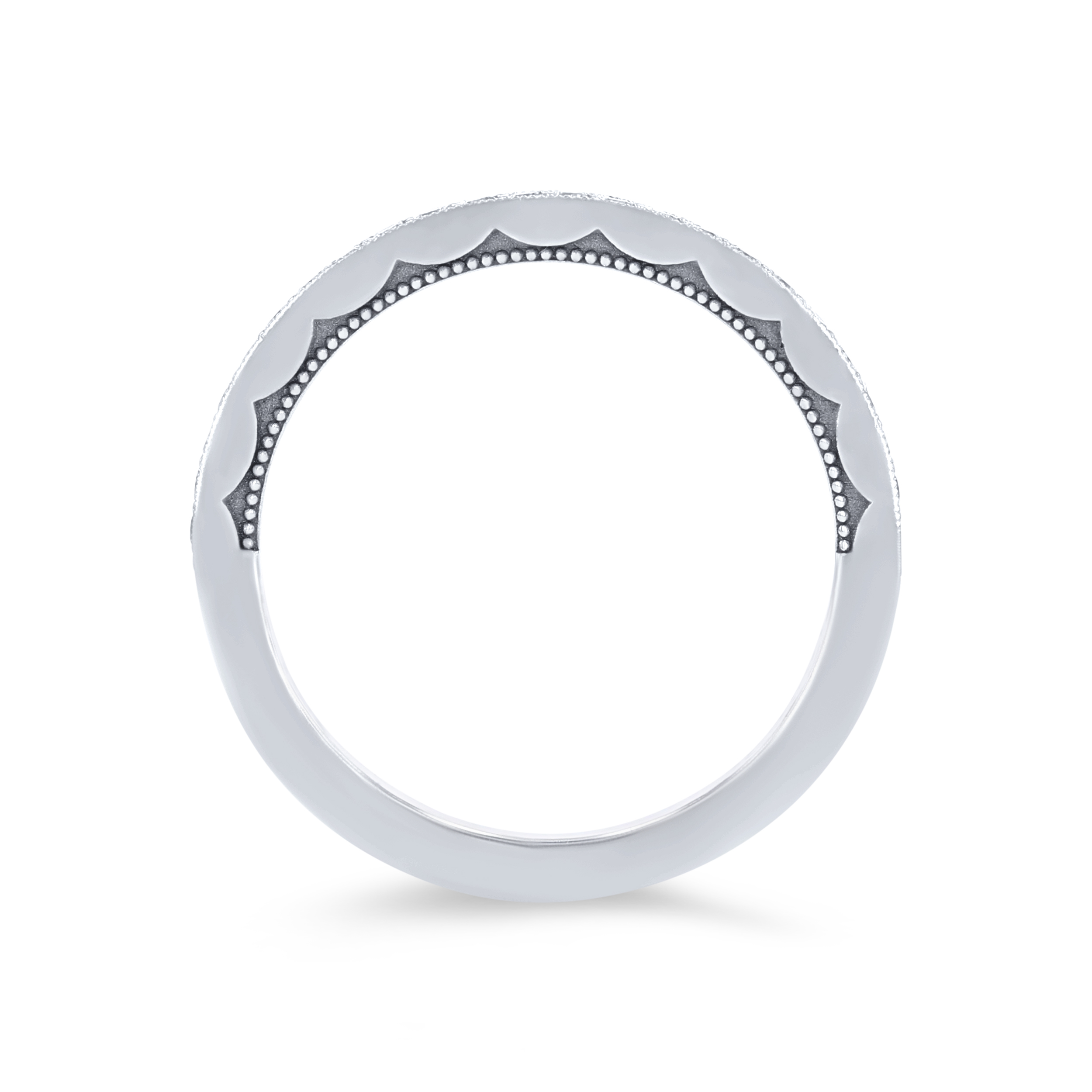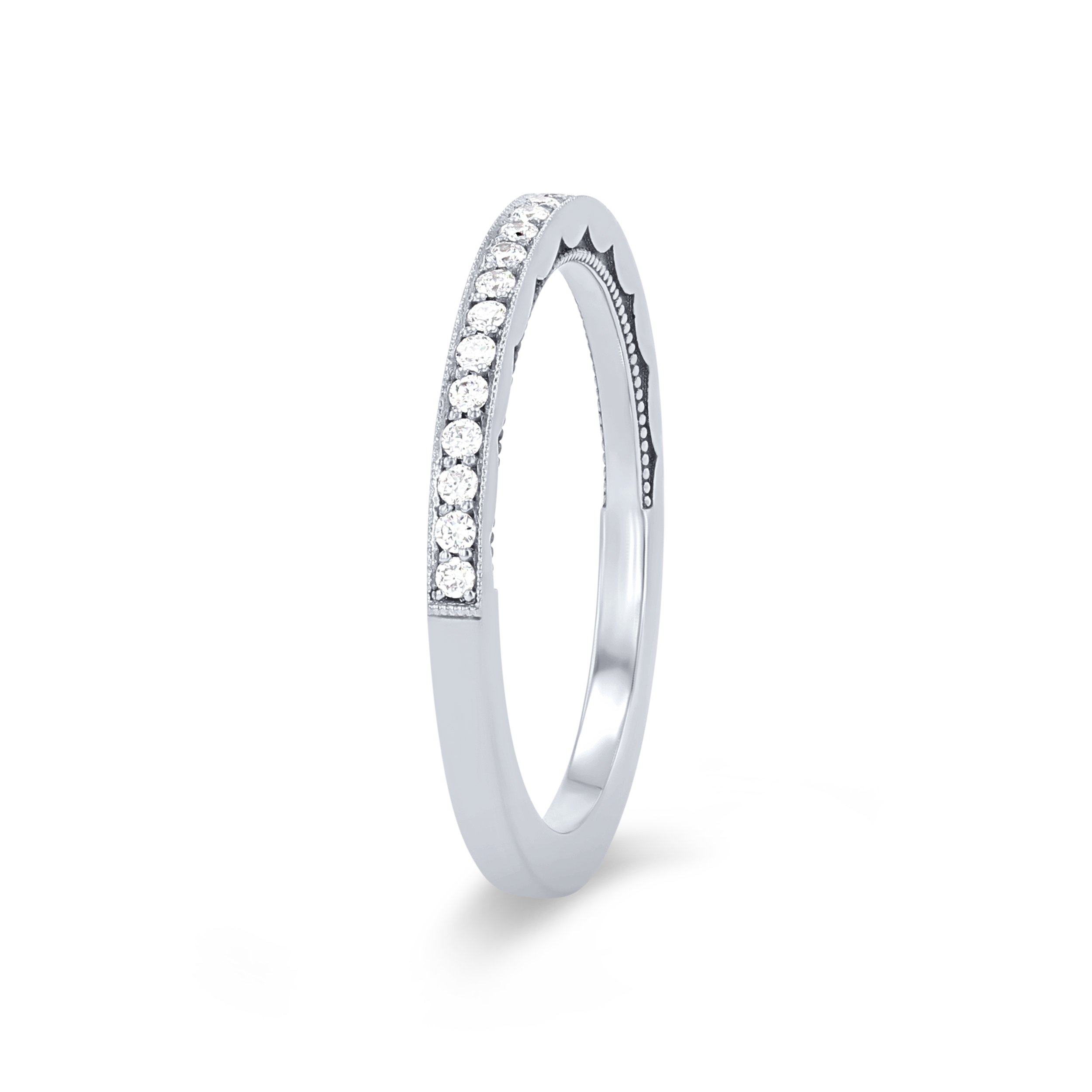 Beautiful detail encompasses this Tacori Sculpted Crescent wedding band, highlighting round brilliant cut diamonds that total 0.17 carats.