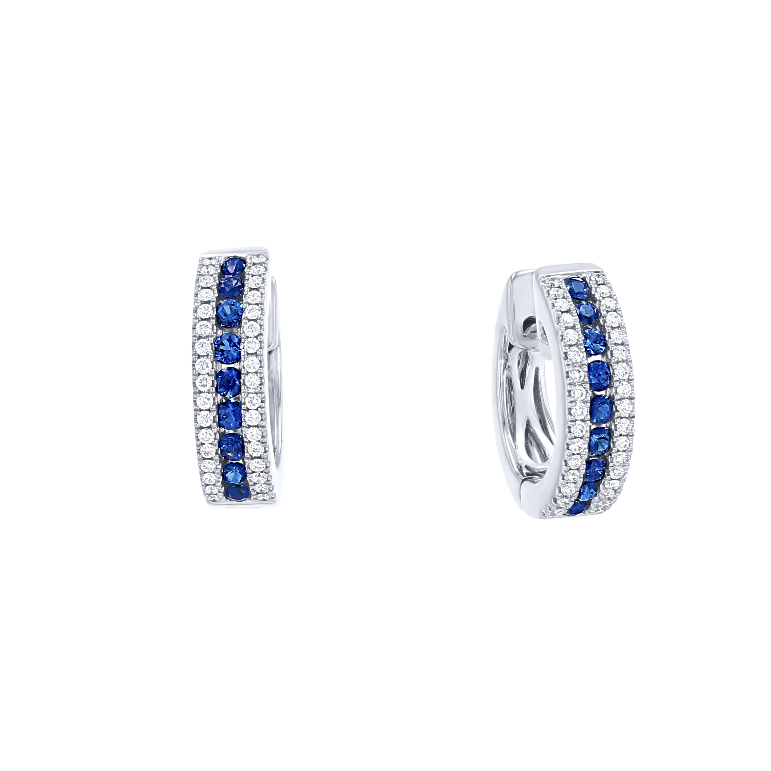 Product Description This sparkling pair of huggie-style hoop earrings features a center row of blue sapphires totaling 0.48 carats framed by round brilliant cut diamonds totaling 0.27 carats. Other Details Gemstone Type: Sapphire Women Wedding Band Type: Gemstone Diameter: Approx. 0.59 Inches Total Setting Diamond Carat Weight: 0.24TW Metal Color: White Gold Total Gemstone Carat Weight: 0.48TW Style: Contemporary Earring Type: Gemstones Type: Earrings Disable Reason: None