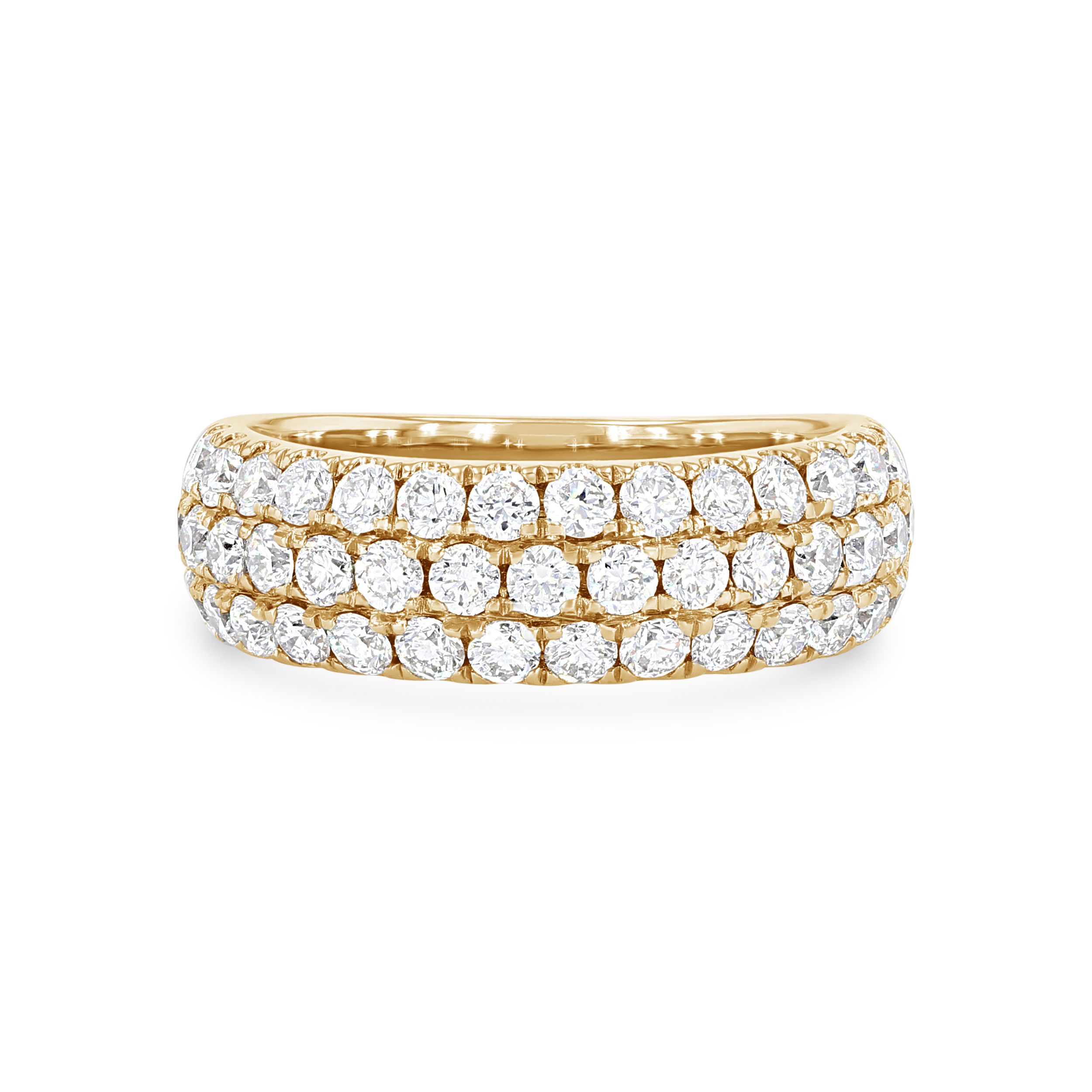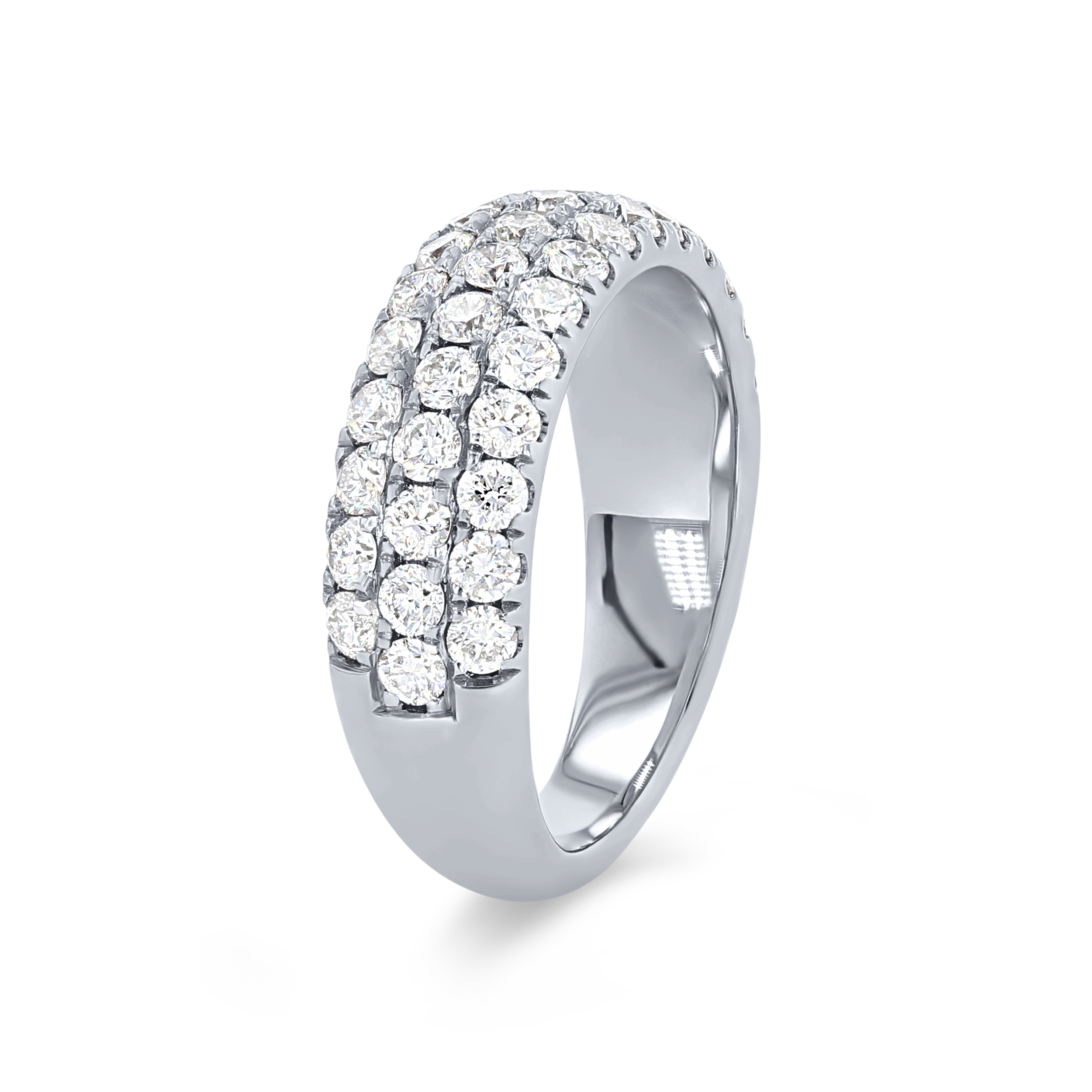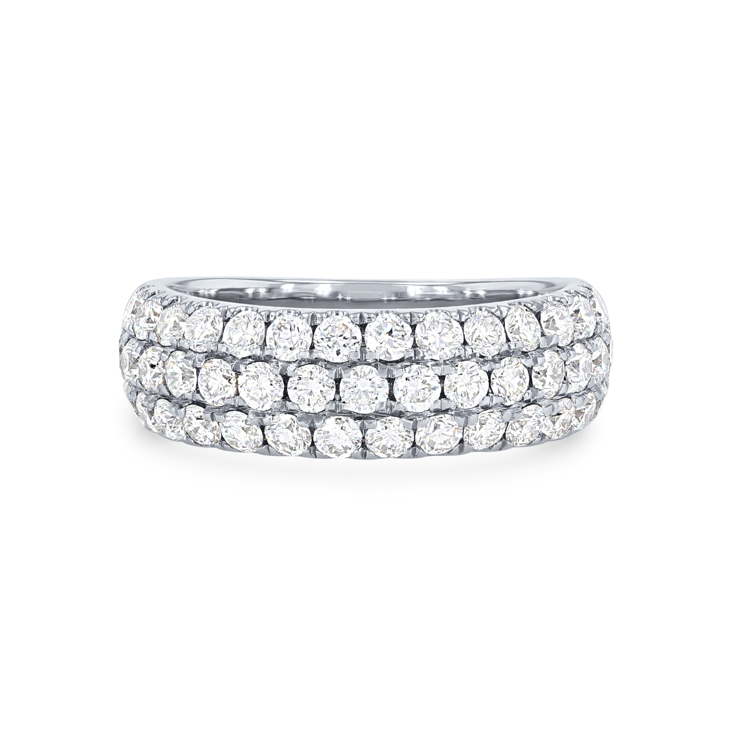 Product Description Wear the perfect amount of sparkle with this stunning fashion ring featuring three rows of round brilliant cut diamonds totaling 1.50 carats. Other Details Metal Color: Platinum Metal Color: White Gold Gemstone Type: Diamond Total Setting Diamond Carat Weight: 1.5TW Ring Type: Multi-row Type: Ring Average clarity range: I1 Metal Color: Rose Gold Average color range: J Metal Color: Yellow Gold Disable Reason: None Style: Classic
