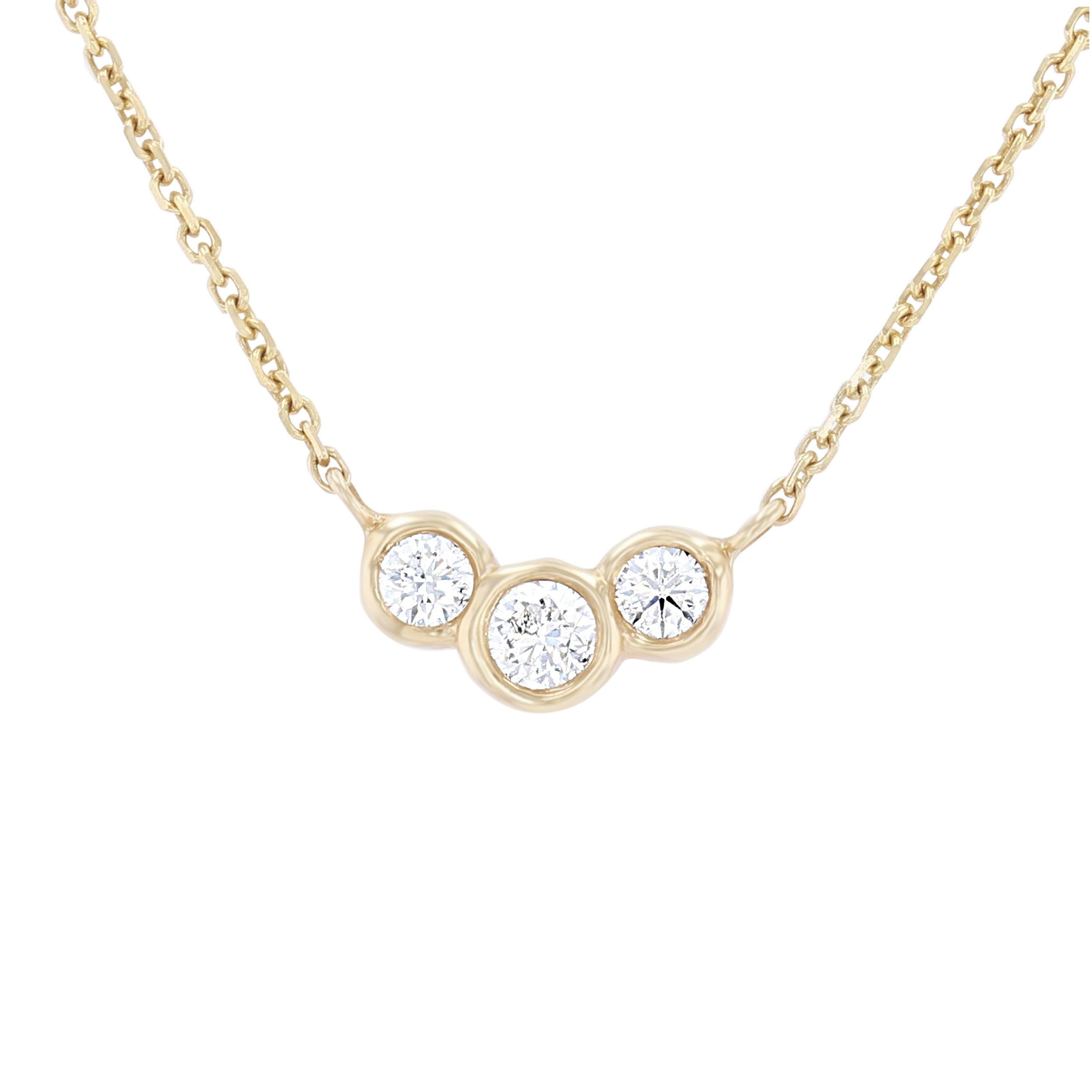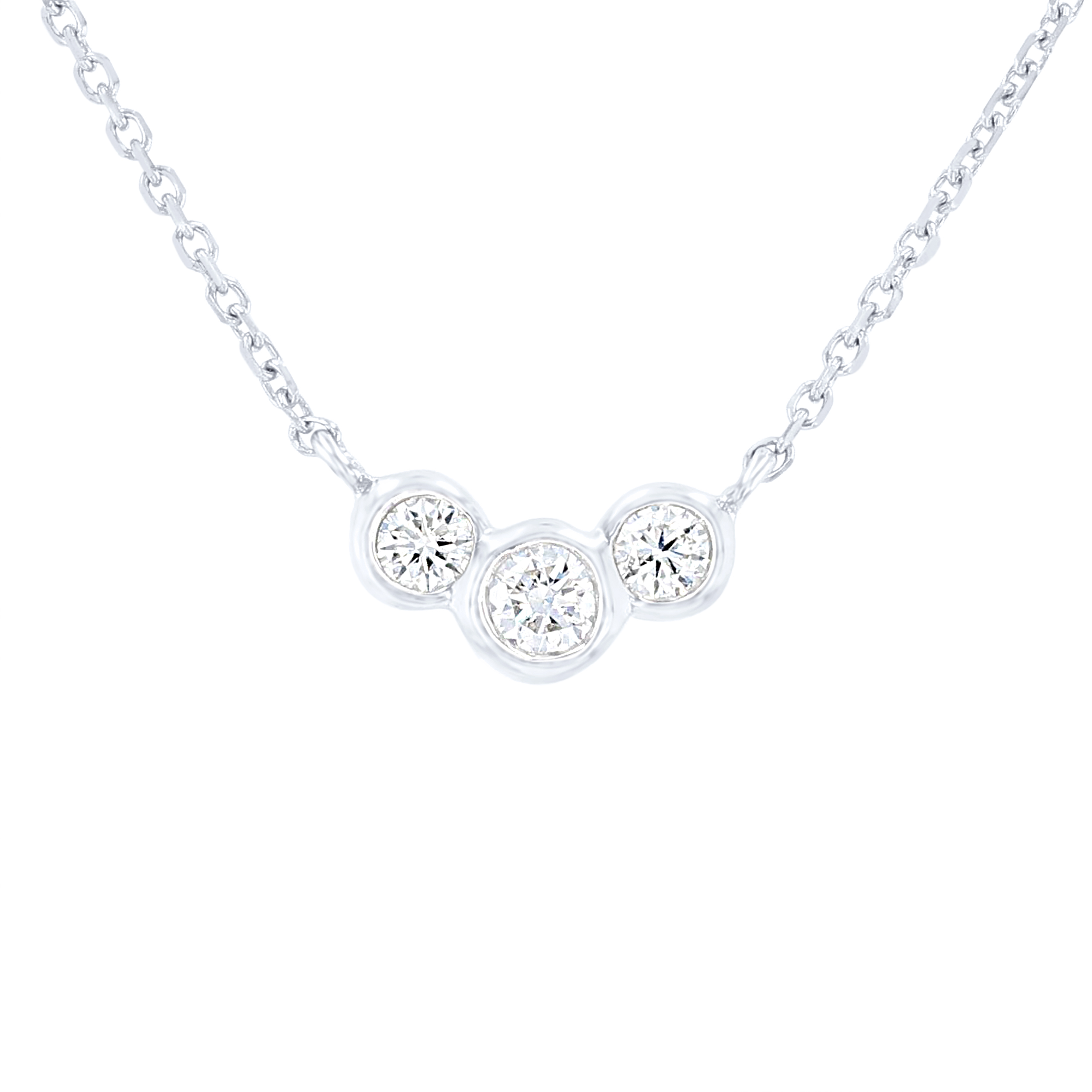 Represent past, present, and future with this bezel pendant featuring three round brilliant cut diamonds totaling 0.25 carats.
