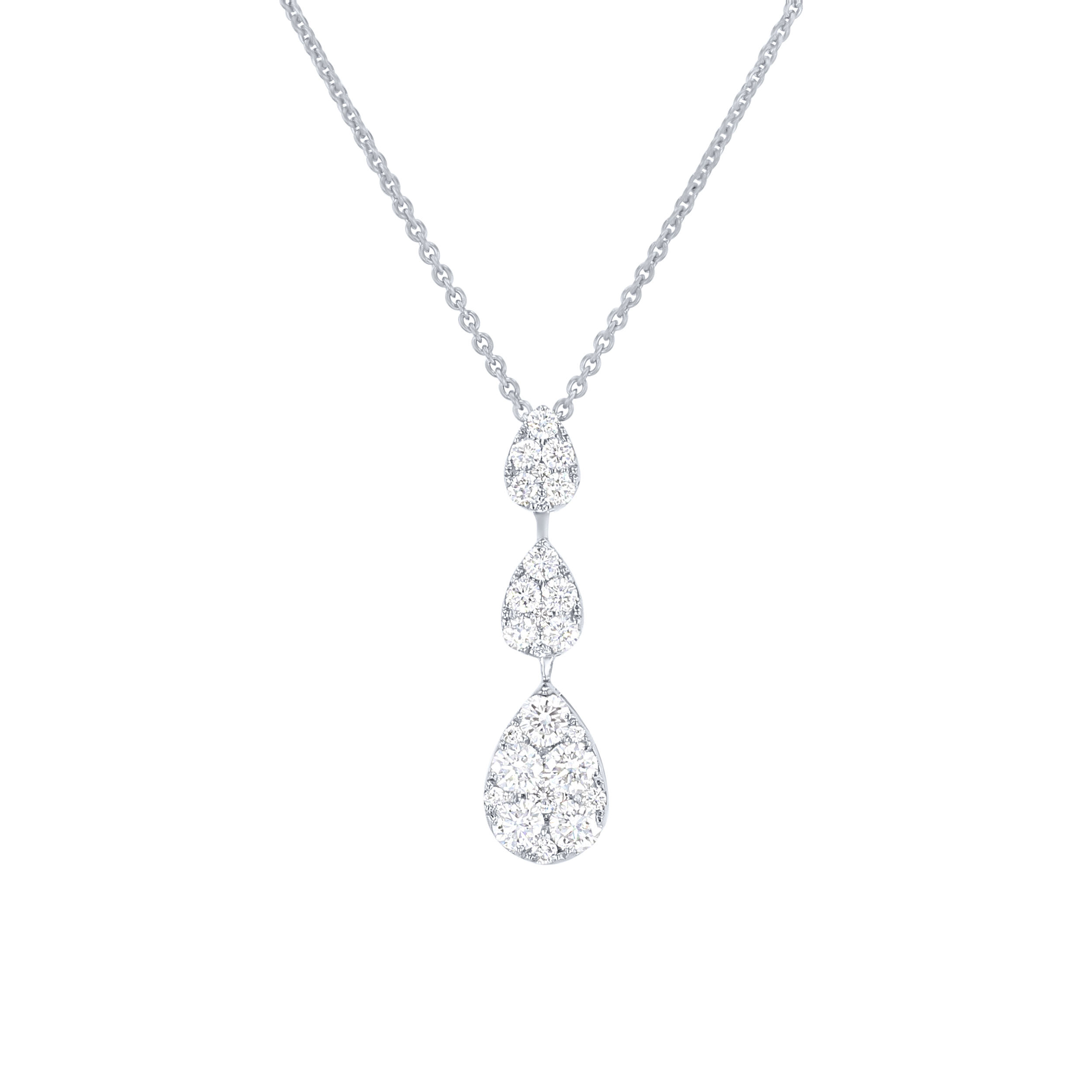 Product Description This pendant features three pear shape clusters of round brilliant cut diamonds all totaling 0.48 carats. Other Details Gemstone Type: Diamond Style: Contemporary Total Setting Diamond Carat Weight: 0.48TW Disable Reason: None Metal Color: White Gold Pendant Type: Y-Necklace Type: Necklace Necklace Type: Fashion