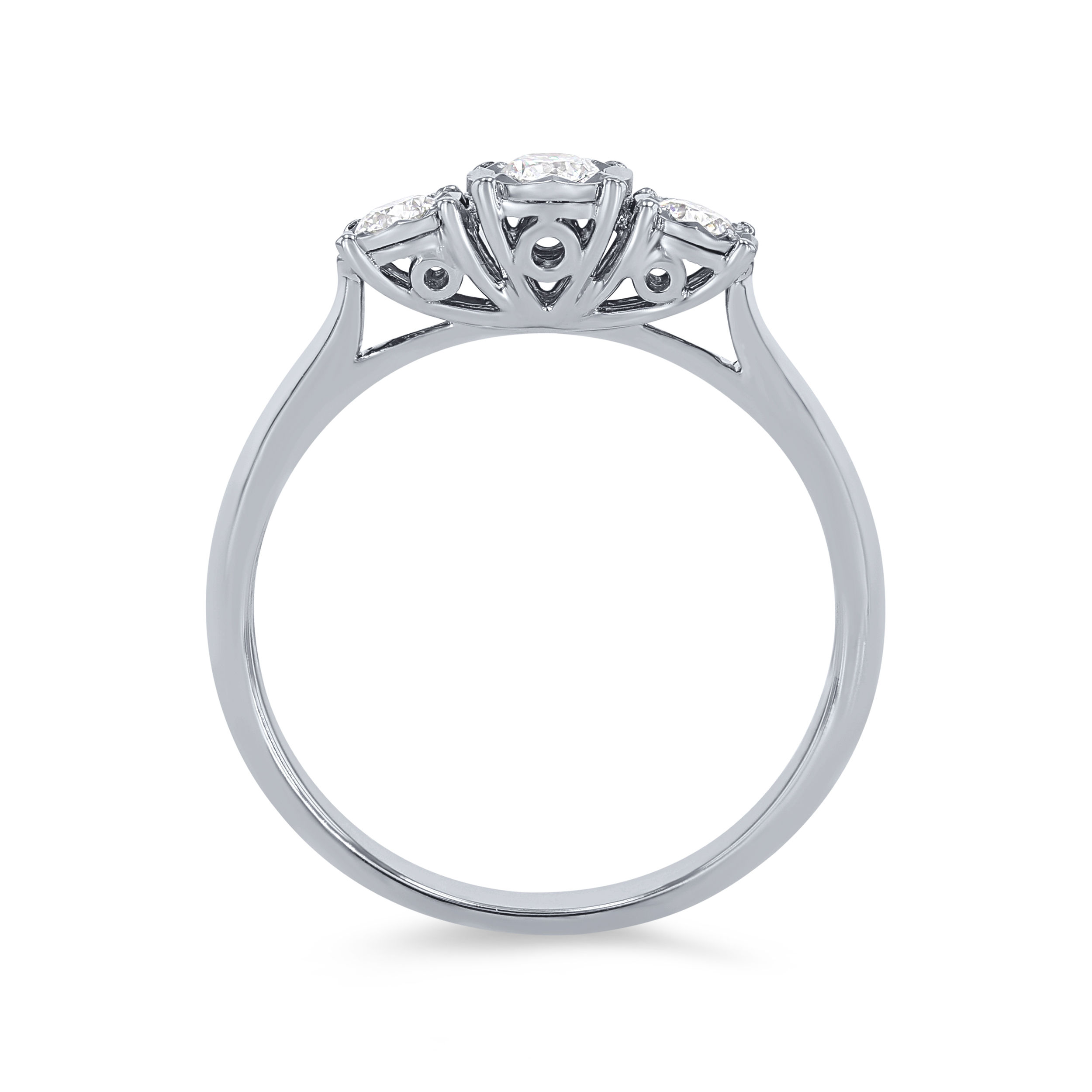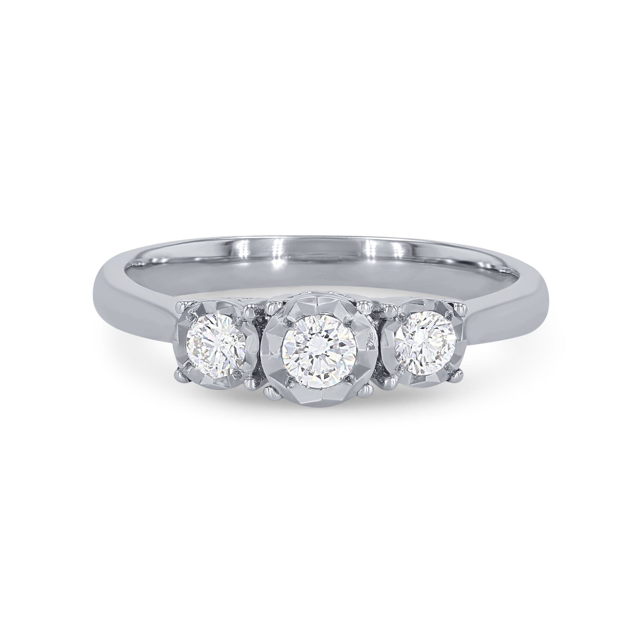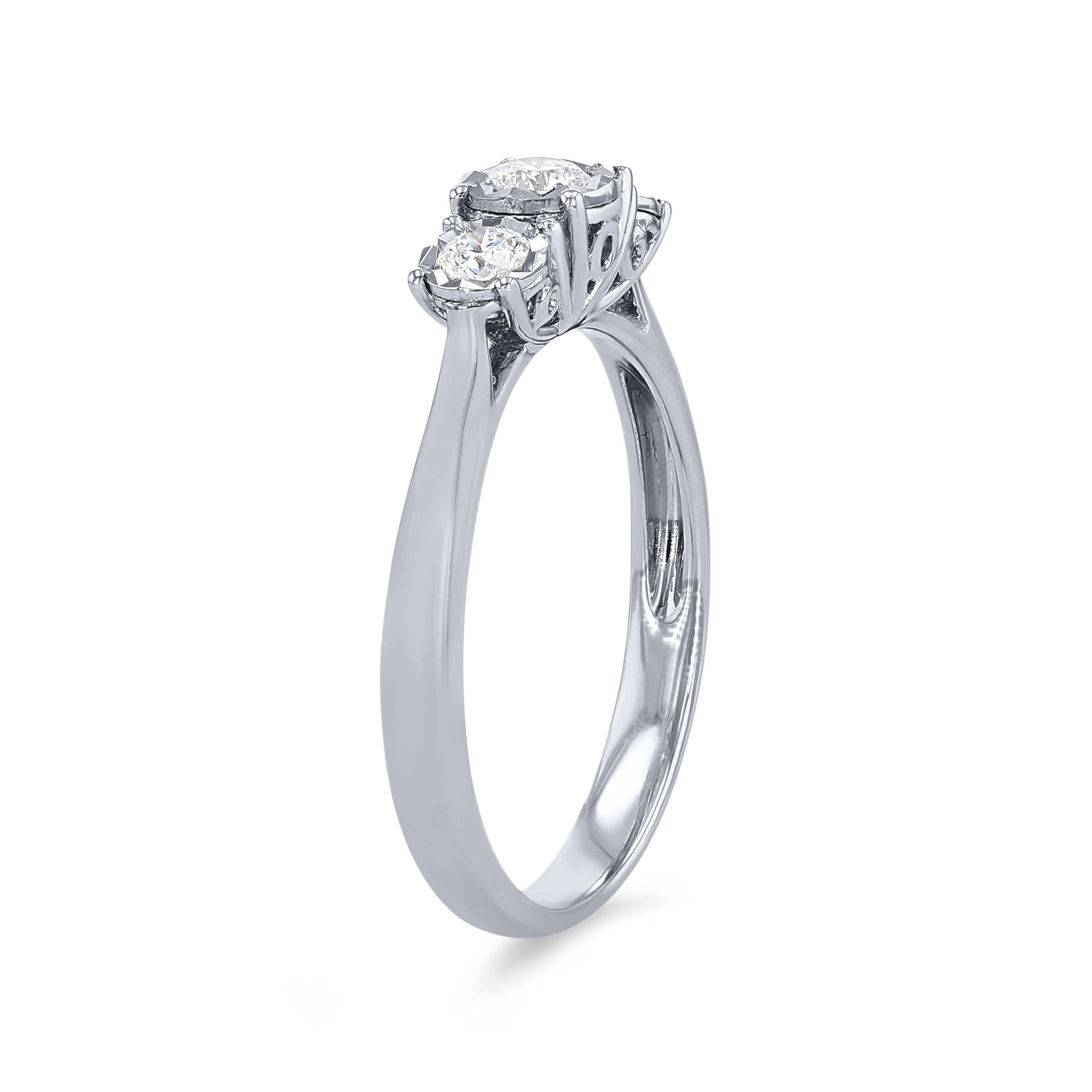 Product Description This three-stone ring features three round brilliant cut diamonds totaling 0.30 carats in an illusion setting. Other Details Metal Color: Platinum Metal Color: Yellow Gold Style: Contemporary Disable Reason: None Metal Color: White Gold Gemstone Type: Diamond Total Setting Diamond Carat Weight: 0.3TW Metal Color: Rose Gold Type: Ring Ring Type: Fashion