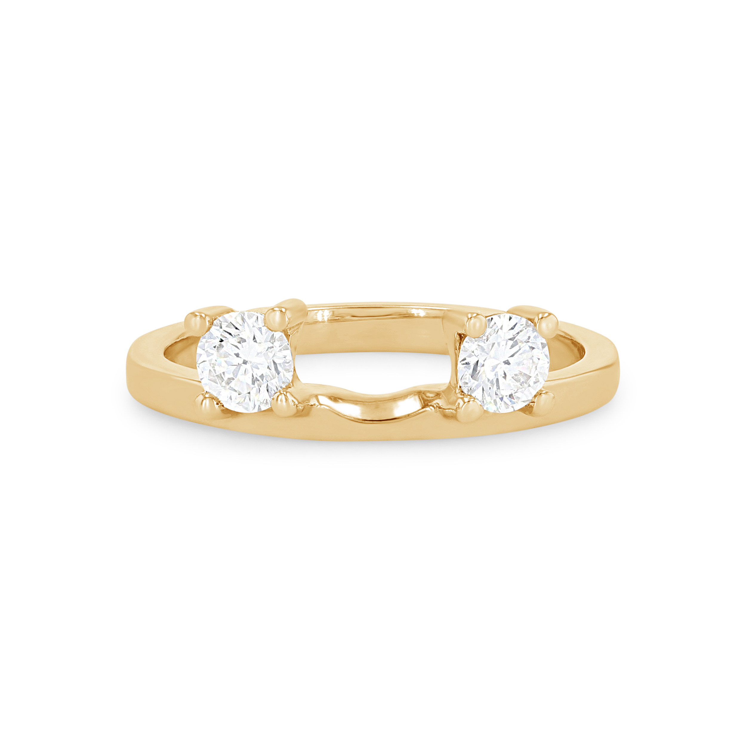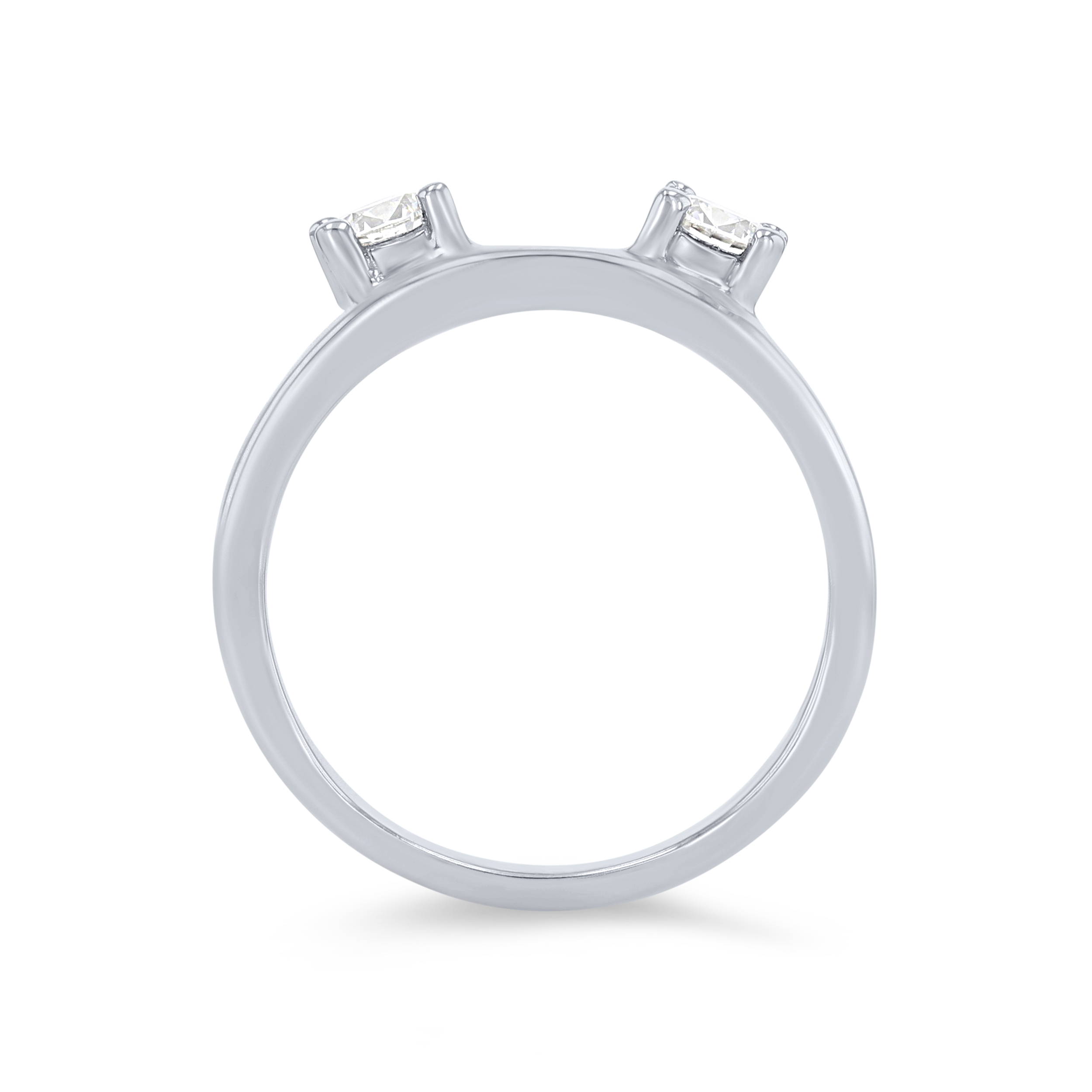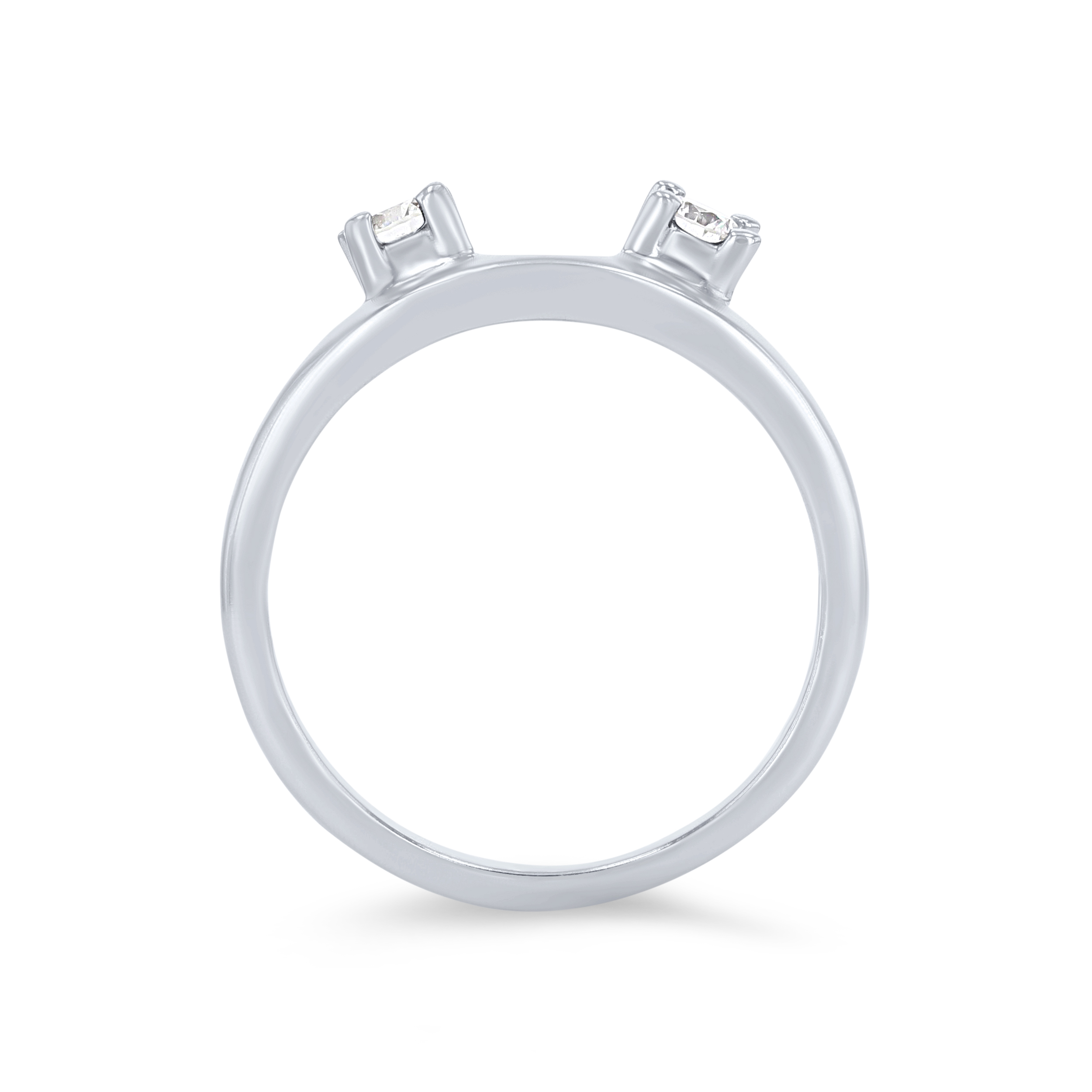Give a solitaire engagement setting a three stone look with this beautiful ring wrap featuring two round brilliant cut diamonds.