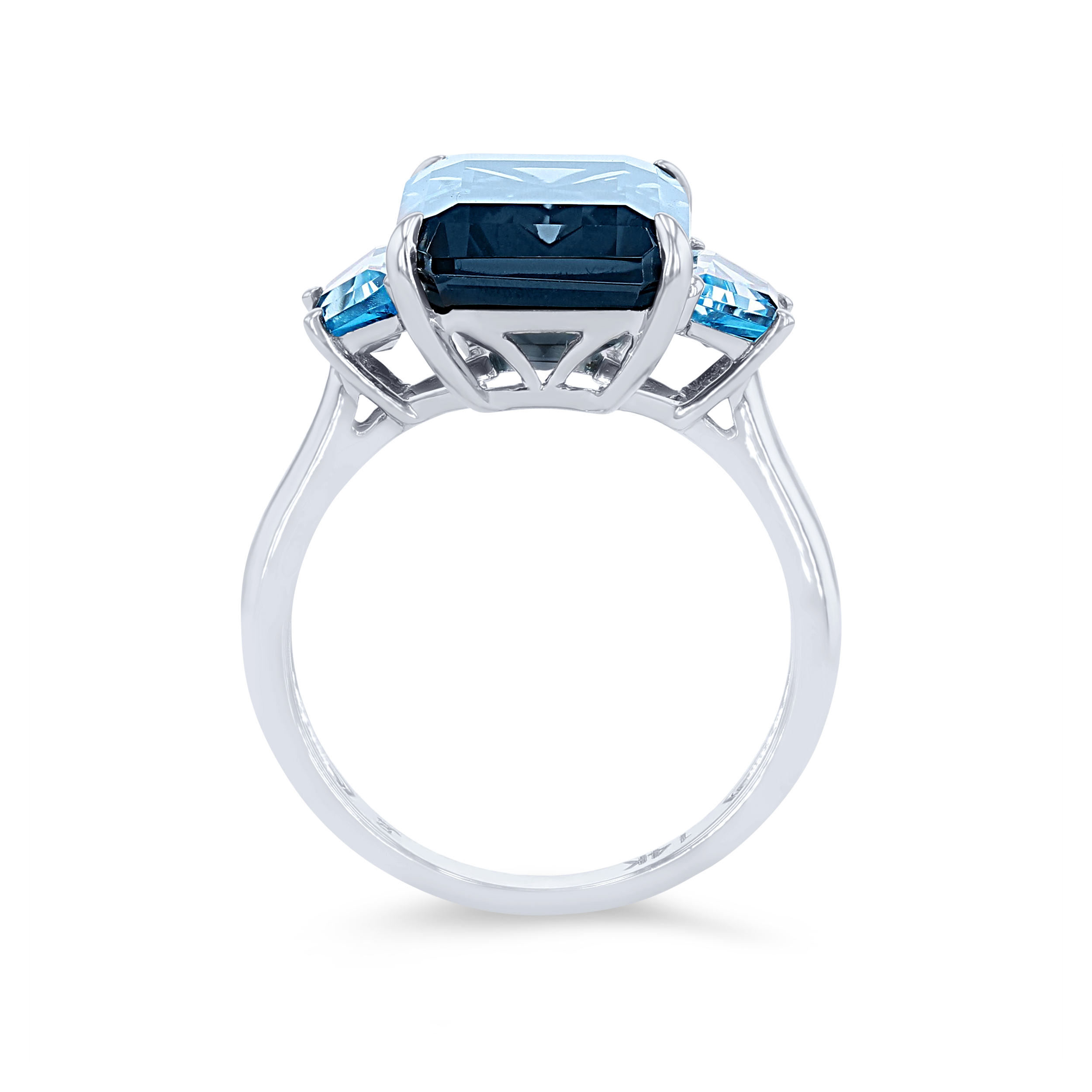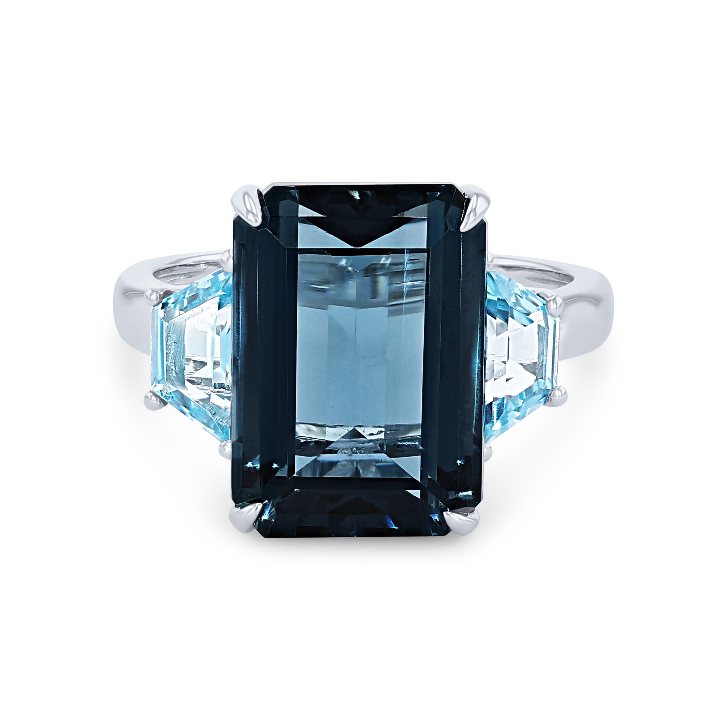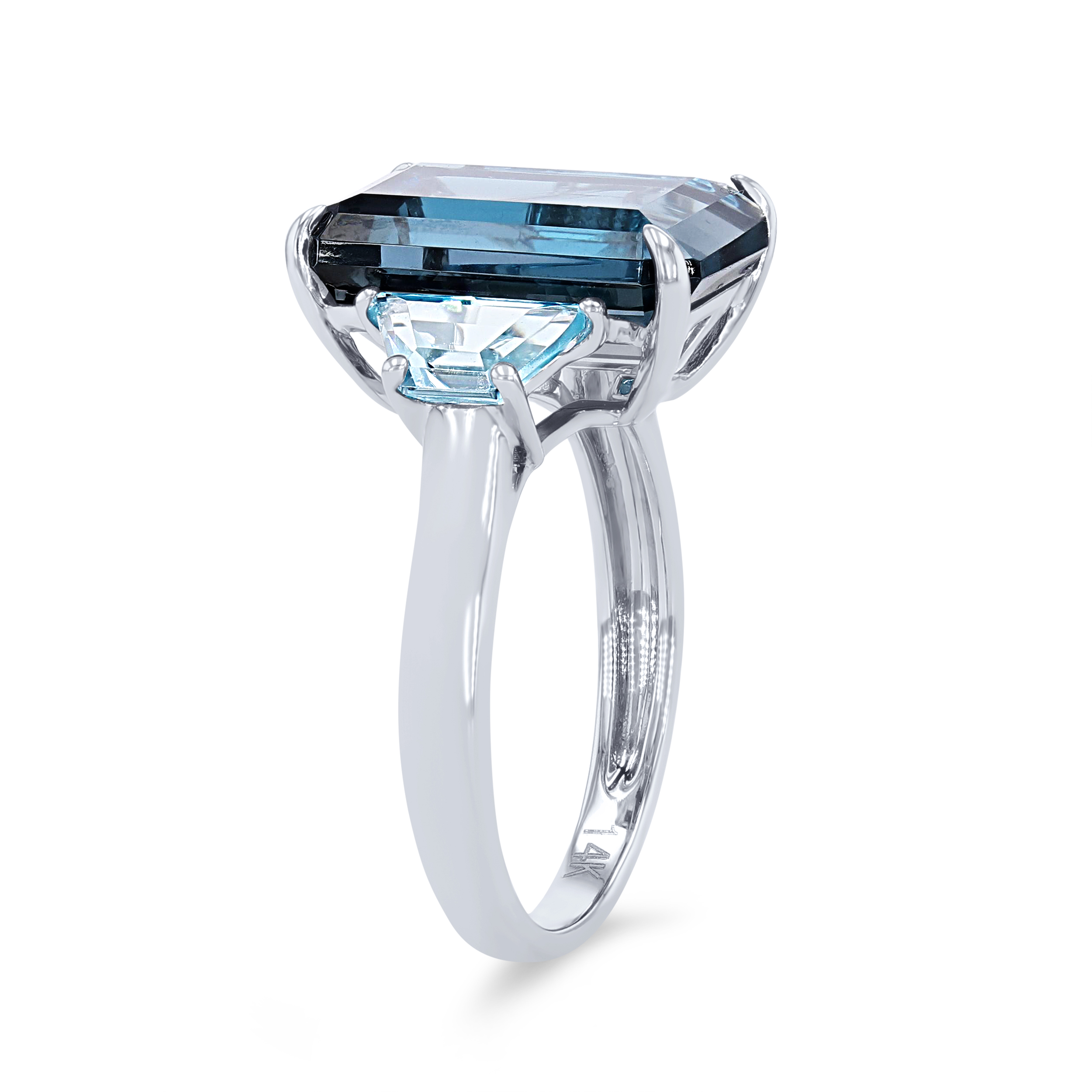 Product Description Make a colorful statement with this elegant ring featuring an emerald cut London blue topaz weighing 10.00 carats and two trapezoid cut blue topaz totaling 1.50 carats. Other Details Women Wedding Band Type: Gemstone Total Gemstone Carat Weight: 11.5TW Disable Reason: None Metal Color: White Gold Type: Ring Gemstone Type: Blue Topaz Style: Classic
