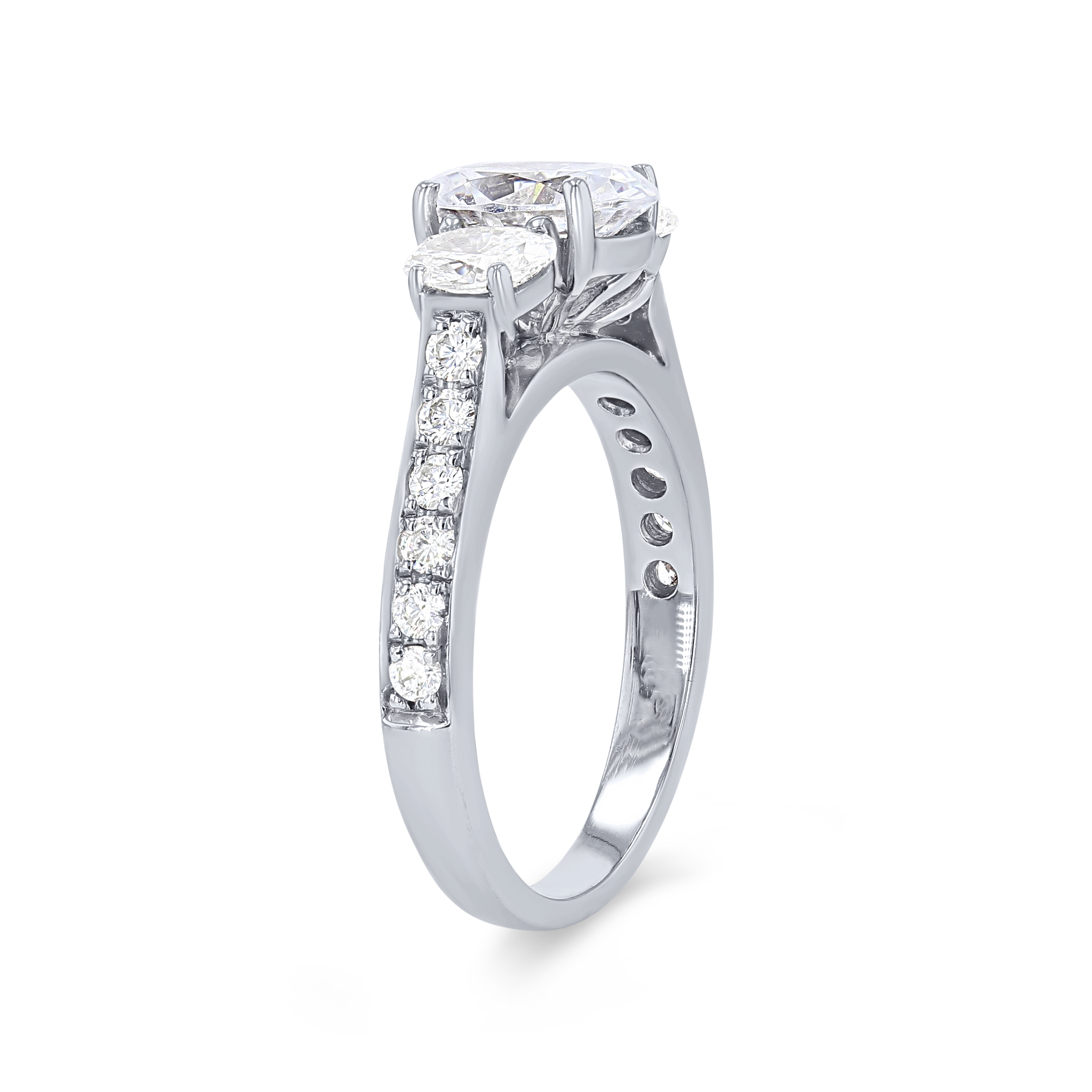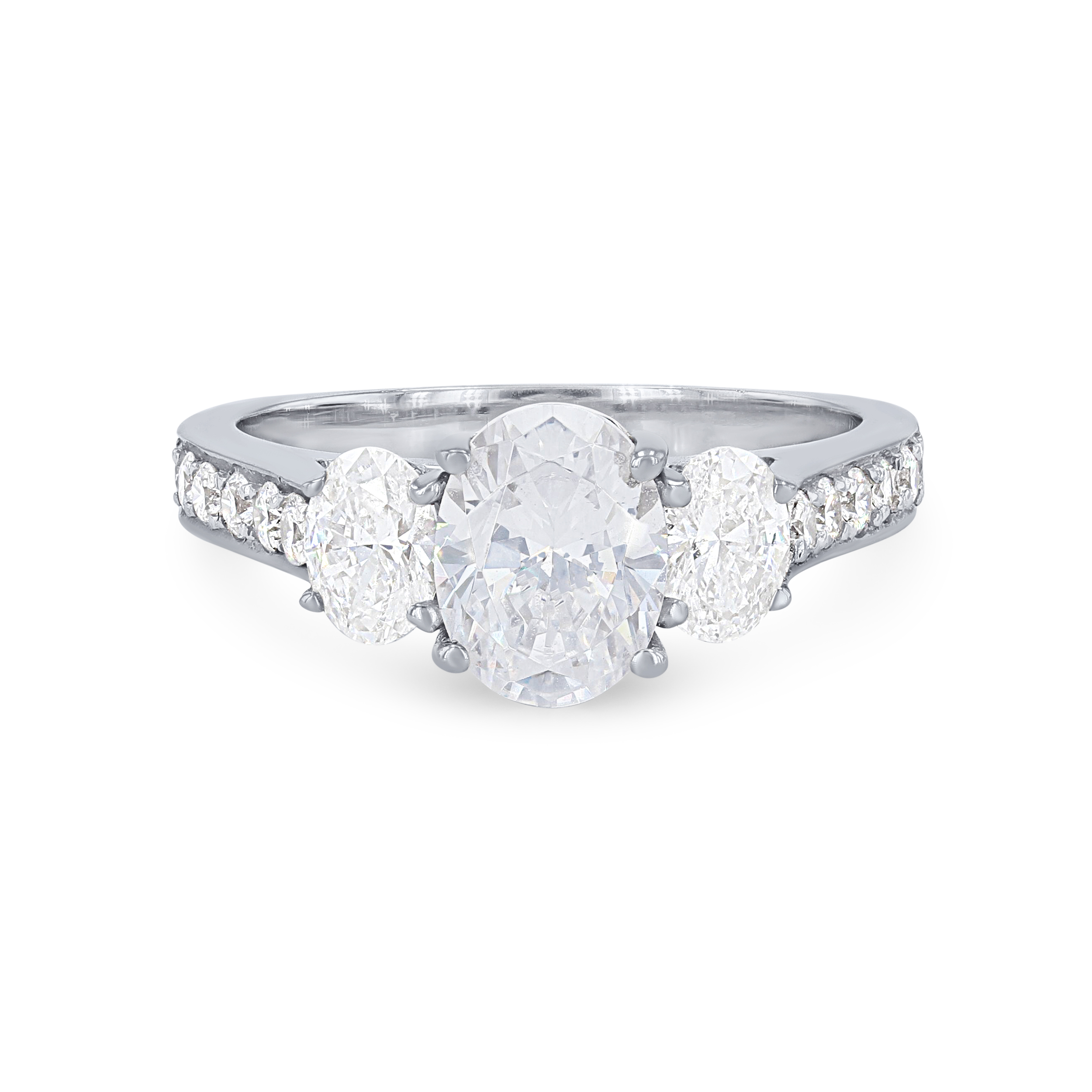 Product Description This stunning three-stone engagement setting features two oval cut diamonds totaling 0.62 carats and 0.26 carats of round brilliant cut diamonds down the shank. Other Details Metal Color: White Gold Type: Setting Metal Color: Rose Gold Metal Color: Yellow Gold Metal Color: Platinum Mounting Type: Three Stone Total Setting Diamond Carat Weight: 0.88TW Disable Reason: None Gemstone Type: Diamond Style: Classic