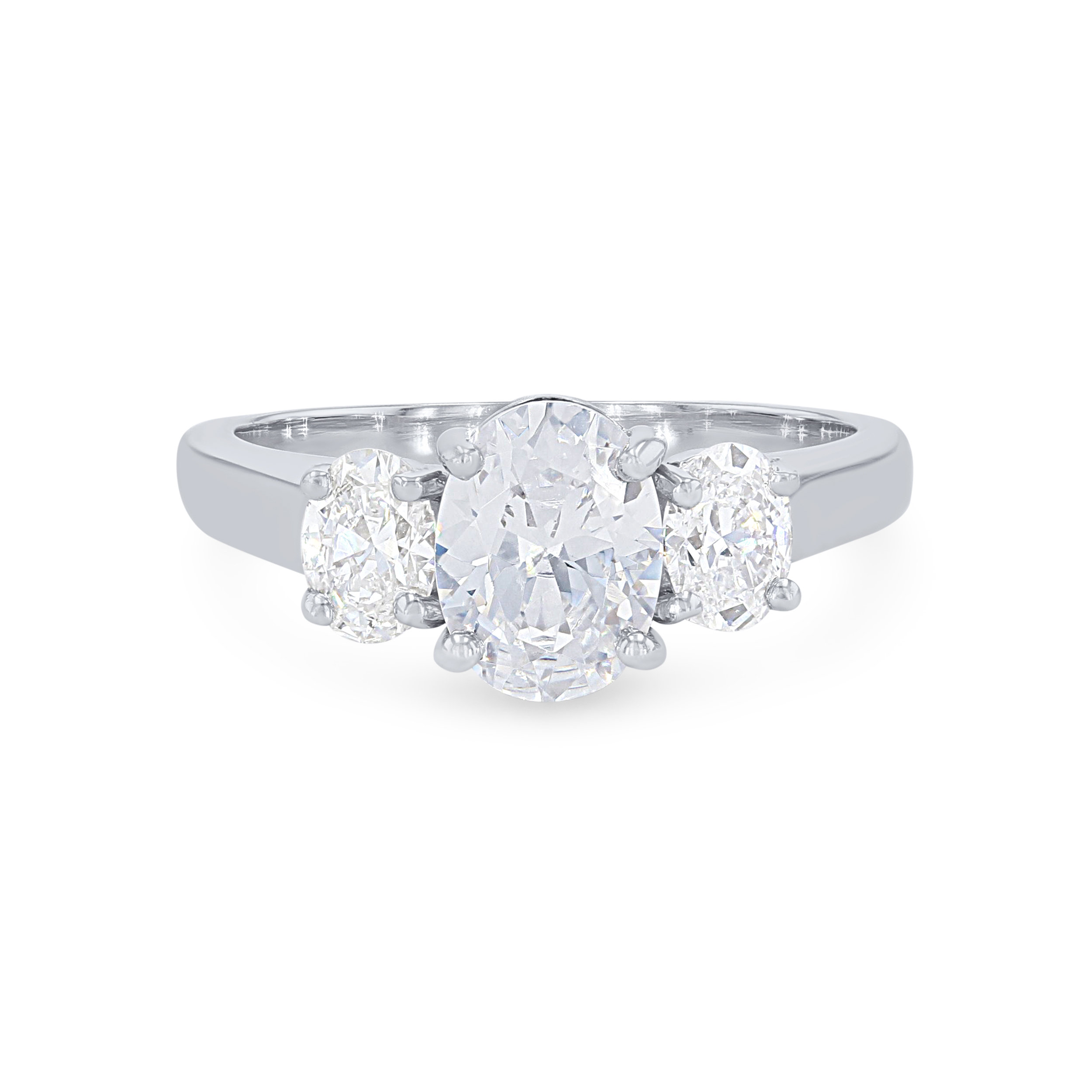 Product Description A simple yet stunning three stone engagement setting featuring oval cut diamonds. Other Details Disable Reason: None Gemstone Type: Diamond Type: Setting Mounting Type: Three Stone Metal Color: White Gold Metal Color: Rose Gold Style: Classic Metal Color: Platinum Metal Color: Yellow Gold