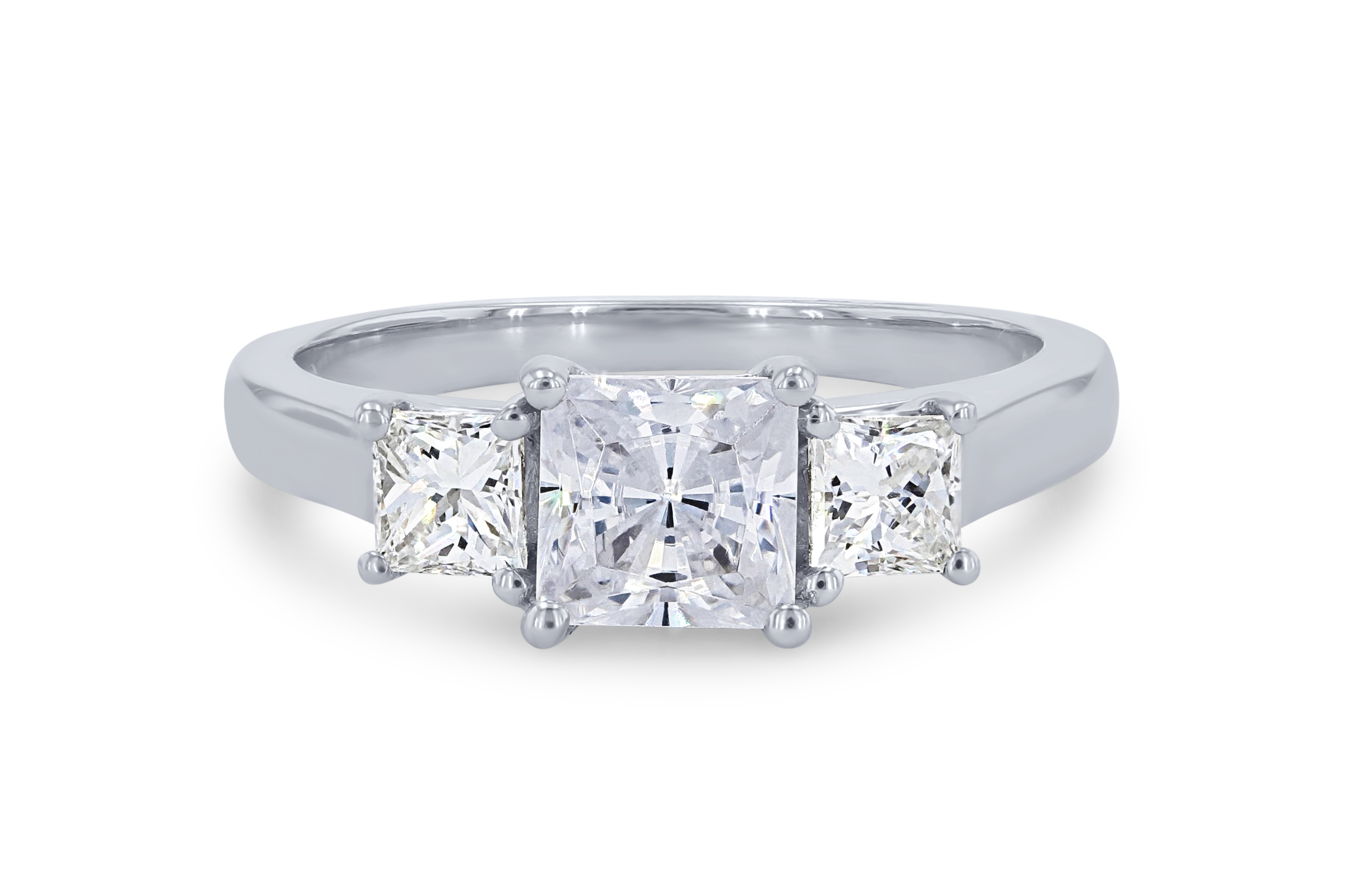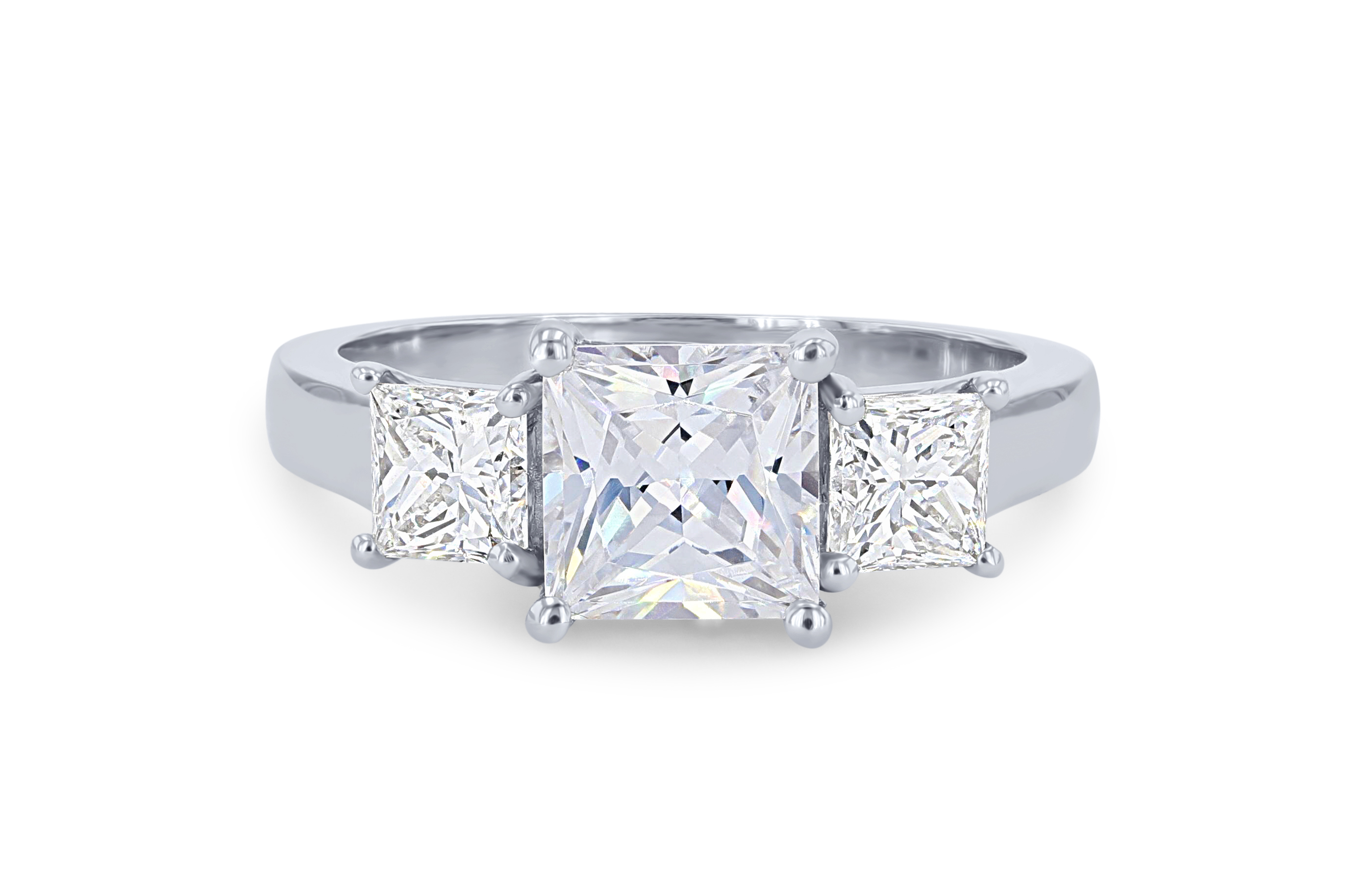 Product Description A simple yet stunning three stone engagement setting featuring princess cut diamonds. Other Details Metal Color: White Gold Mounting Type: Three Stone Metal Color: Rose Gold Type: Setting Metal Color: Platinum Gemstone Type: Diamond Style: Classic Metal Color: Yellow Gold Disable Reason: None