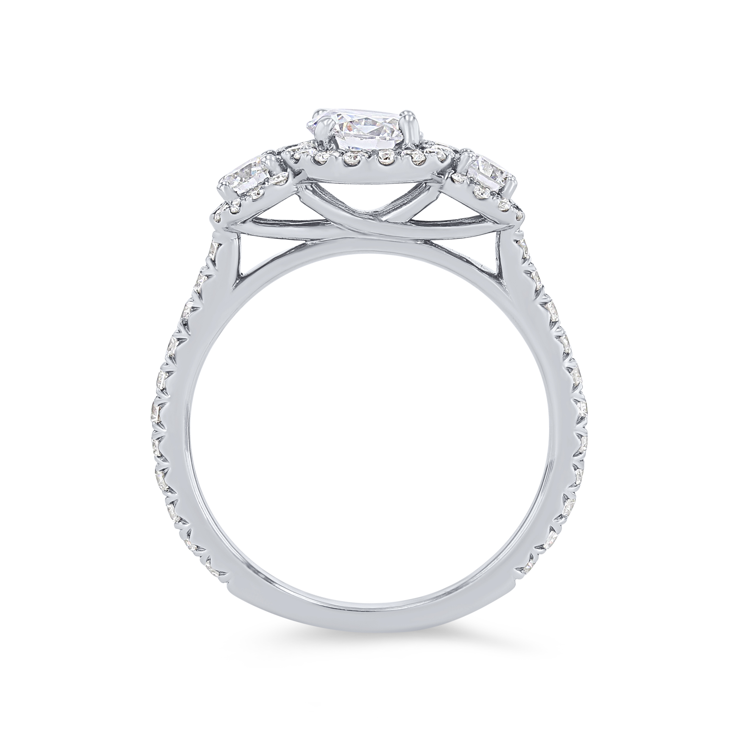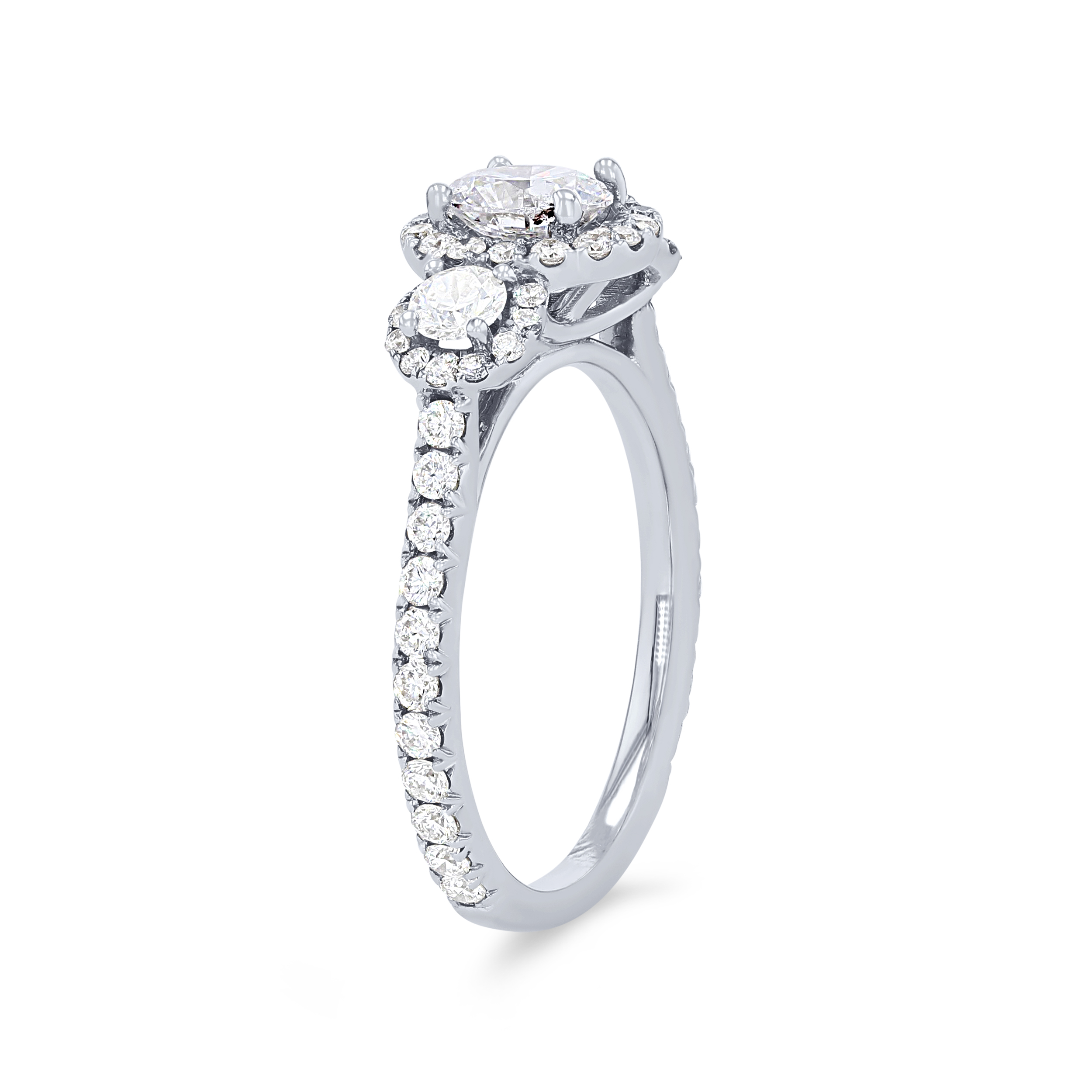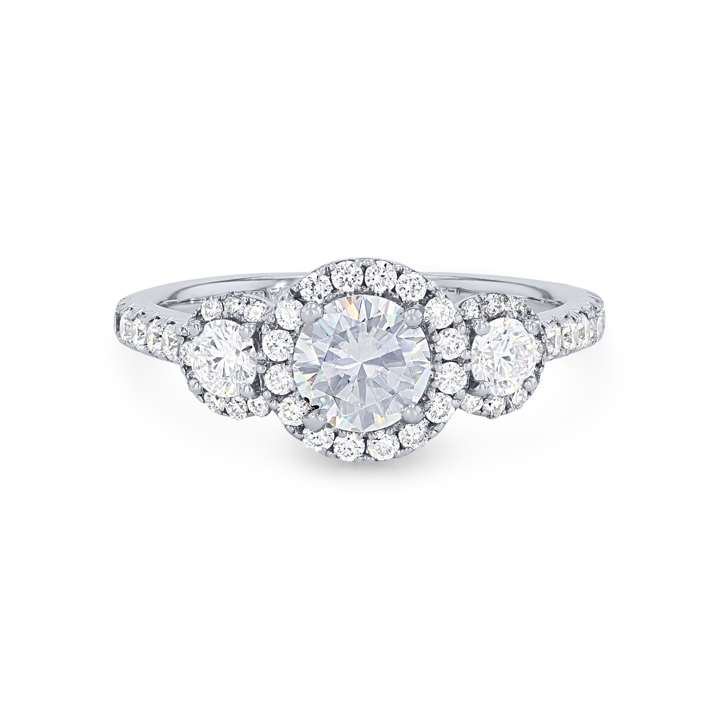 Product Description This classic three-stone engagement setting accented with halos is emphasized by 0.82 carats of round brilliant cut diamonds. Other Details Type: Setting Metal Color: Platinum Mounting Type: Three Stone Metal Color: Rose Gold Metal Color: White Gold Disable Reason: None Style: Contemporary Metal Color: Yellow Gold Total Setting Diamond Carat Weight: 0.82TW Gemstone Type: Diamond