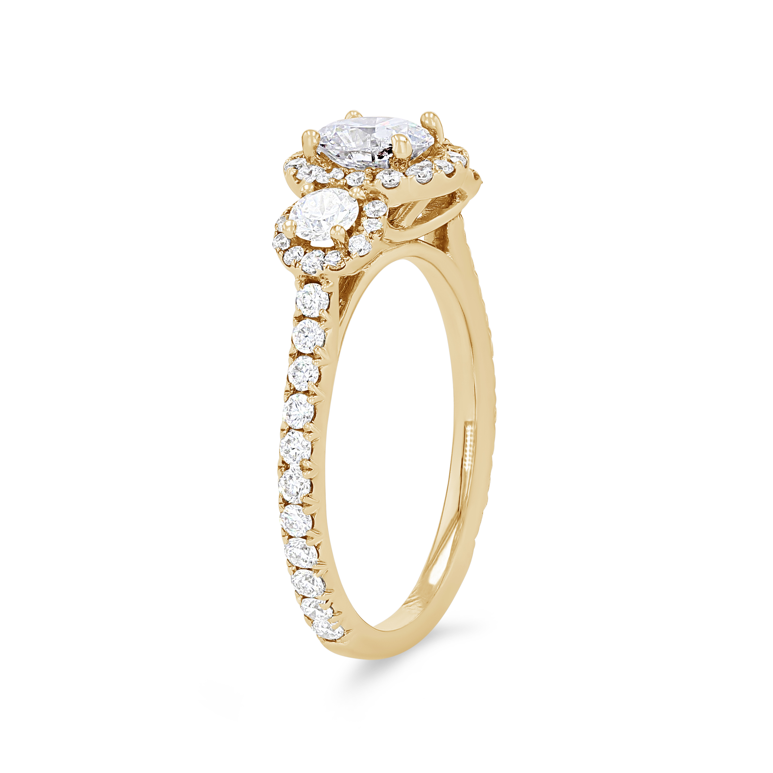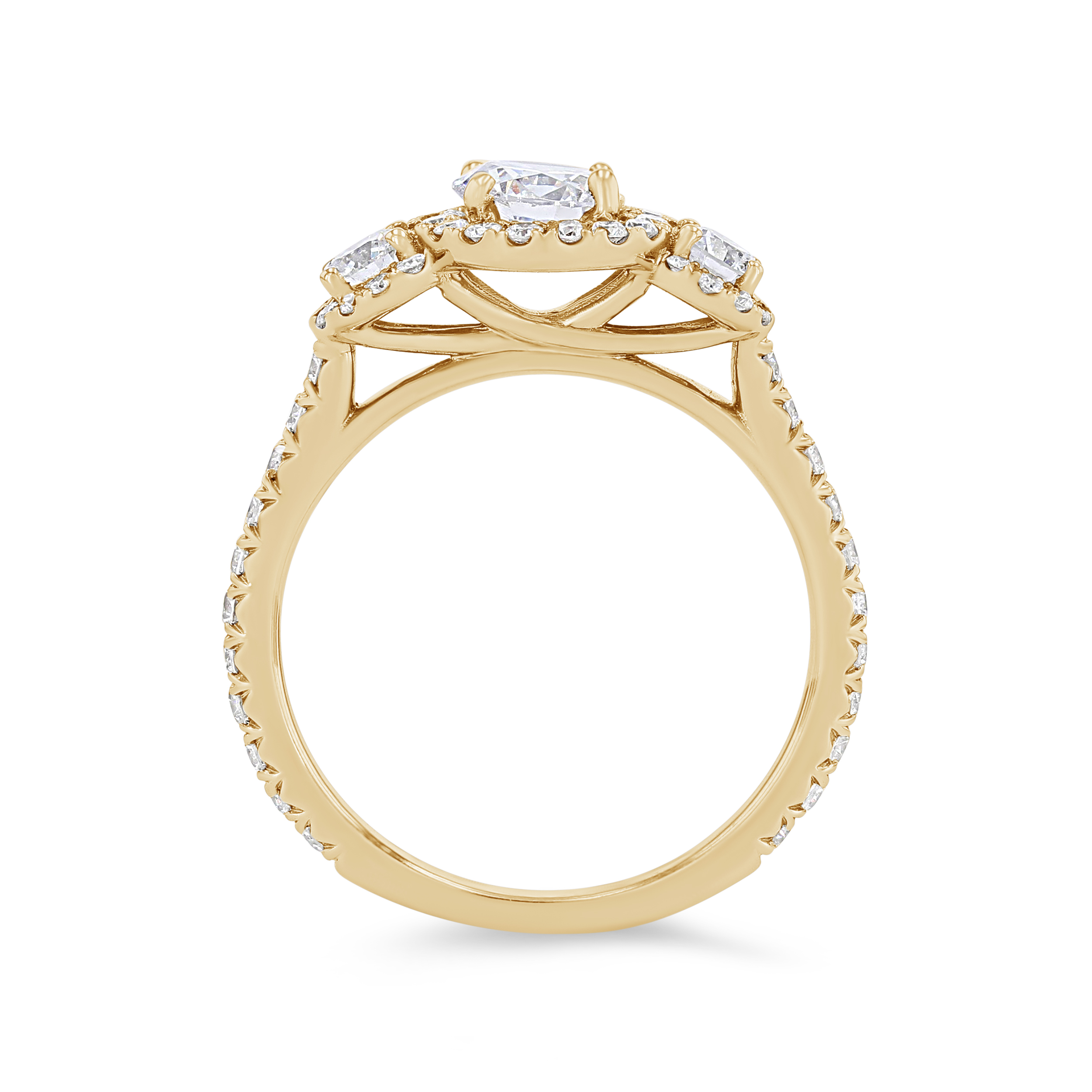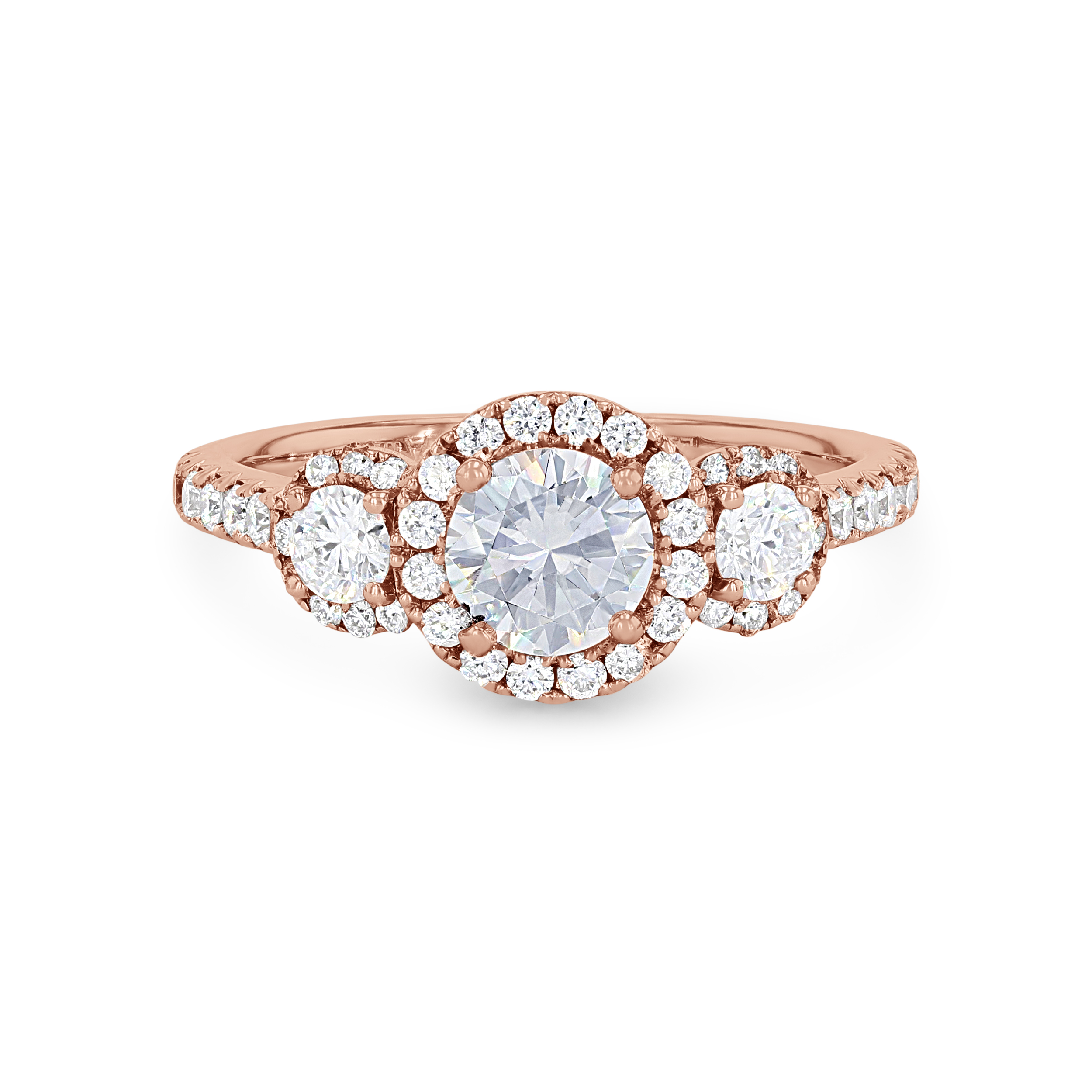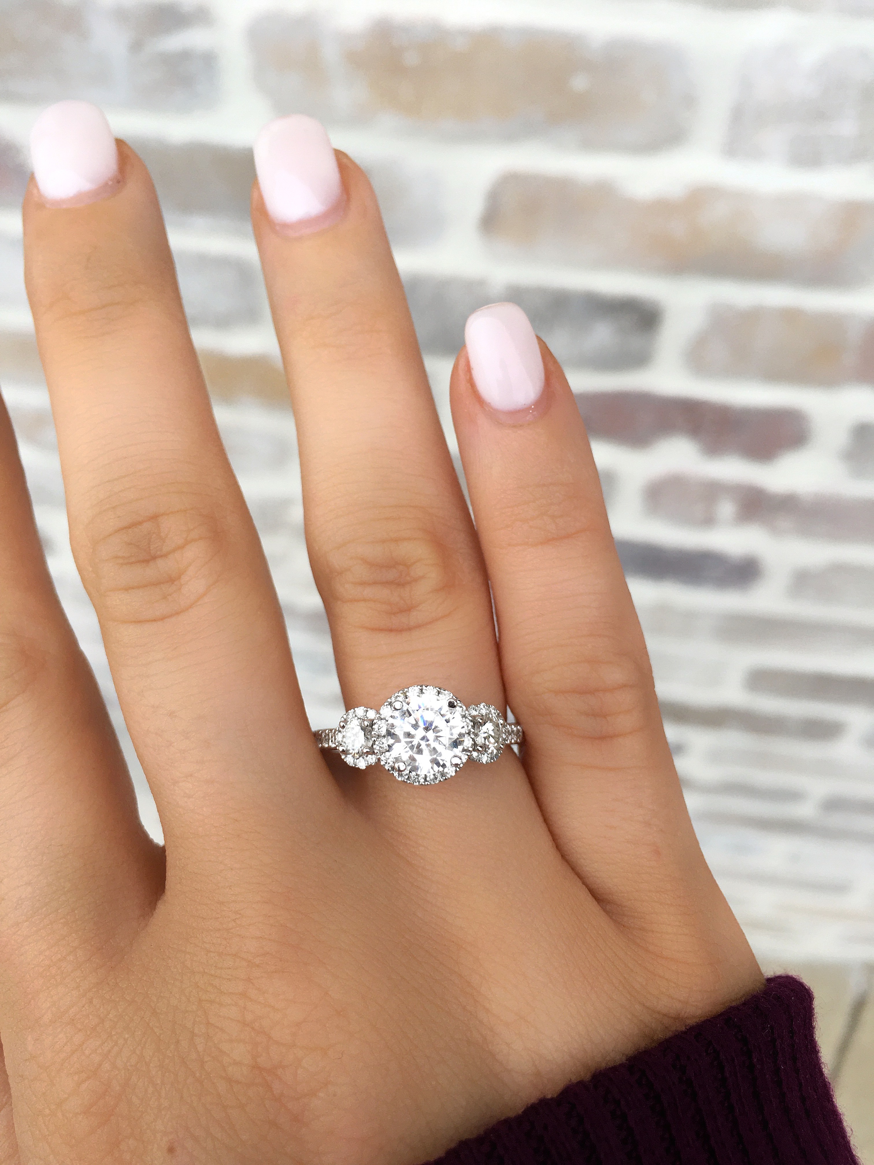 Product Description This classic three-stone engagement setting accented with halos is emphasized by 0.82 carats of round brilliant cut diamonds. Other Details Type: Setting Metal Color: Platinum Mounting Type: Three Stone Metal Color: Rose Gold Metal Color: White Gold Disable Reason: None Style: Contemporary Metal Color: Yellow Gold Total Setting Diamond Carat Weight: 0.82TW Gemstone Type: Diamond